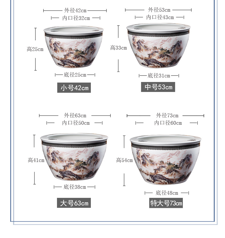 경덕진 도자기 어항, 전통 방식으로 물고기 사육, 산수화가 그려진 정원, 나무 심기, 화분, 대형 수조 도매