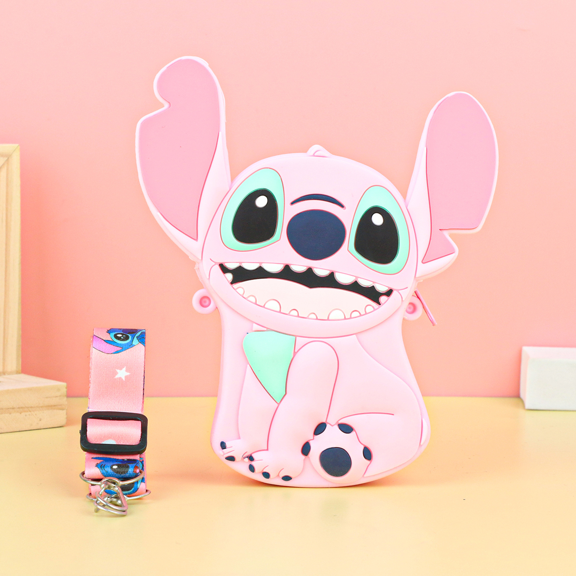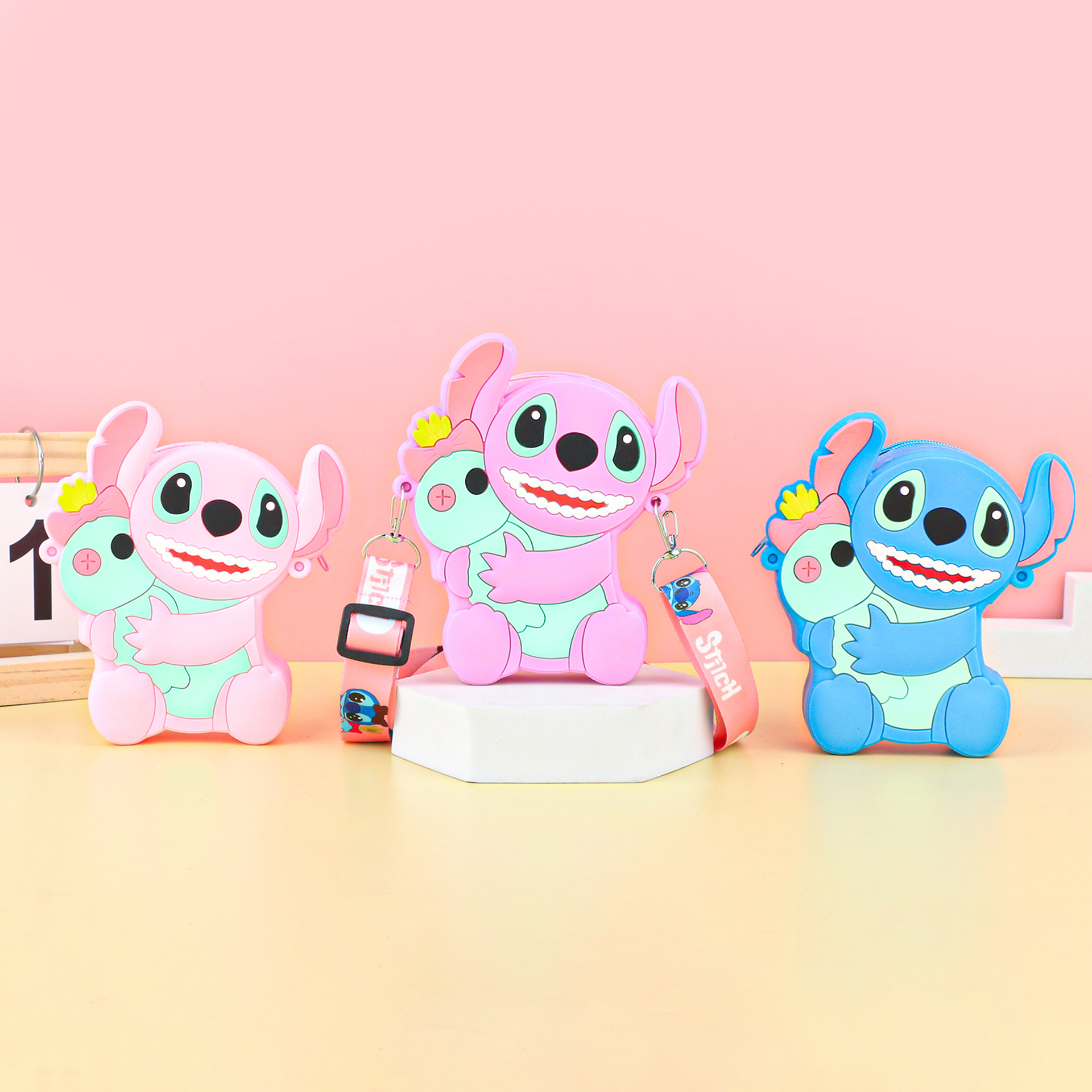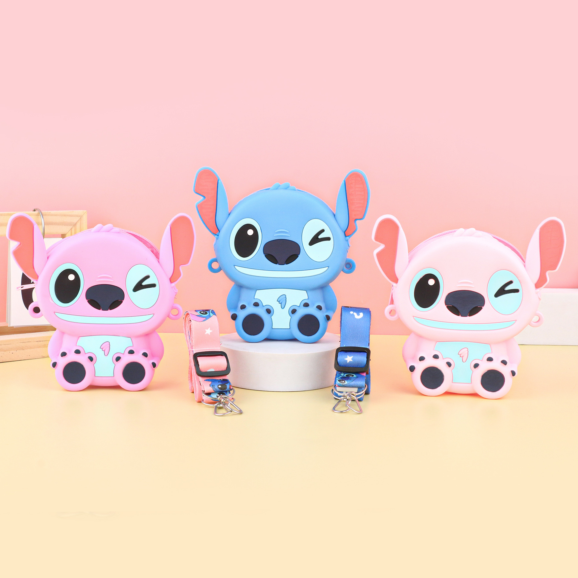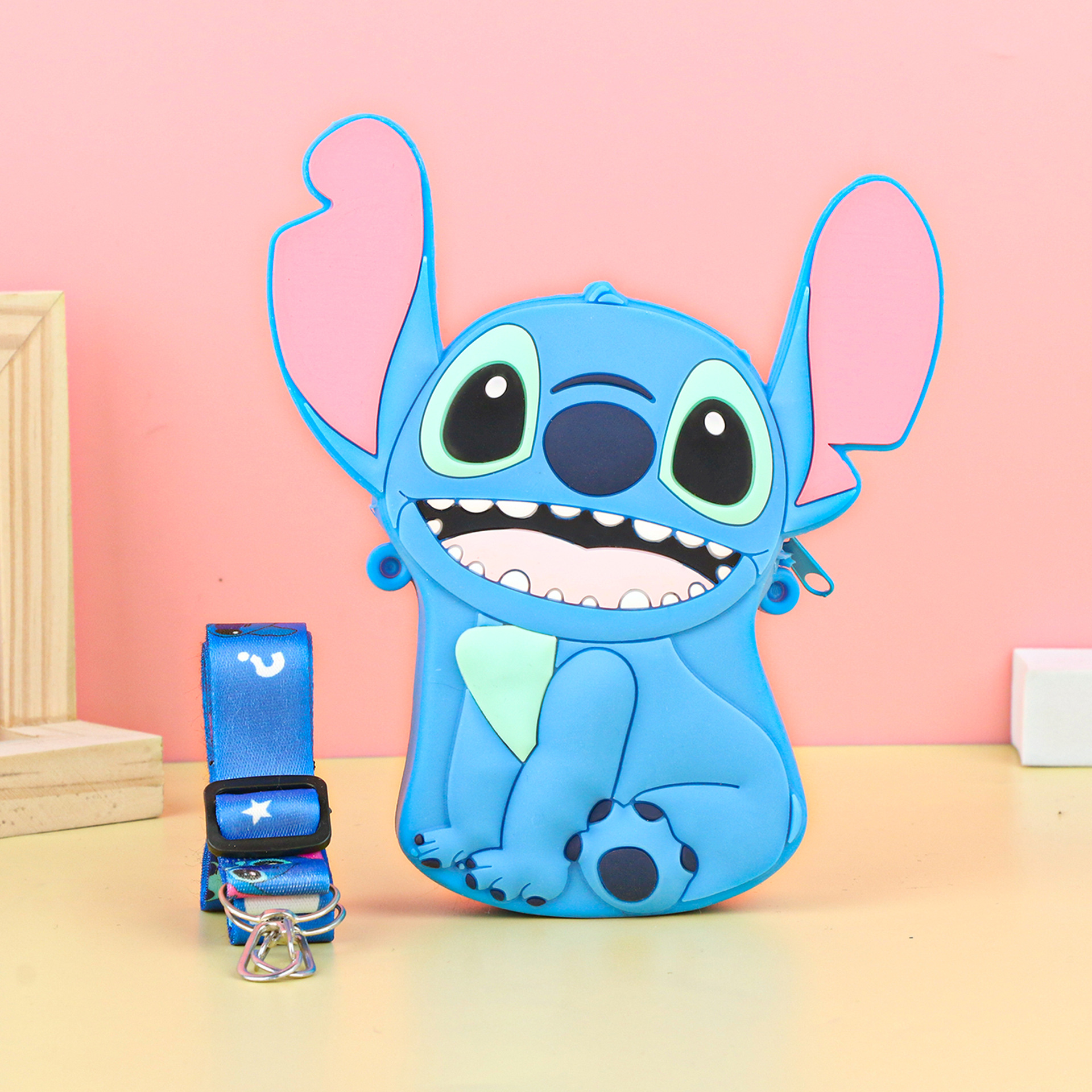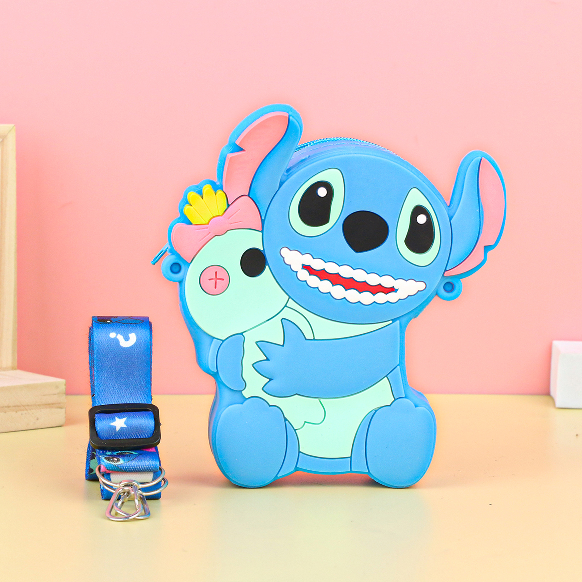 Stitch 어린이 귀여운 만화 실리콘 어깨 크로스 바디 백 어린이 크로스 바디 동전 지갑 일일 다목적 방수 가방