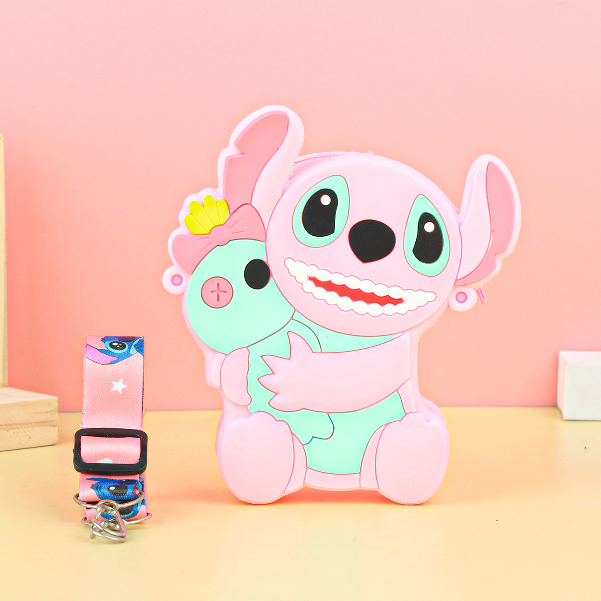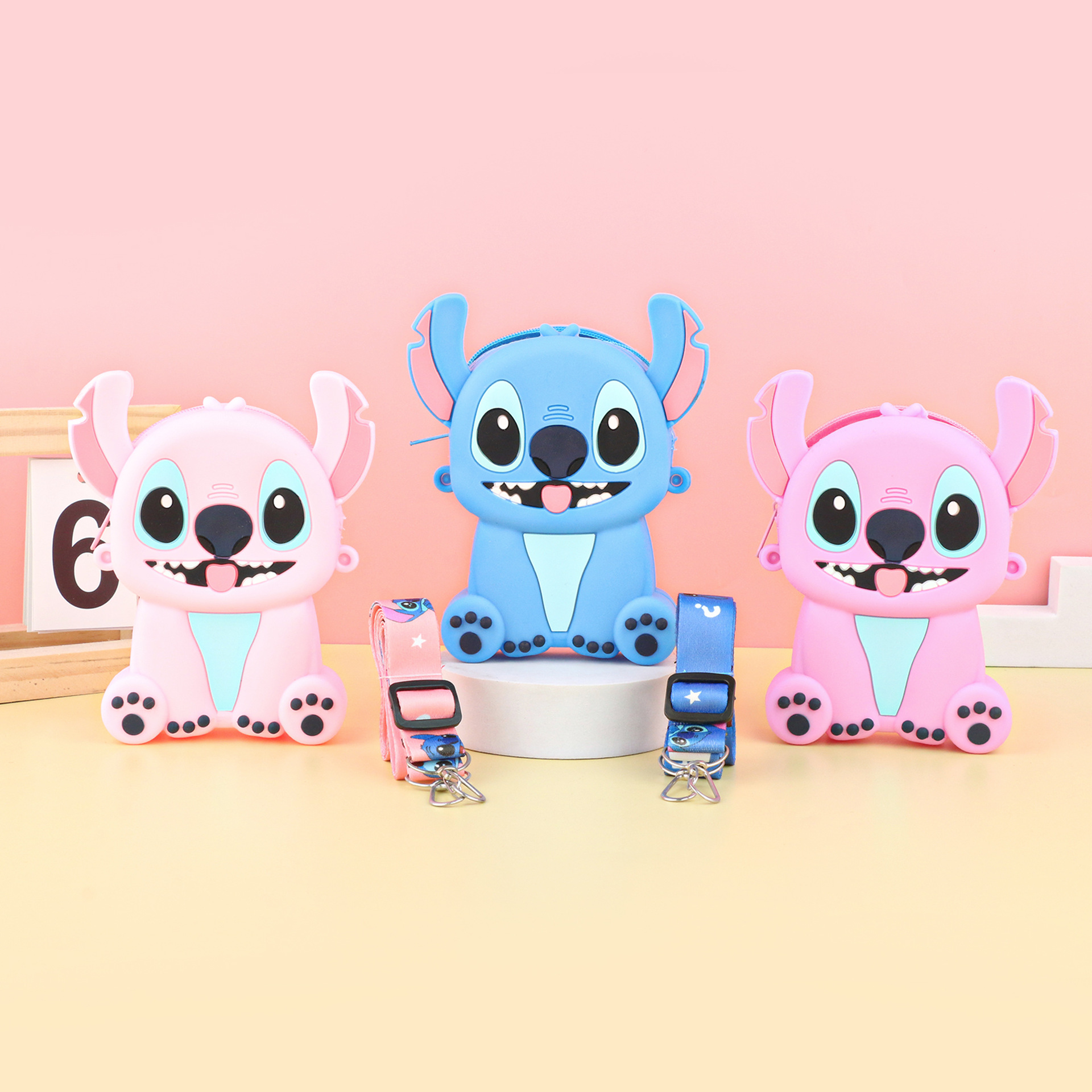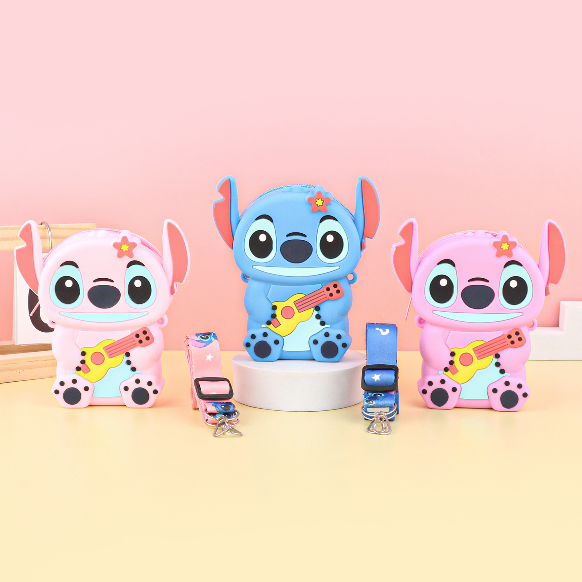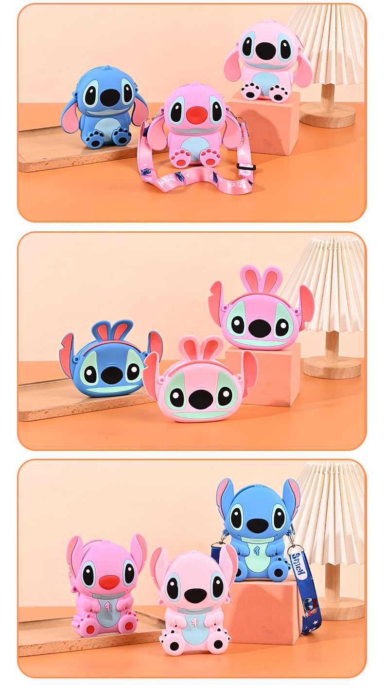 Stitch 어린이 귀여운 만화 실리콘 어깨 크로스 바디 백 어린이 크로스 바디 동전 지갑 일일 다목적 방수 가방