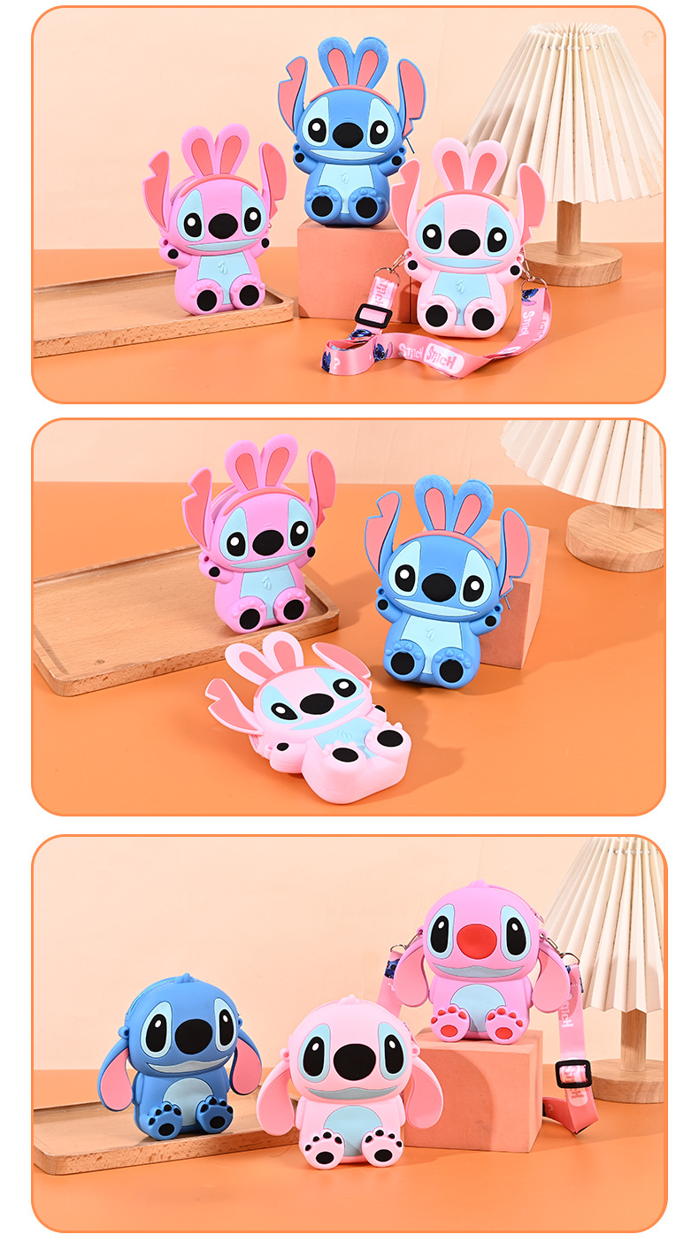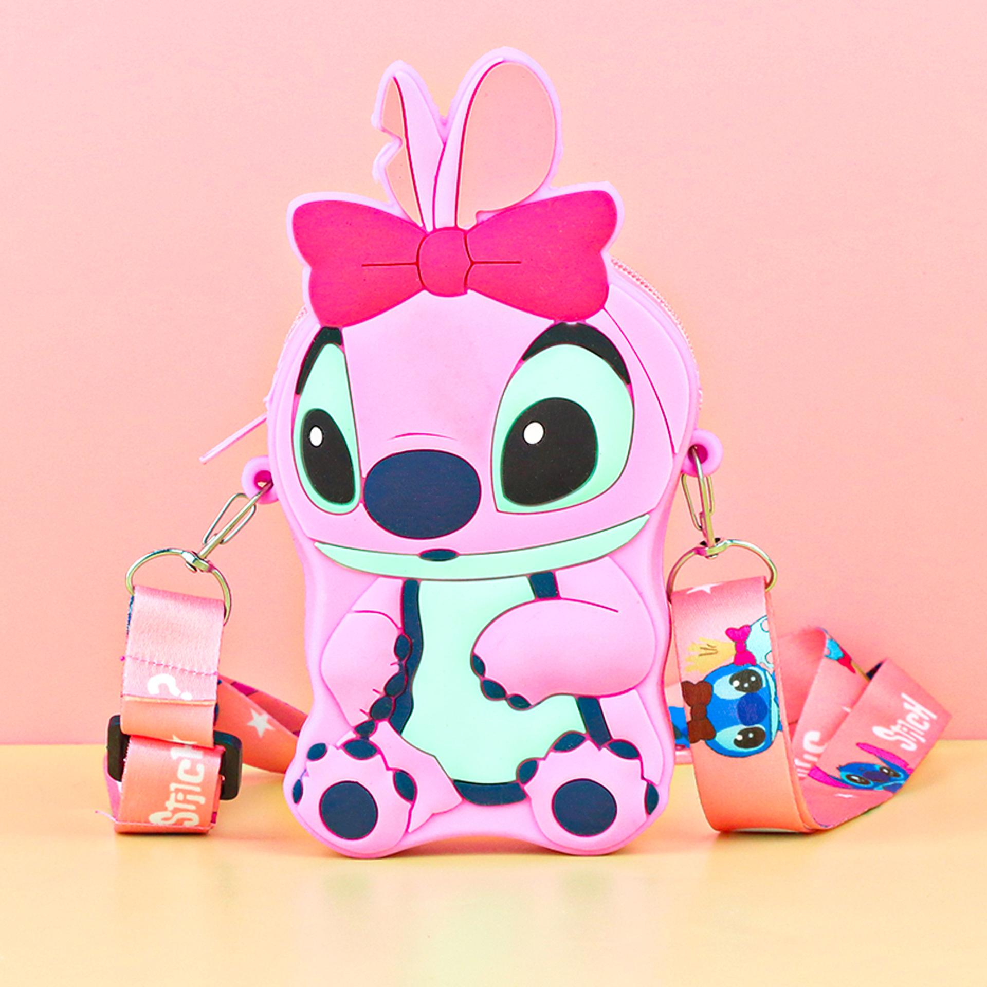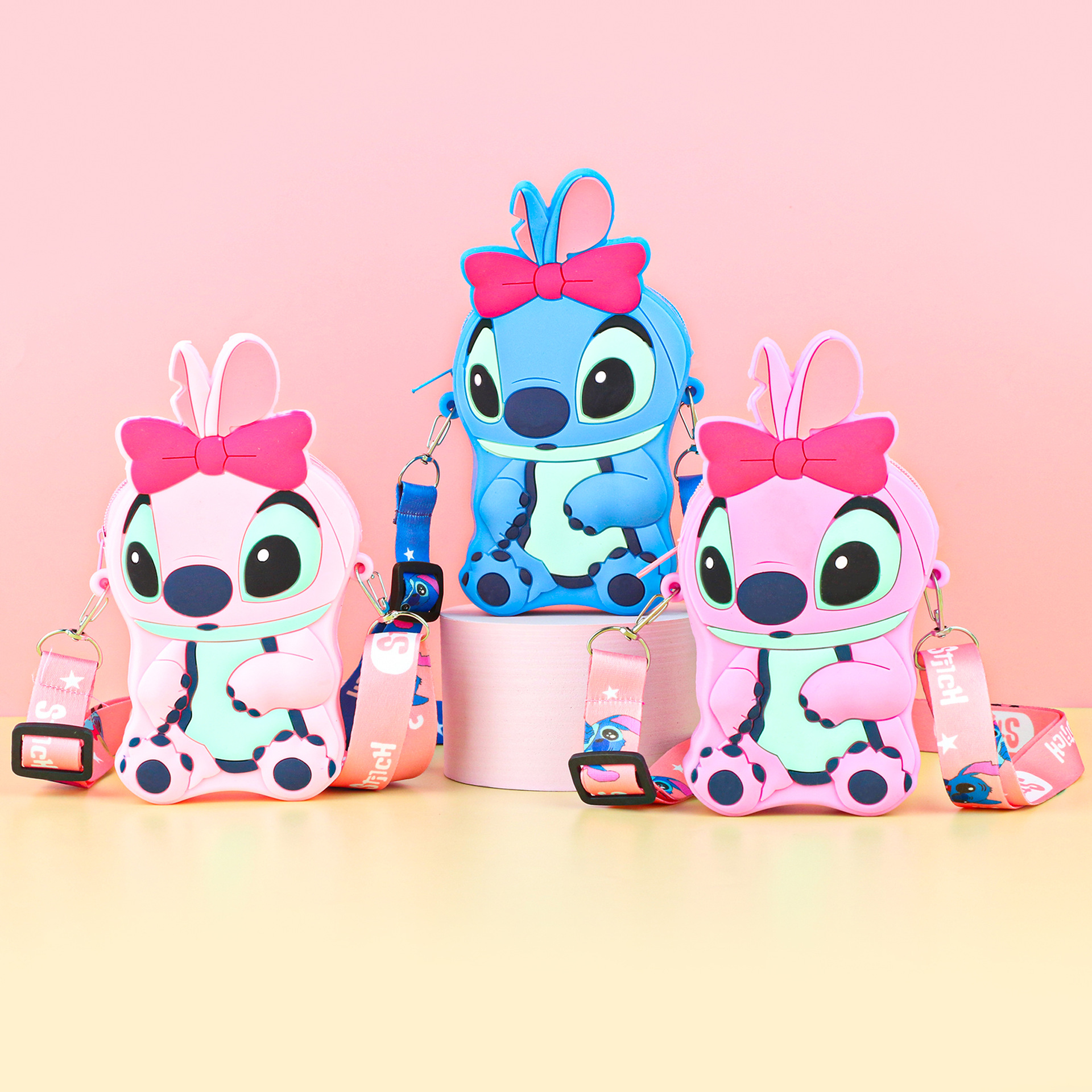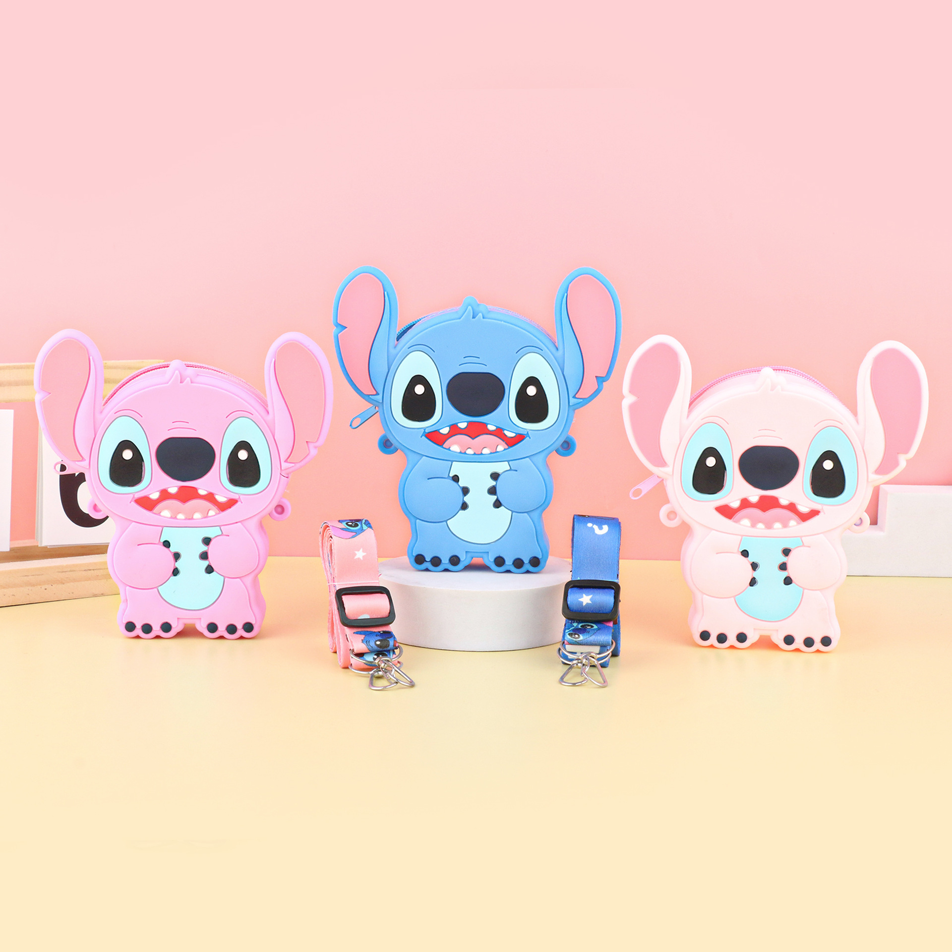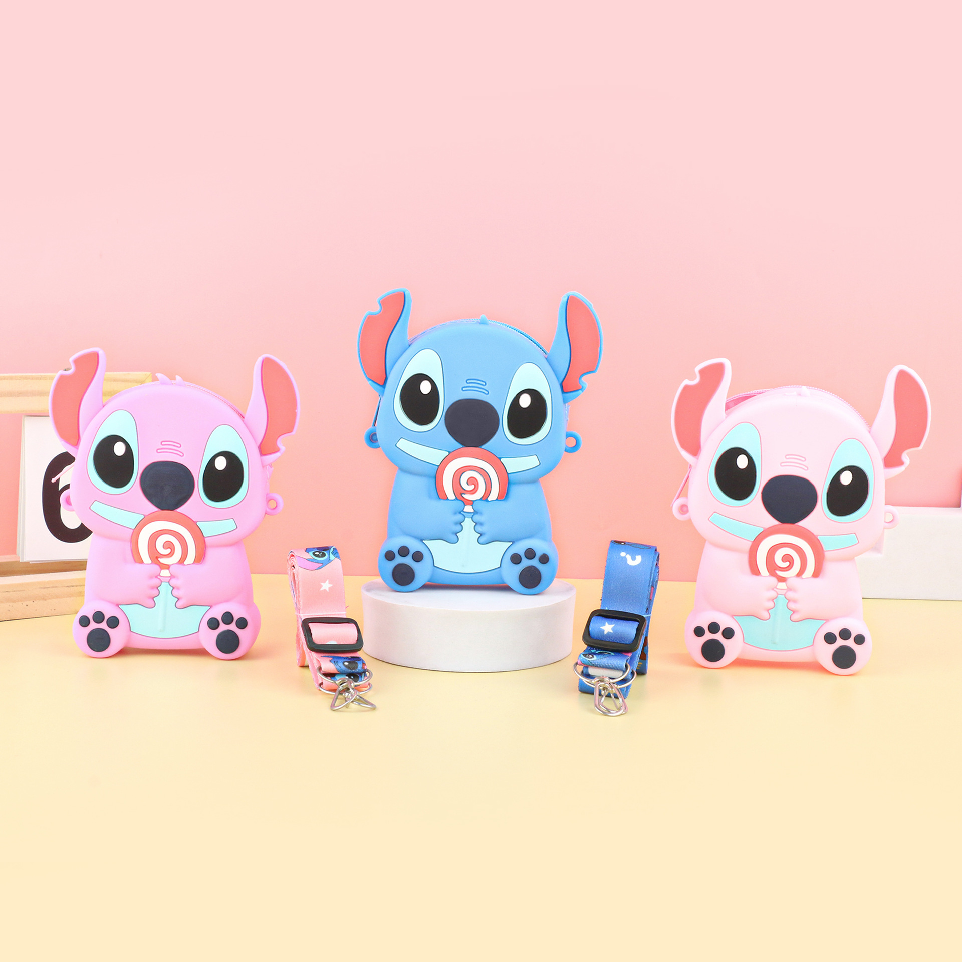 Stitch 어린이 귀여운 만화 실리콘 어깨 크로스 바디 백 어린이 크로스 바디 동전 지갑 일일 다목적 방수 가방