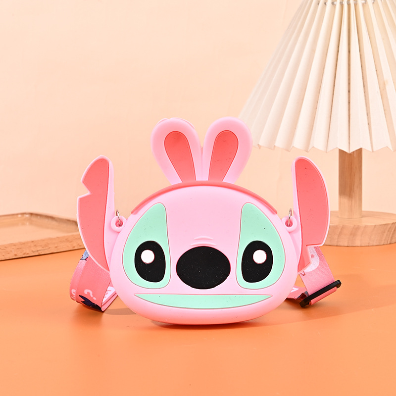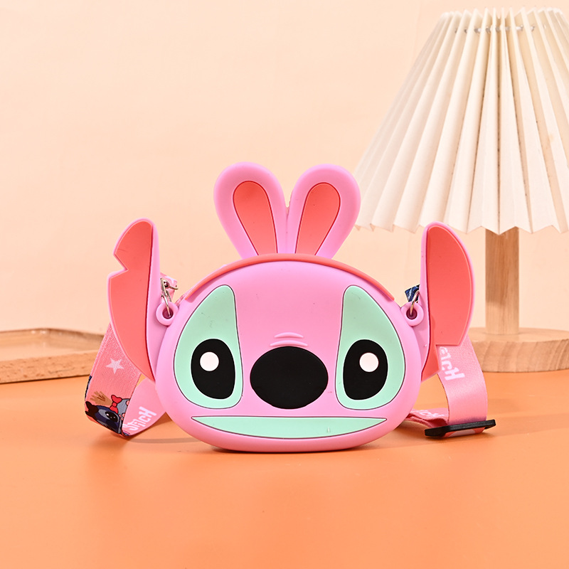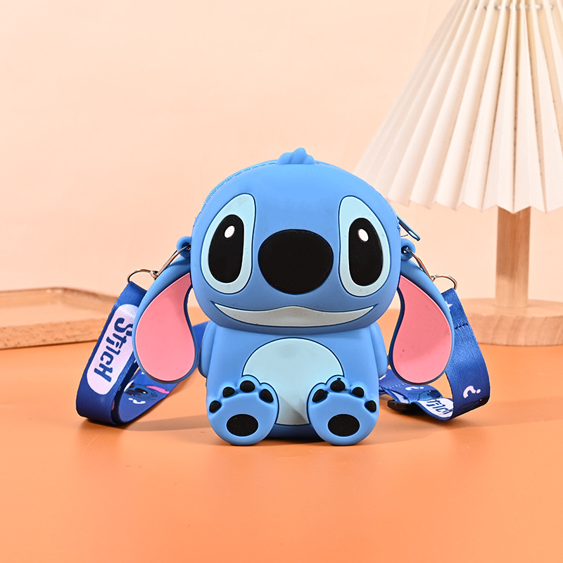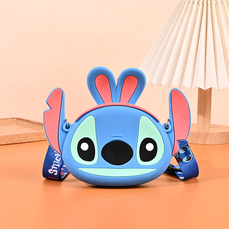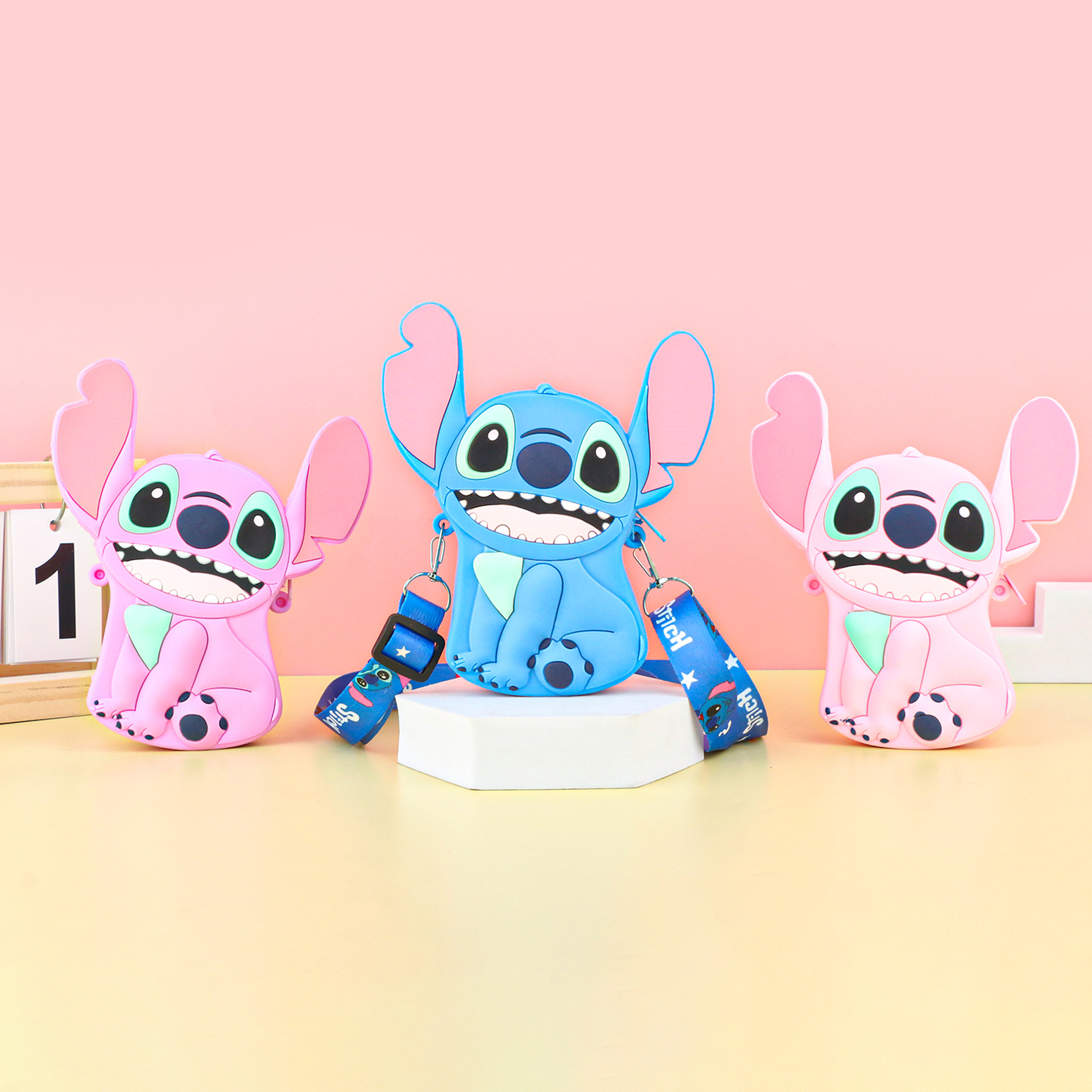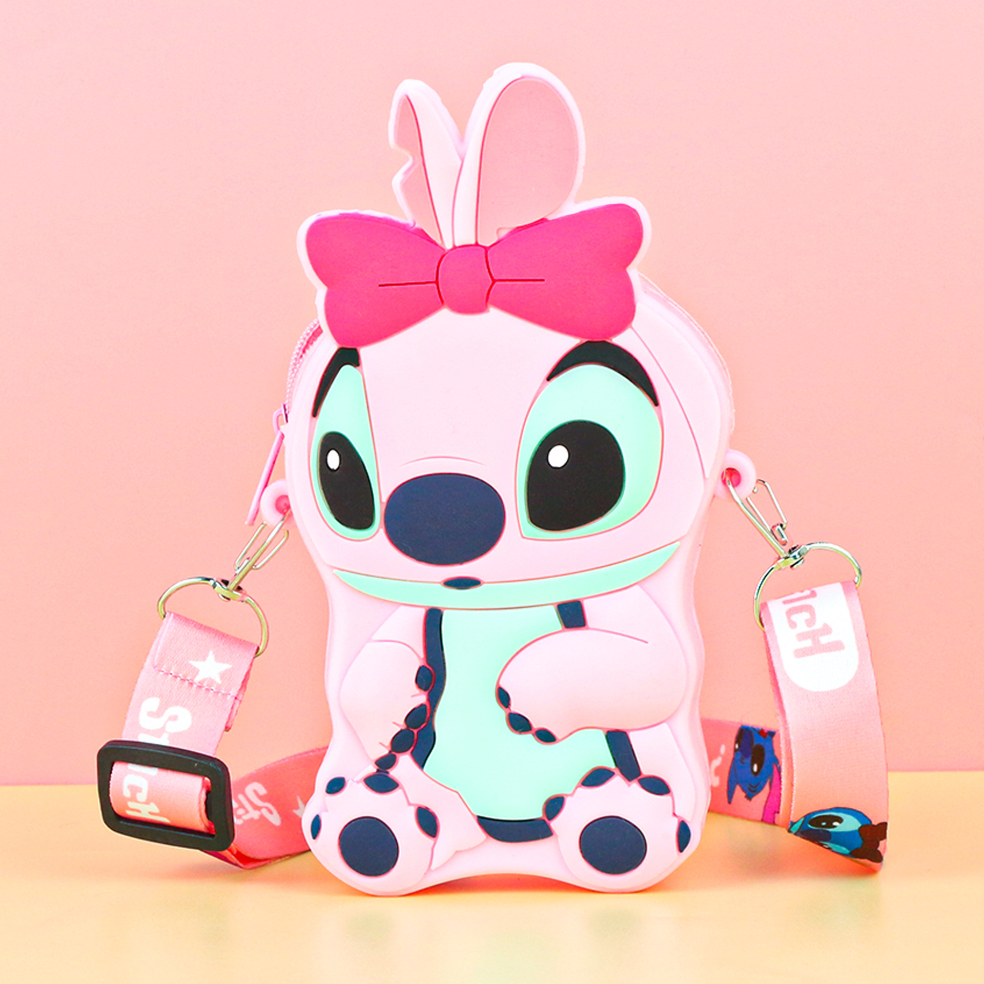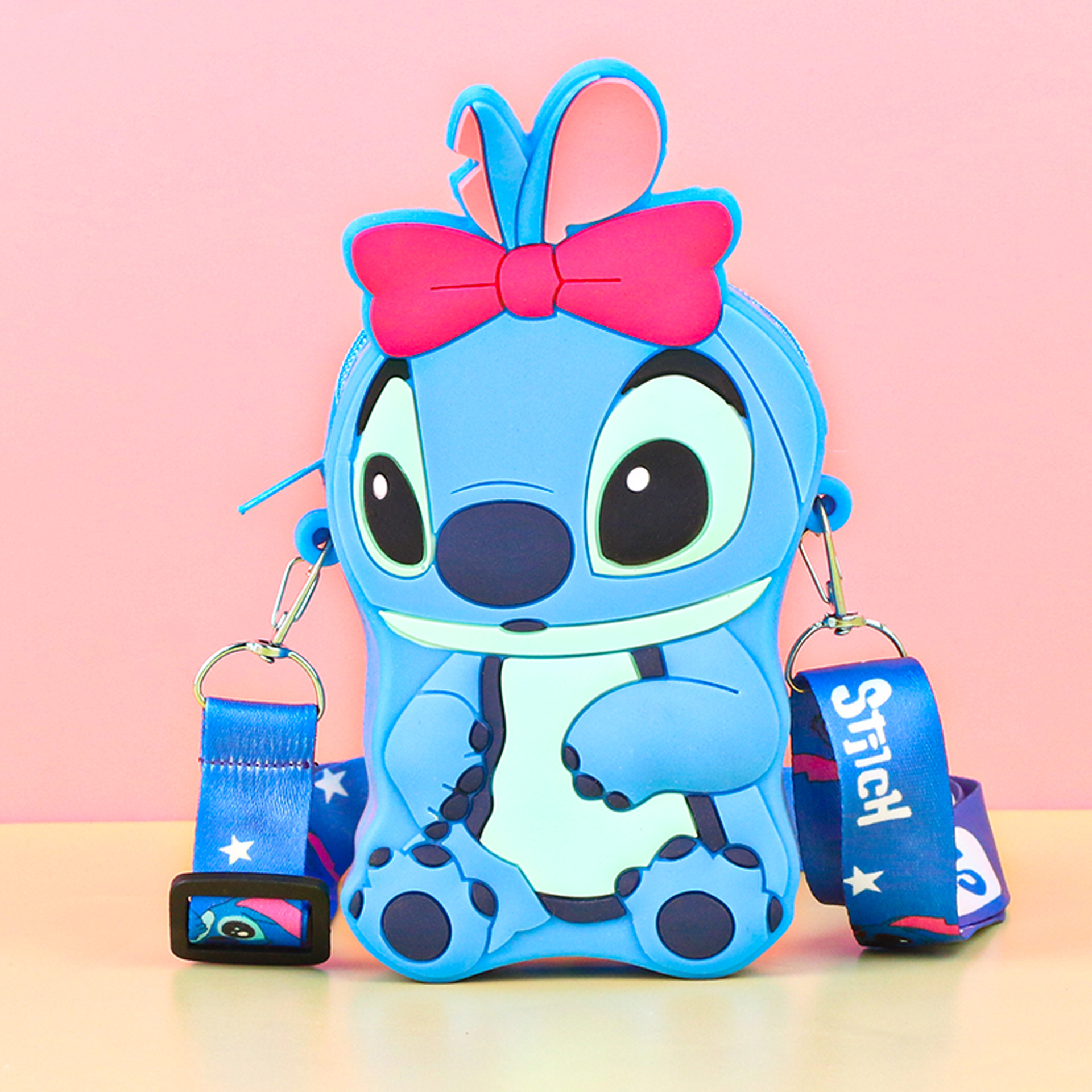 Stitch 어린이 귀여운 만화 실리콘 어깨 크로스 바디 백 어린이 크로스 바디 동전 지갑 일일 다목적 방수 가방