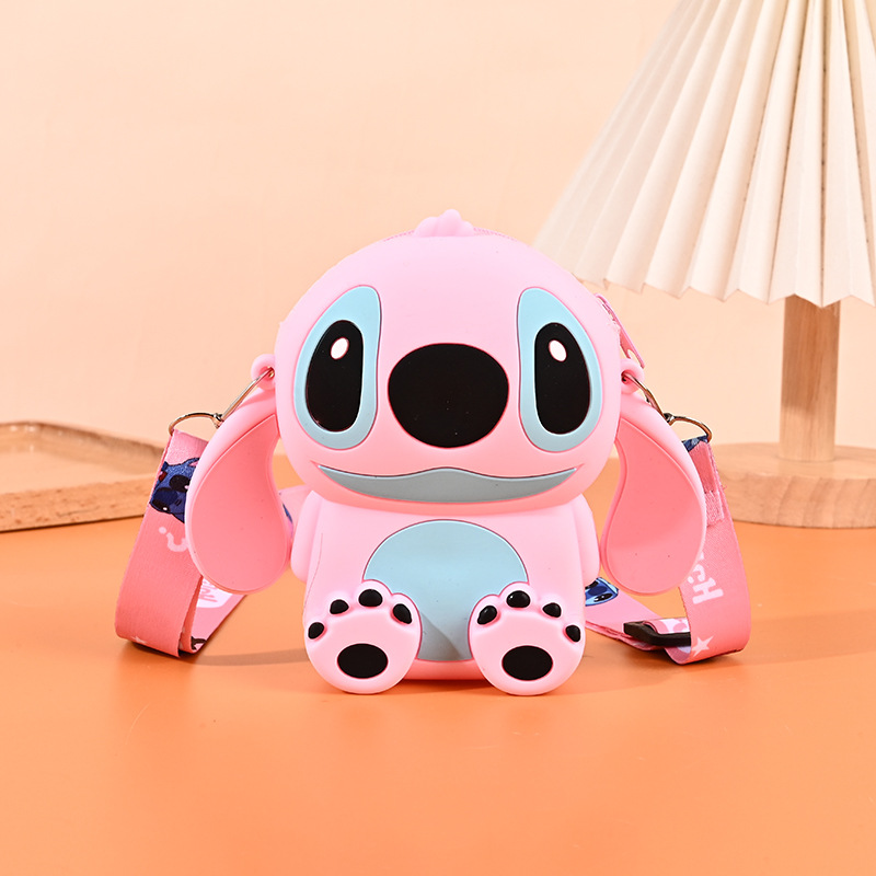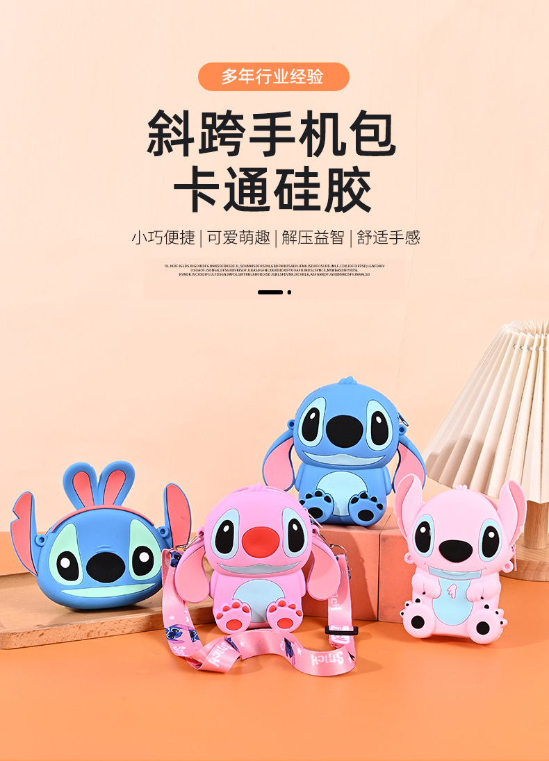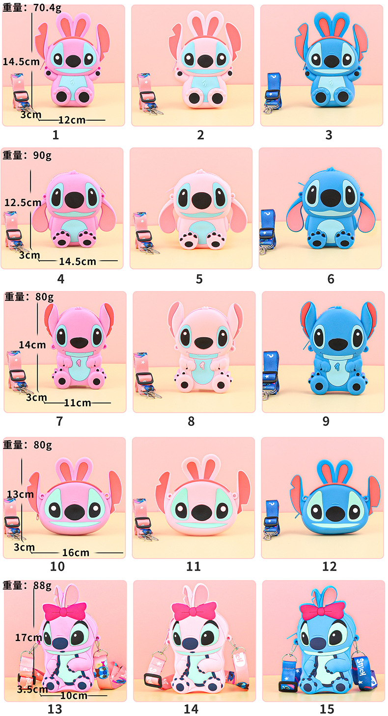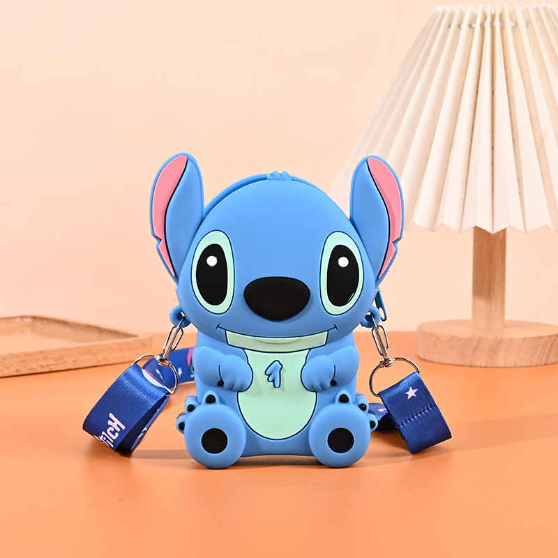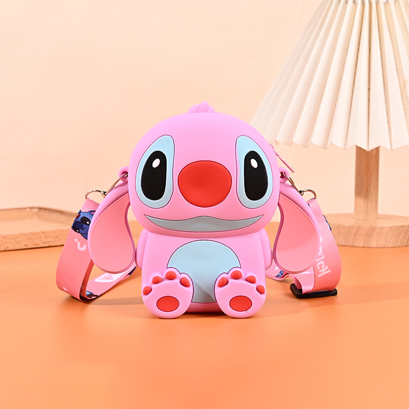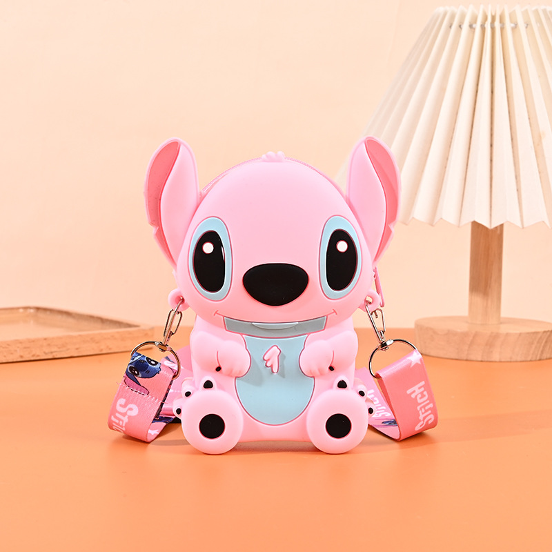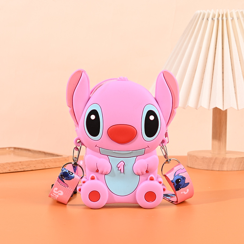 Stitch 어린이 귀여운 만화 실리콘 어깨 크로스 바디 백 어린이 크로스 바디 동전 지갑 일일 다목적 방수 가방