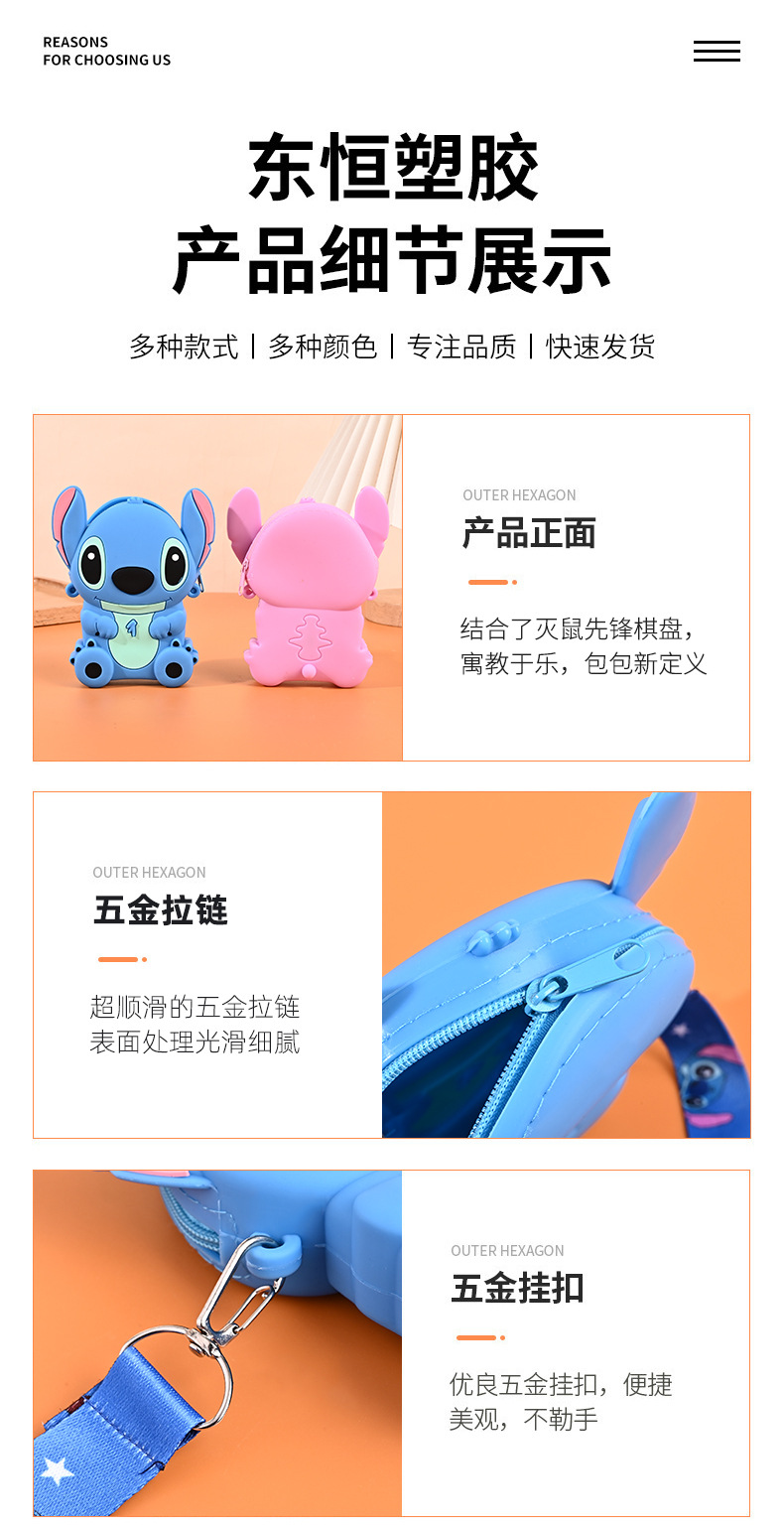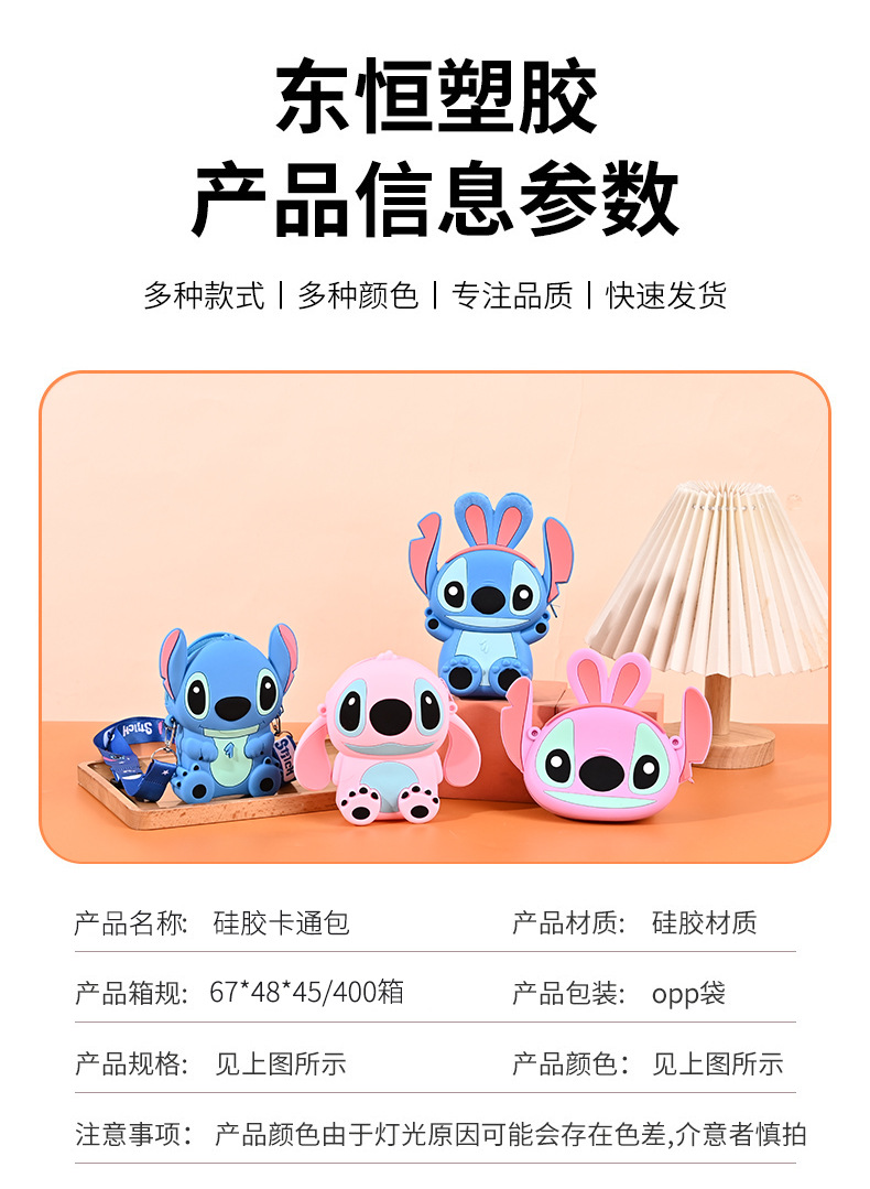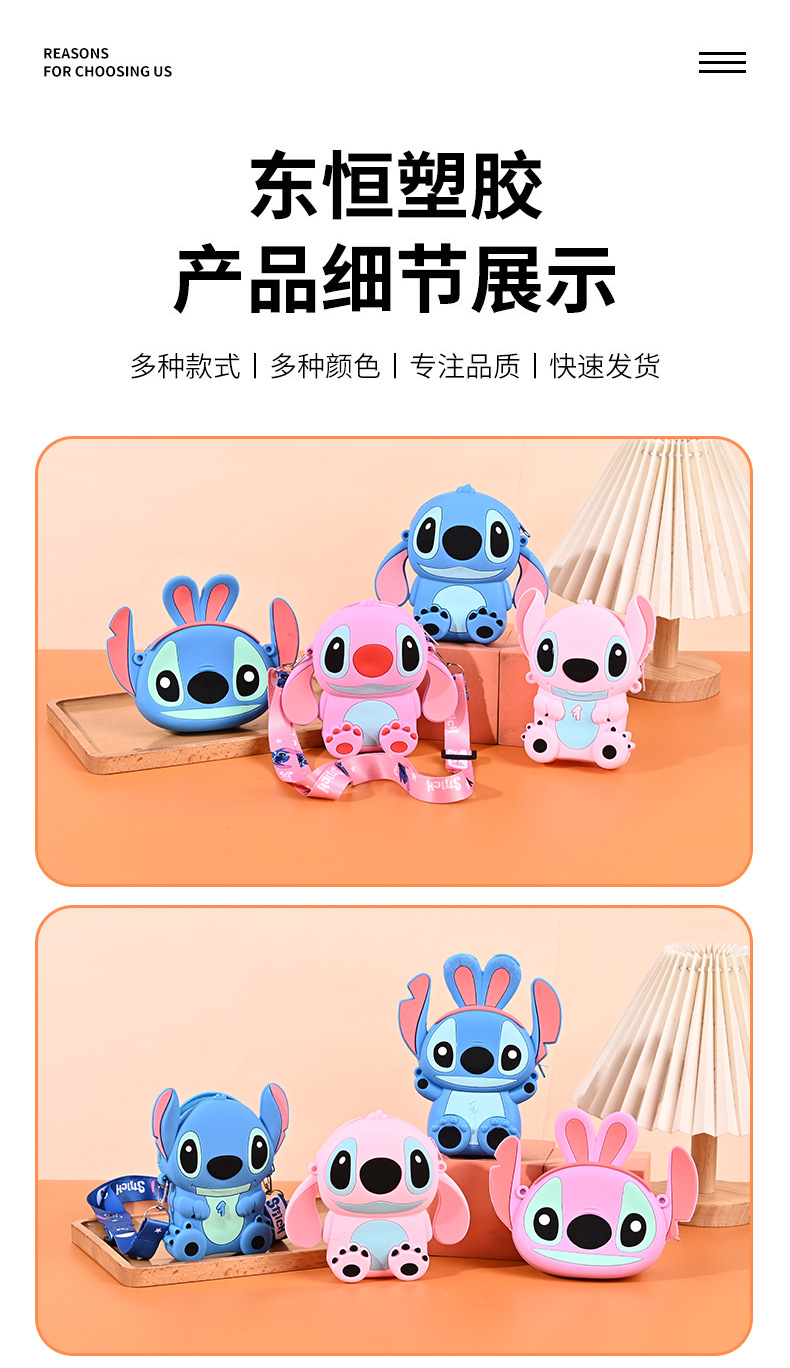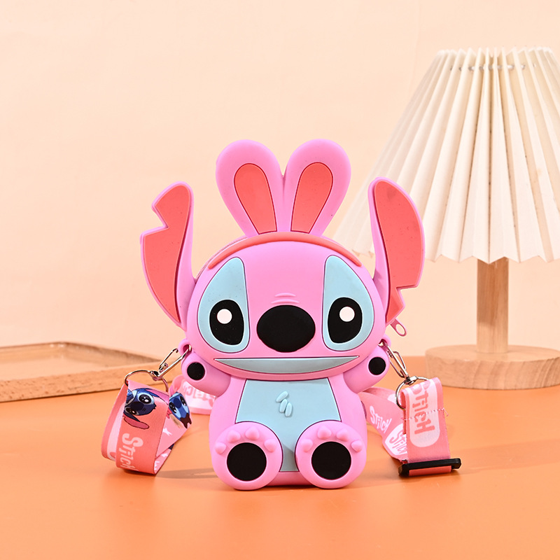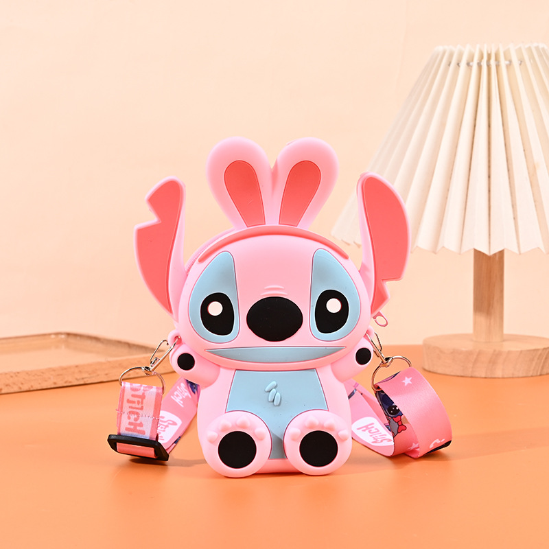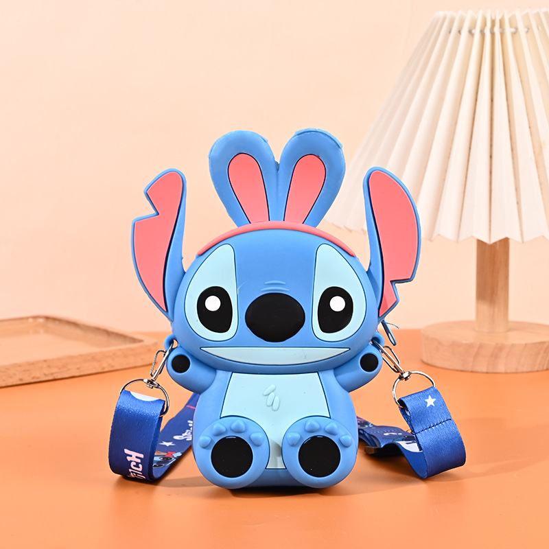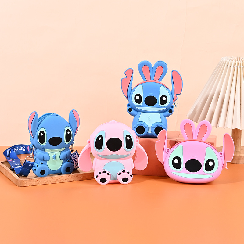 Stitch 어린이 귀여운 만화 실리콘 어깨 크로스 바디 백 어린이 크로스 바디 동전 지갑 일일 다목적 방수 가방