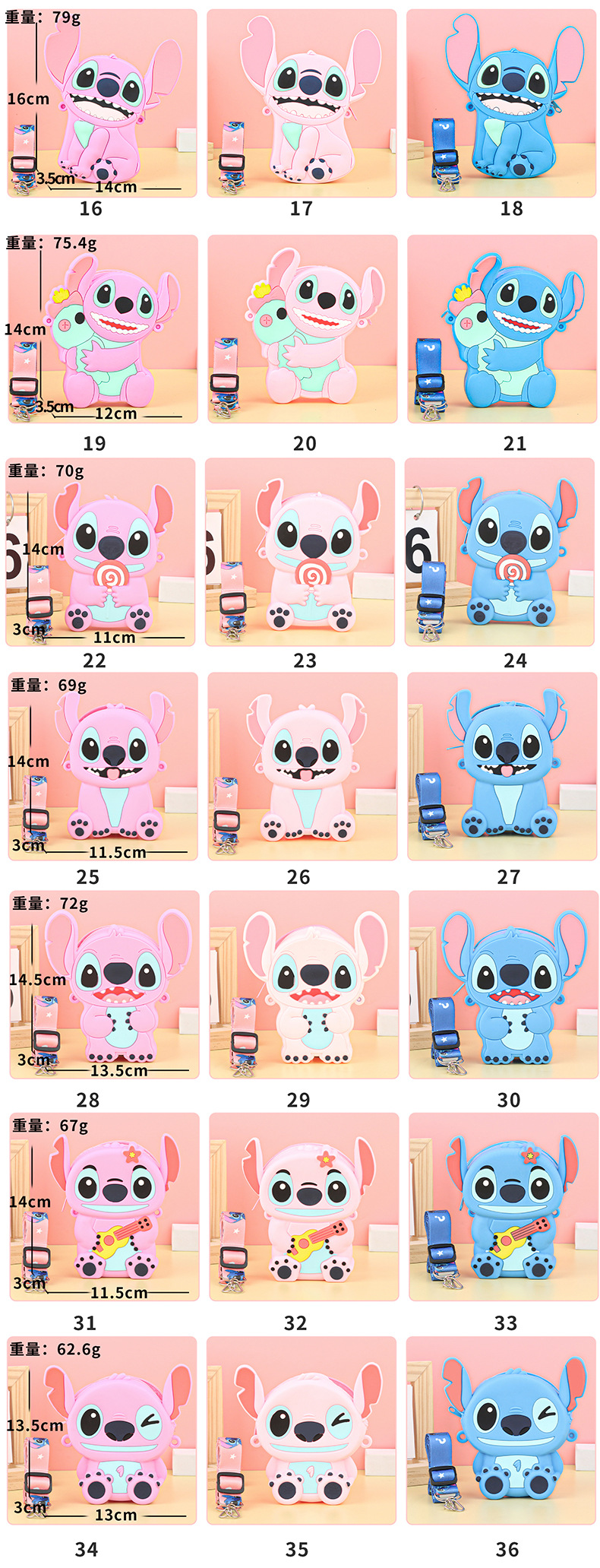 Stitch 어린이 귀여운 만화 실리콘 어깨 크로스 바디 백 어린이 크로스 바디 동전 지갑 일일 다목적 방수 가방스토어 가기