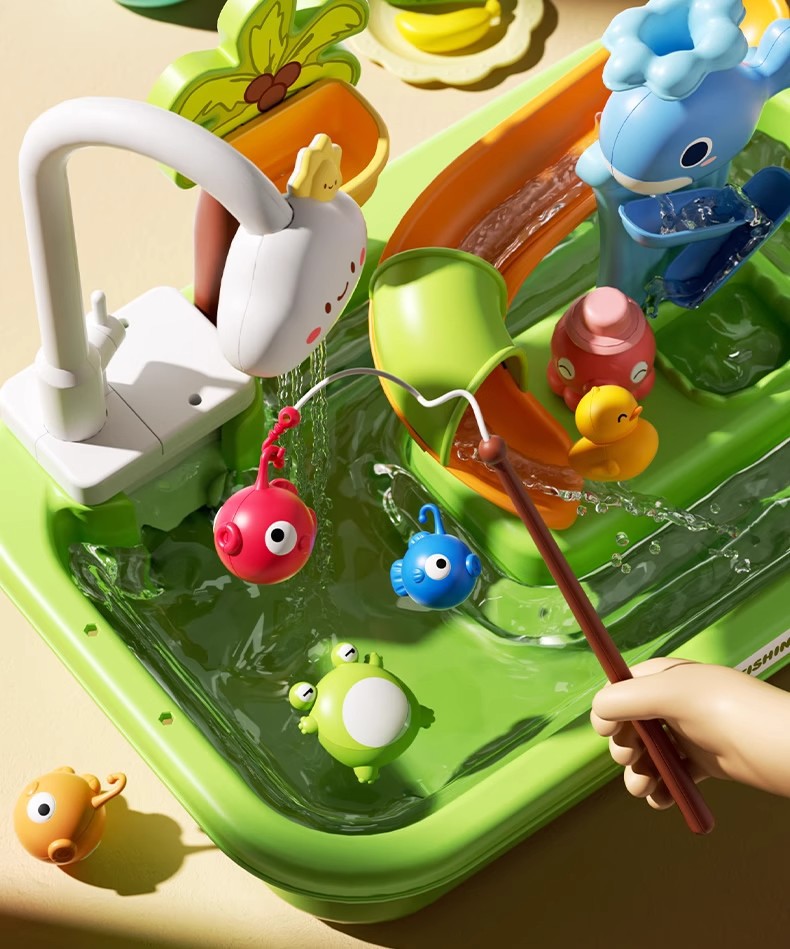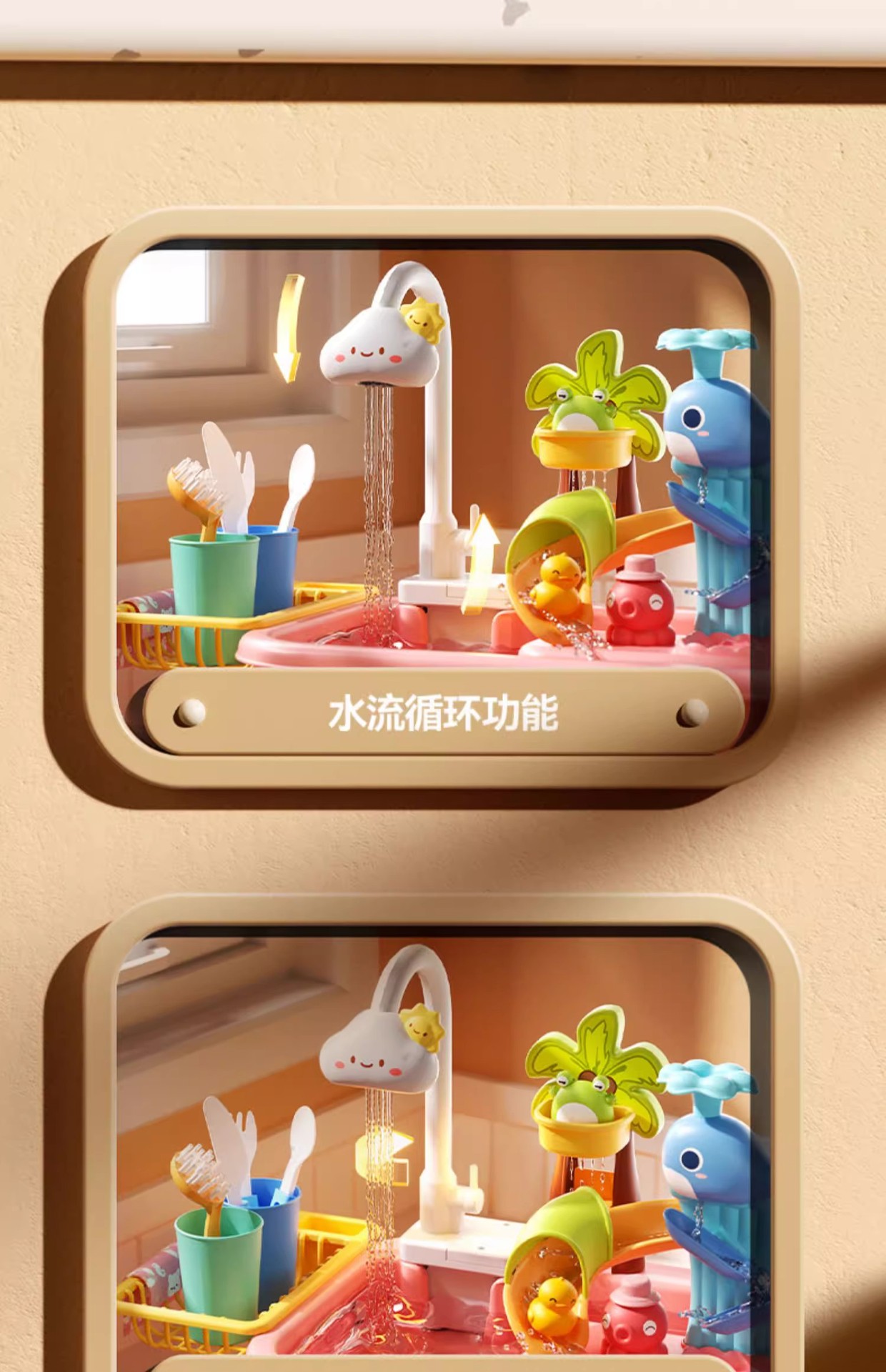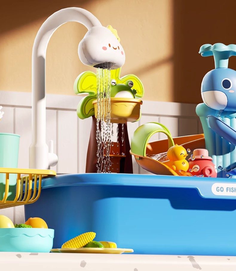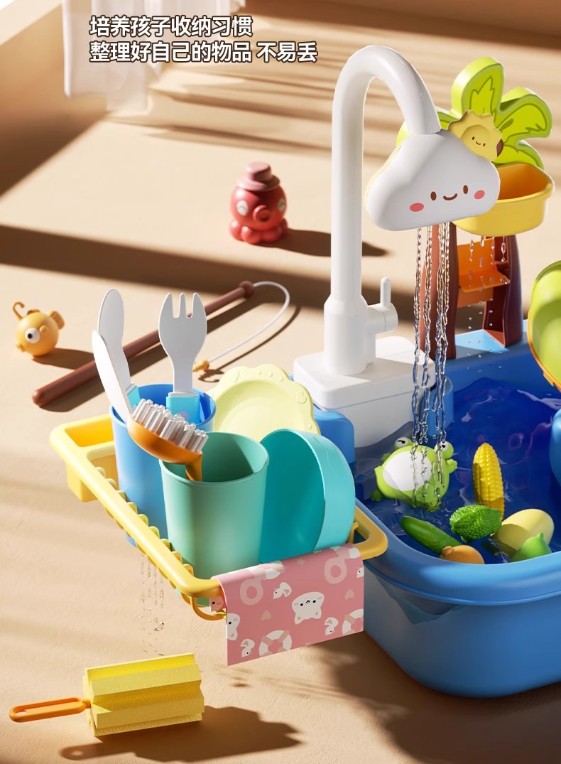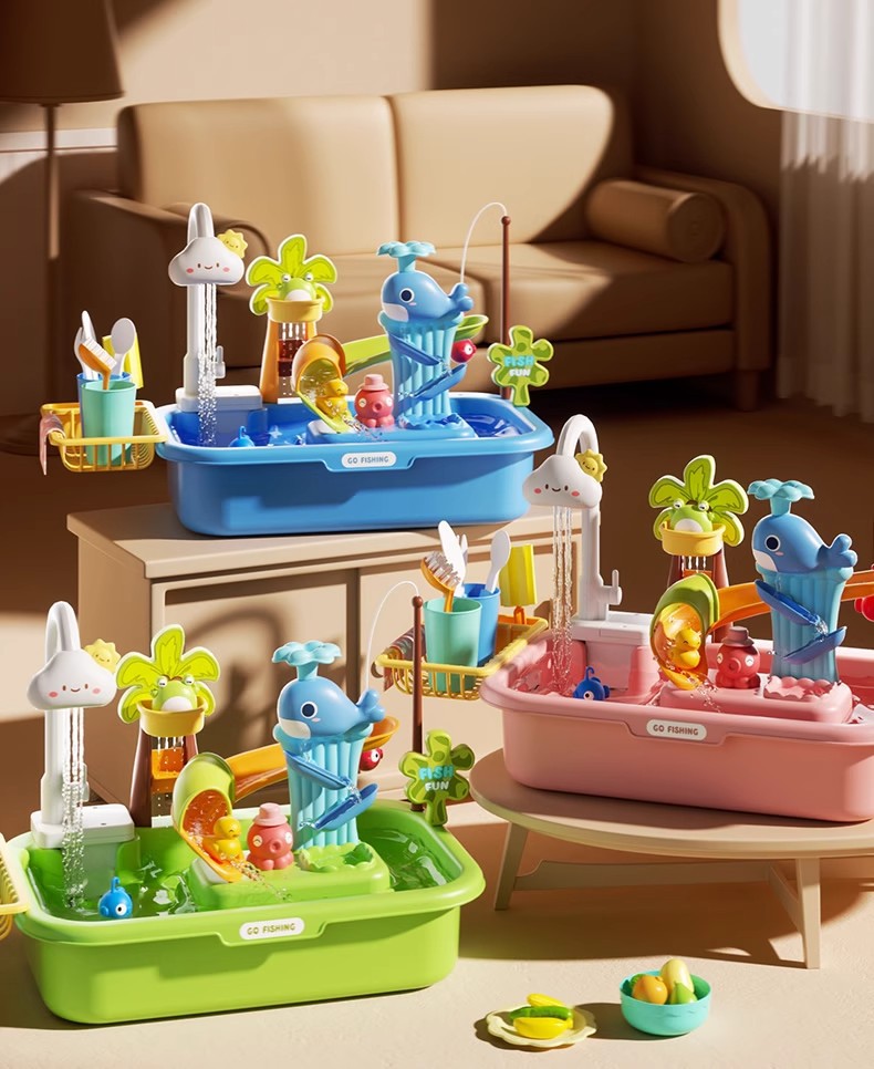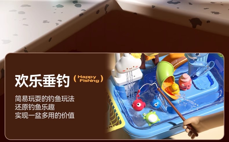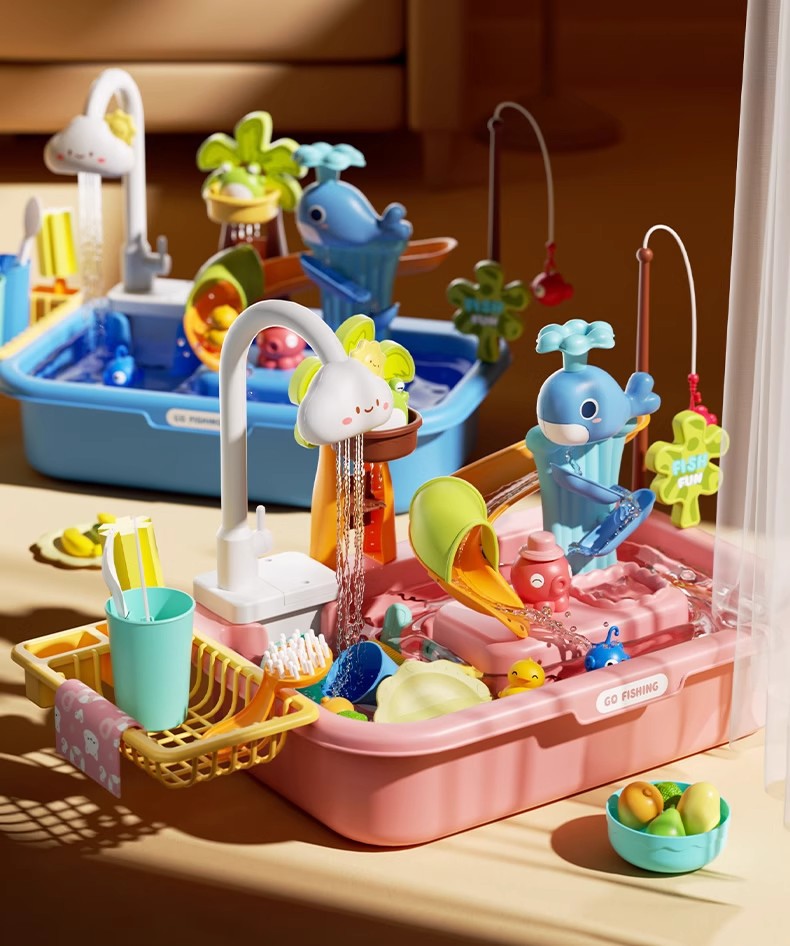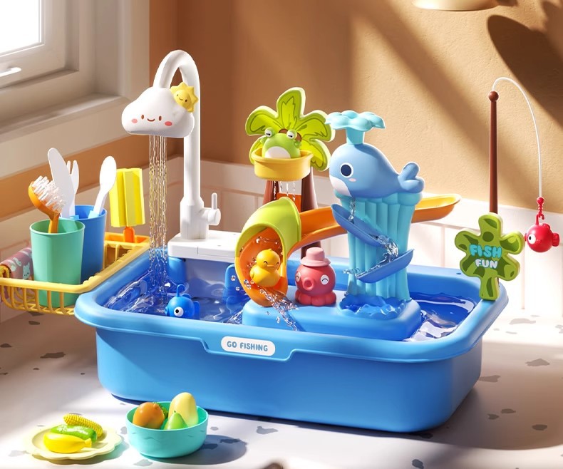 국경을 넘나드는 어린이 놀이 주방 식기 세척 세트 전기 순환식 식기 세척 및 낚시 플랫폼 물 장난감스토어 가기
