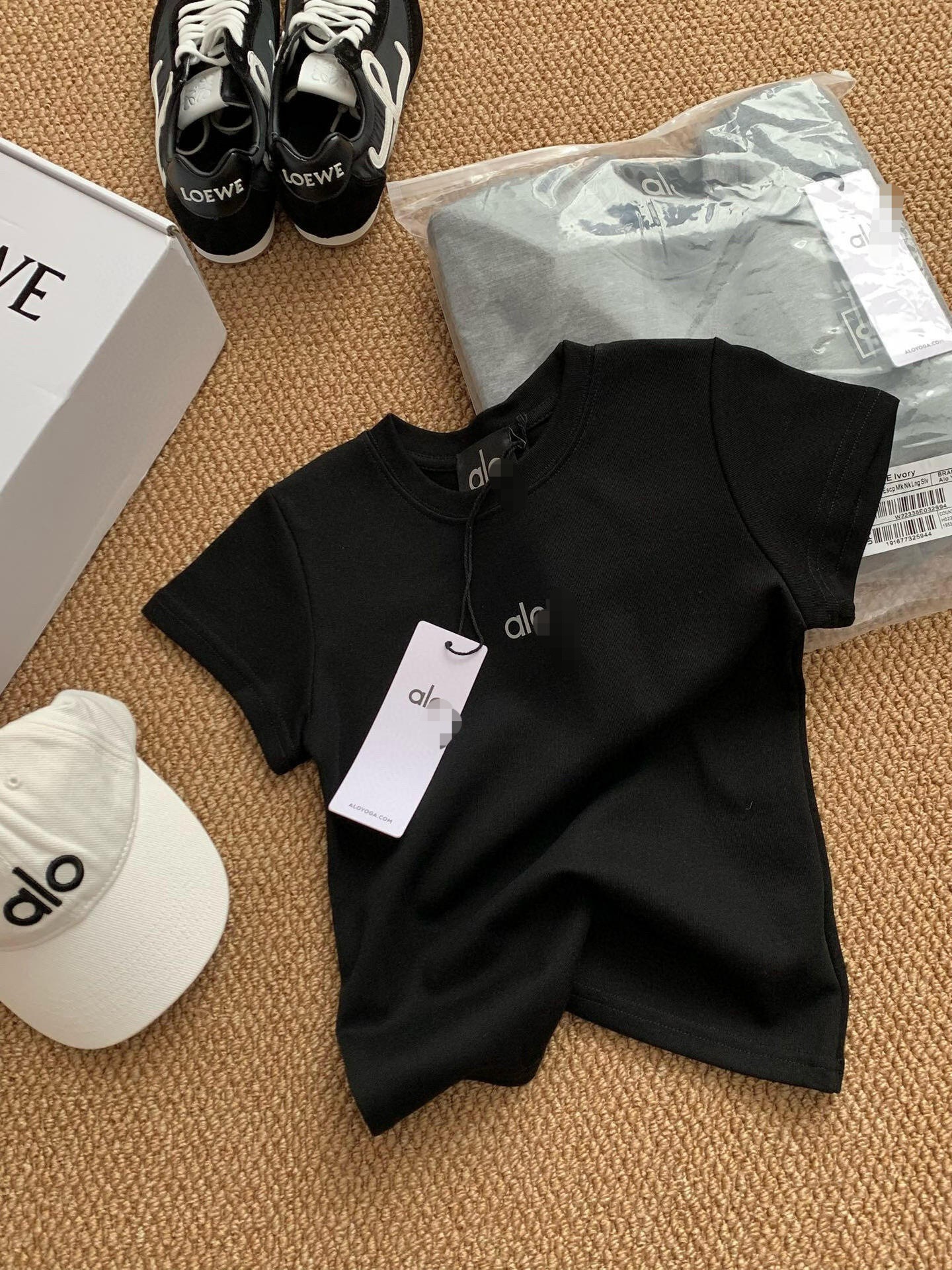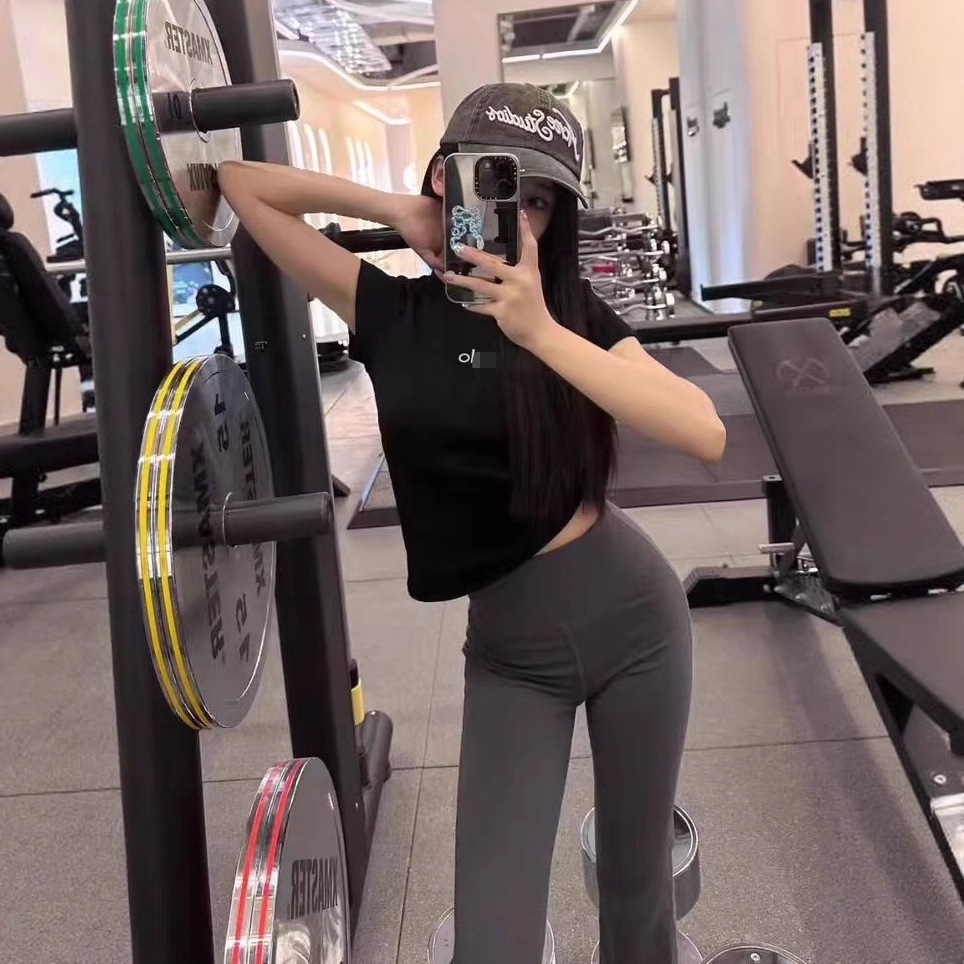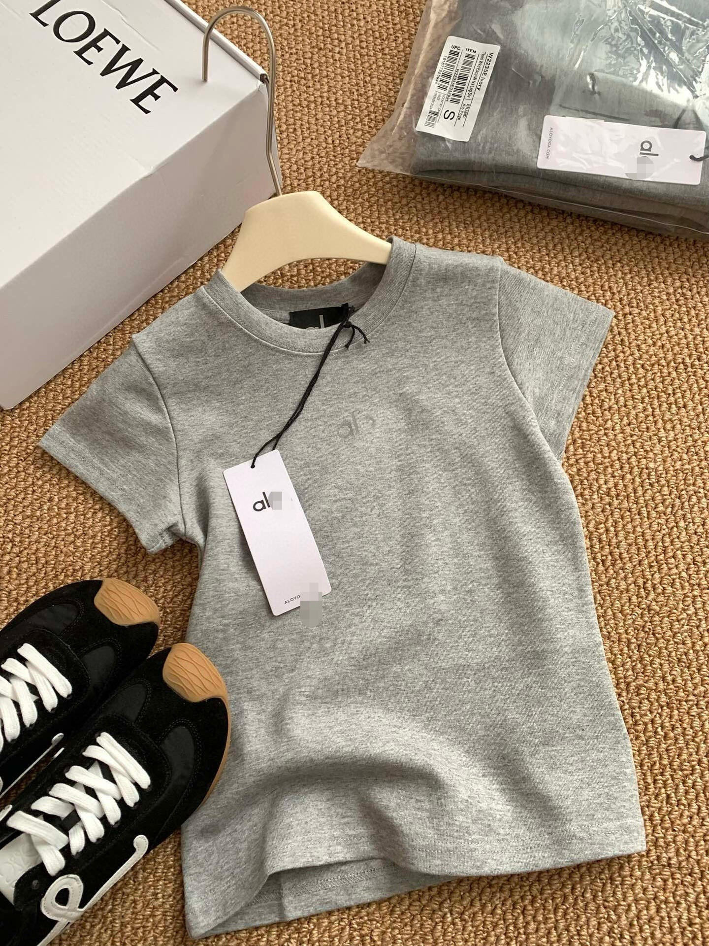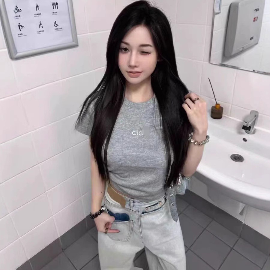 ALO CLASS 여름 신작 슬림핏 오른쪽 어깨 라운드 넥 반팔 티셔츠 여성용 심플 솔리드 컬러 슬림 반팔 탑스토어 가기