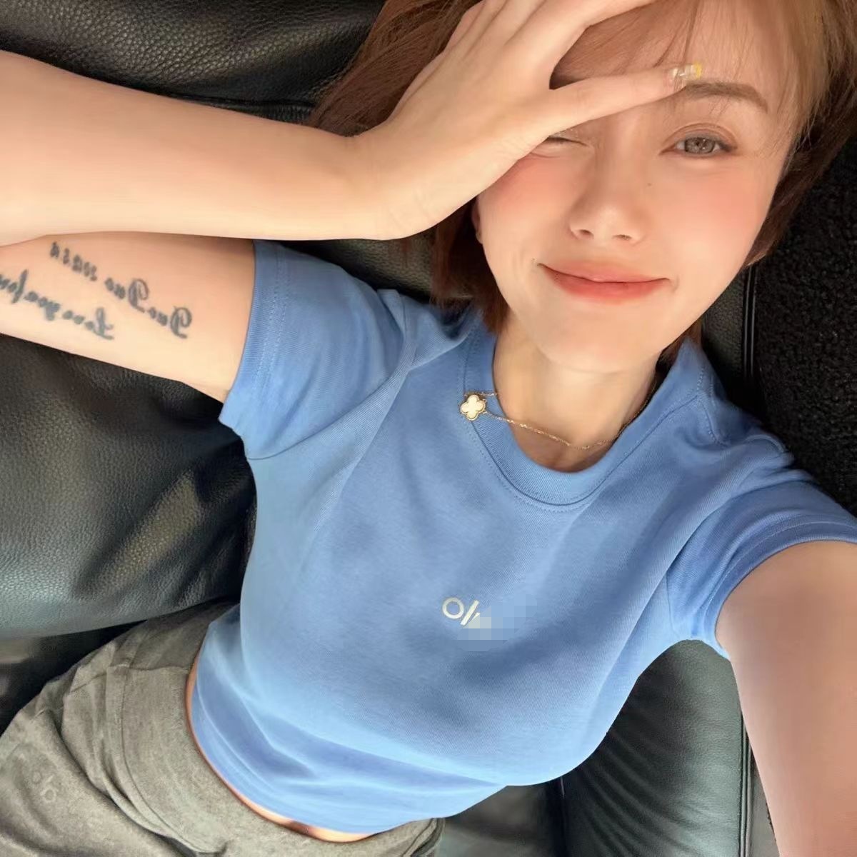 ALO CLASS 여름 신작 슬림핏 오른쪽 어깨 라운드 넥 반팔 티셔츠 여성용 심플 솔리드 컬러 슬림 반팔 탑