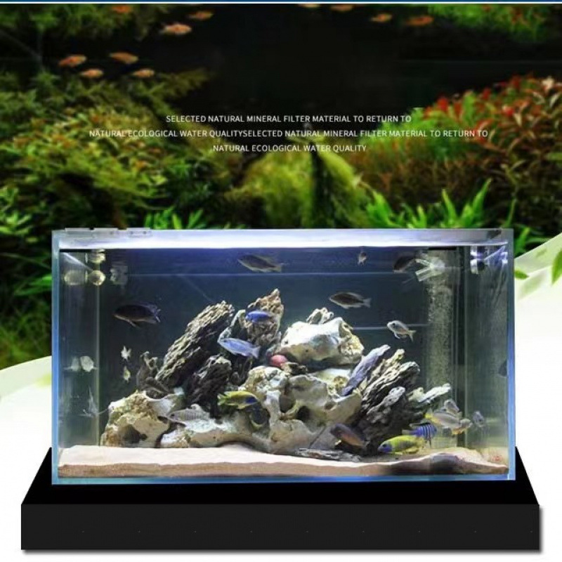 금색 초백색 사각형 유리 수조 데스크탑 거실 작은 betta 거북이 조경 게으른 물고기와 수생 식물
