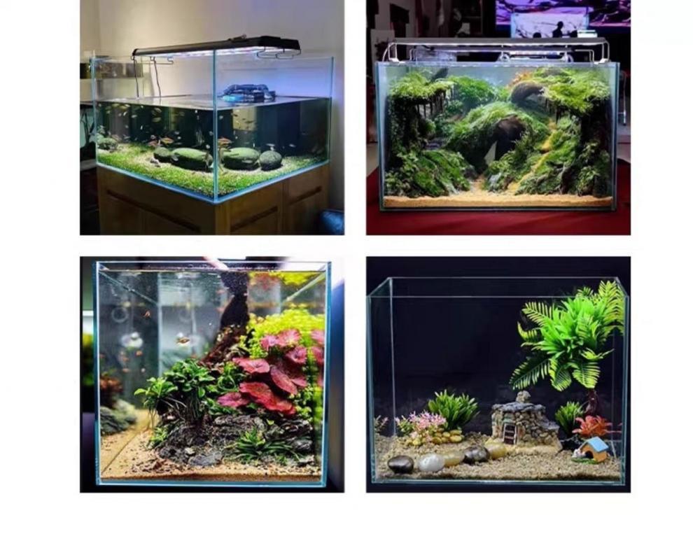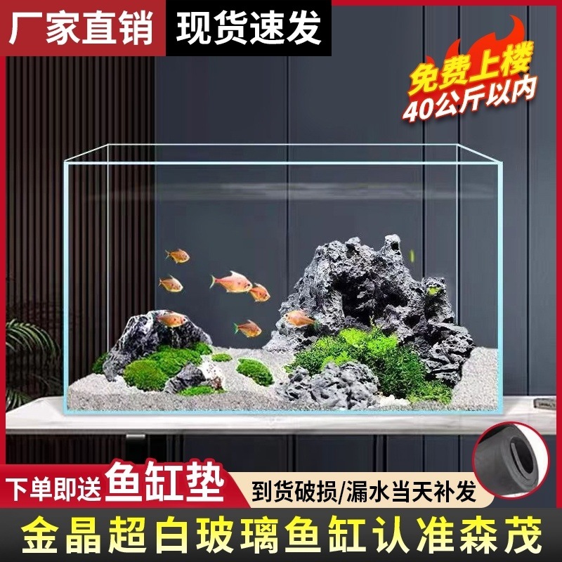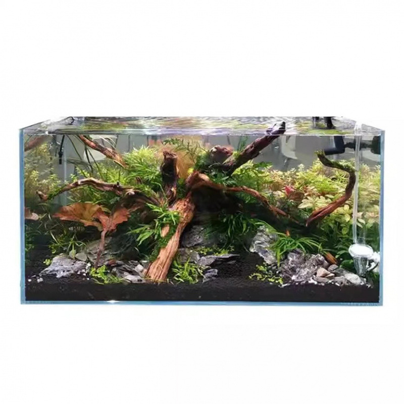 금색 초백색 사각형 유리 수조 데스크탑 거실 작은 betta 거북이 조경 게으른 물고기와 수생 식물스토어 가기