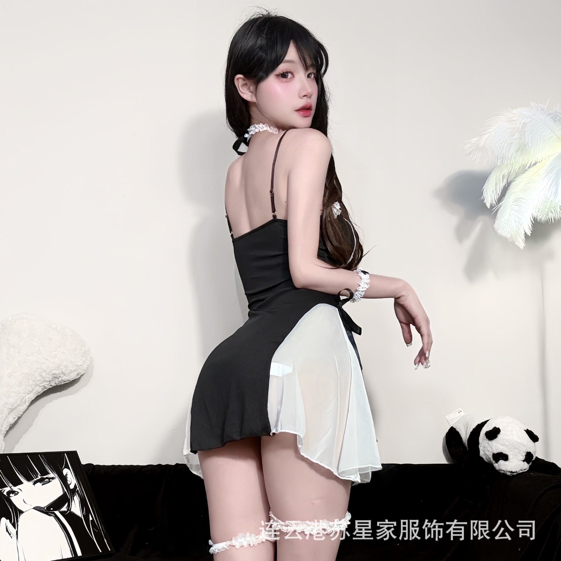 플러스 사이즈 섹시 란제리, 섹시 메이드복, 핫걸 유니폼, 섹시 서스펜더 스커트, 미드나잇 매력 유혹