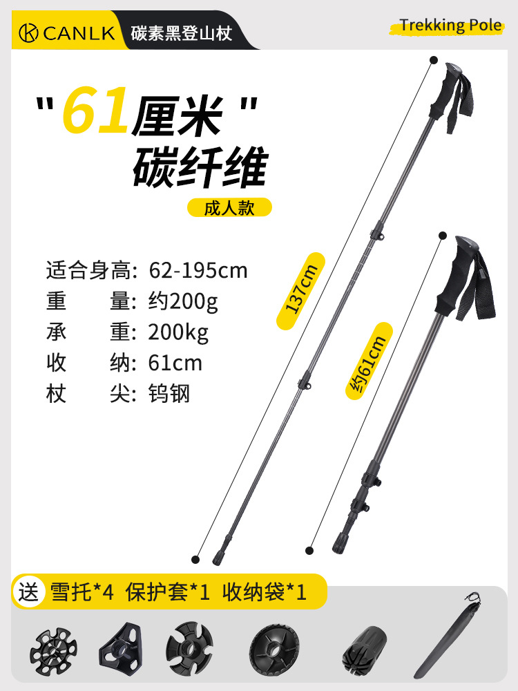 야외 트레킹 스틱, 탄소 섬유 초경량 등산 스틱, 접이식 접이식 지팡이, 하이킹 캠핑 등산 장비