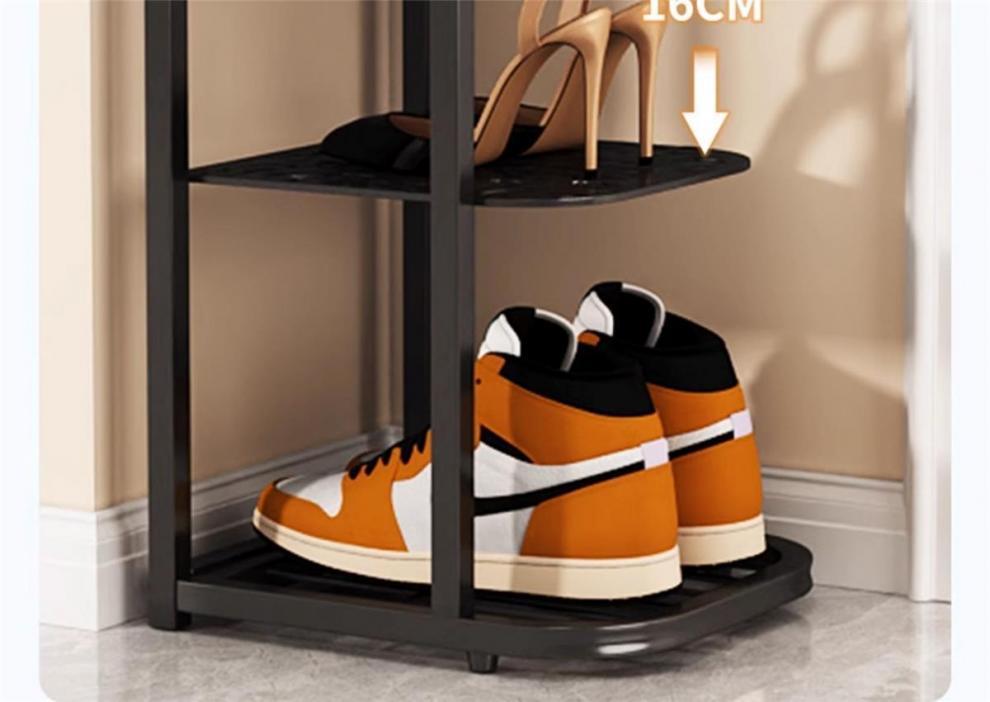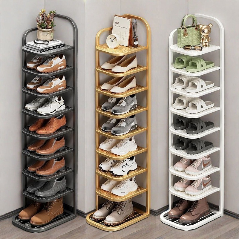 현관문에 있는 간단한 신발장, 벽에 있는 작은 좁은 현관문, 철제 신발장, 다층 가정용 코너 기숙사 방진스토어 가기