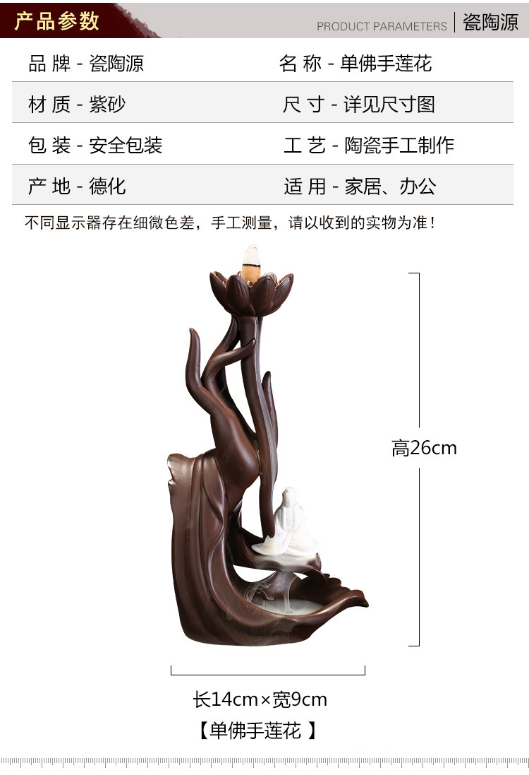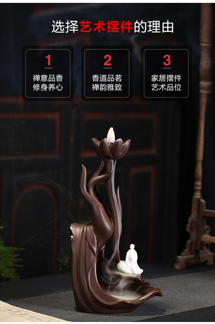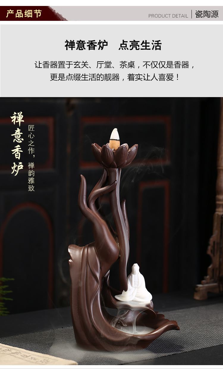 선불교 보라색 모래 관음 역류 향로 새로운 창조적 인 가정용 수직 향로 향로 실내 관상용 장치∑스토어 가기