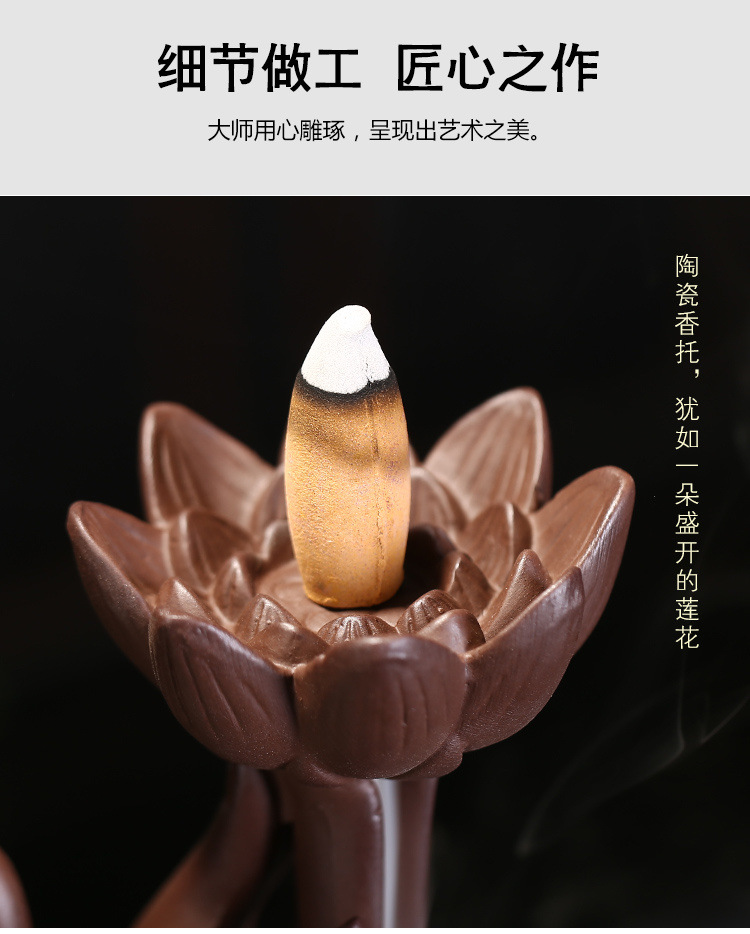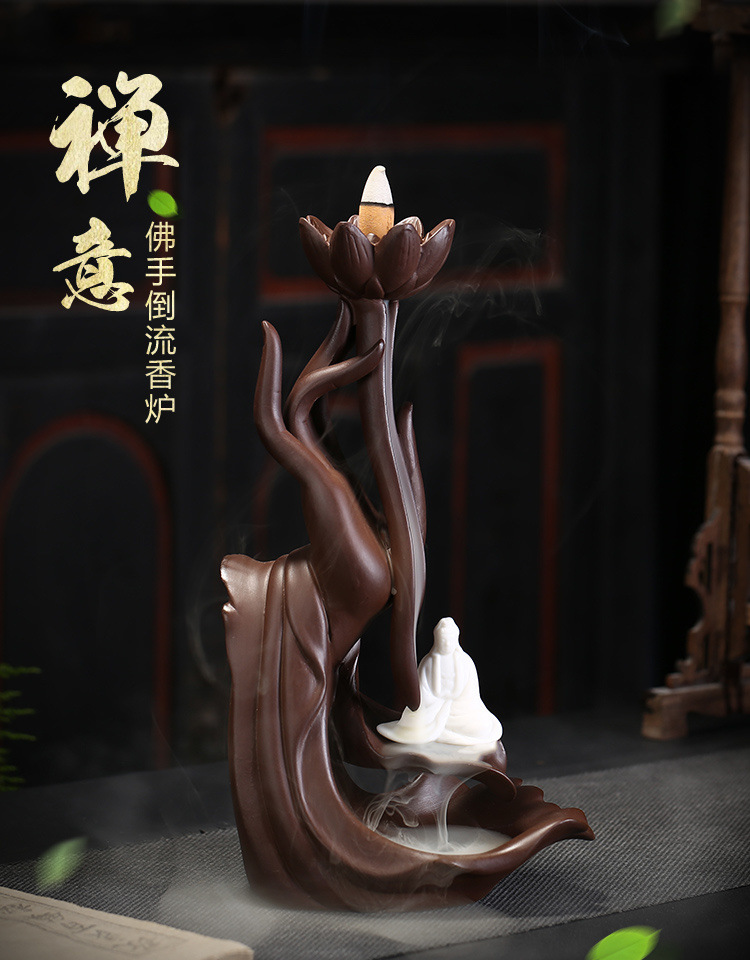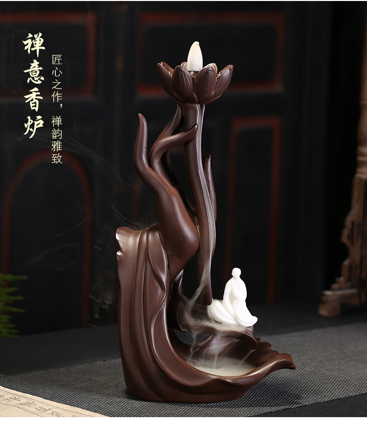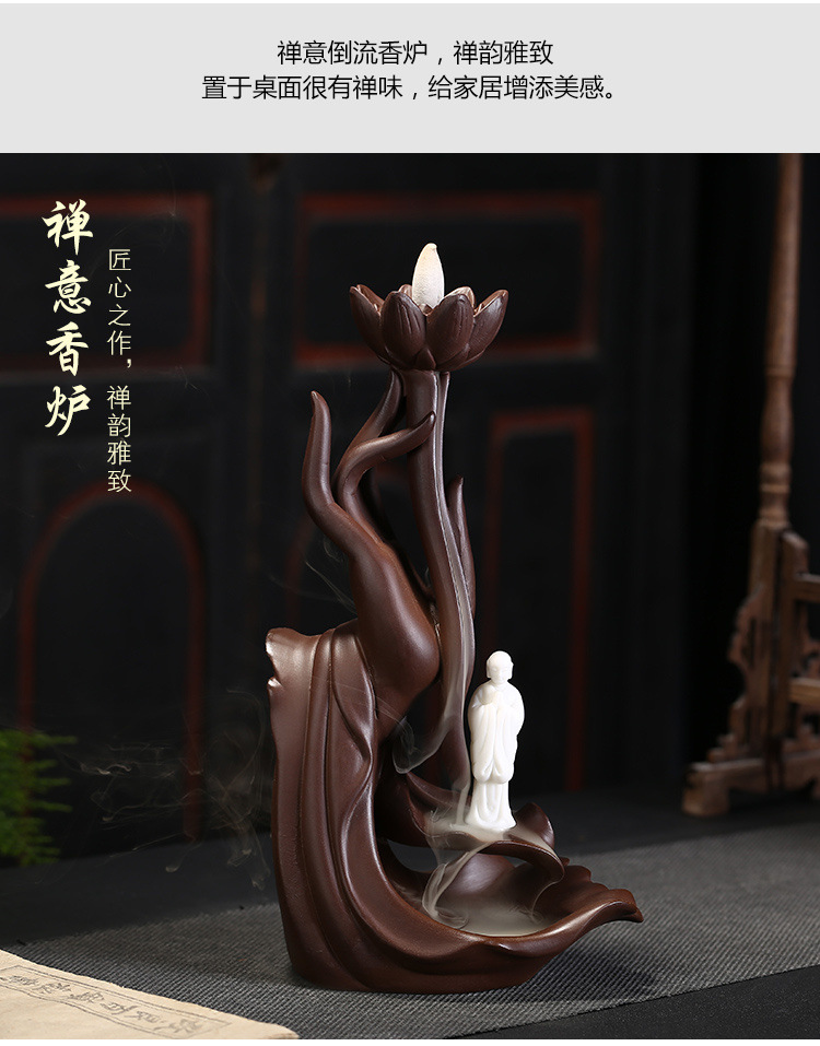 선불교 보라색 모래 관음 역류 향로 새로운 창조적 인 가정용 수직 향로 향로 실내 관상용 장치∑