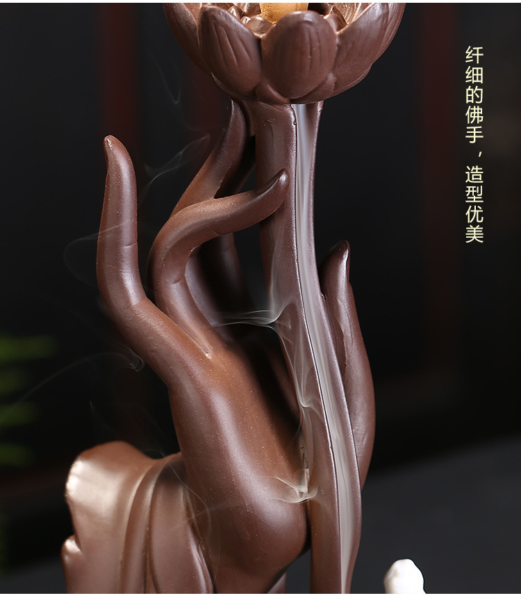 • 연꽃을 든 부처님의 손(작은 승려)이 201개의 혼합 향을 나눠줍니다.
