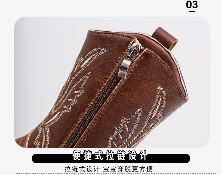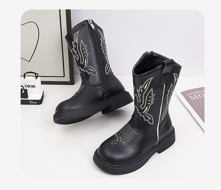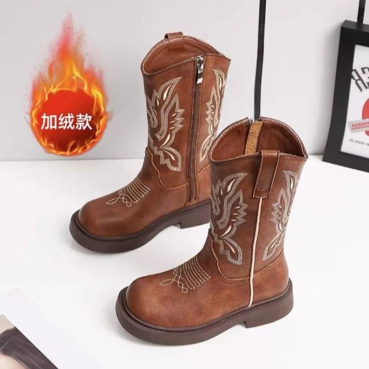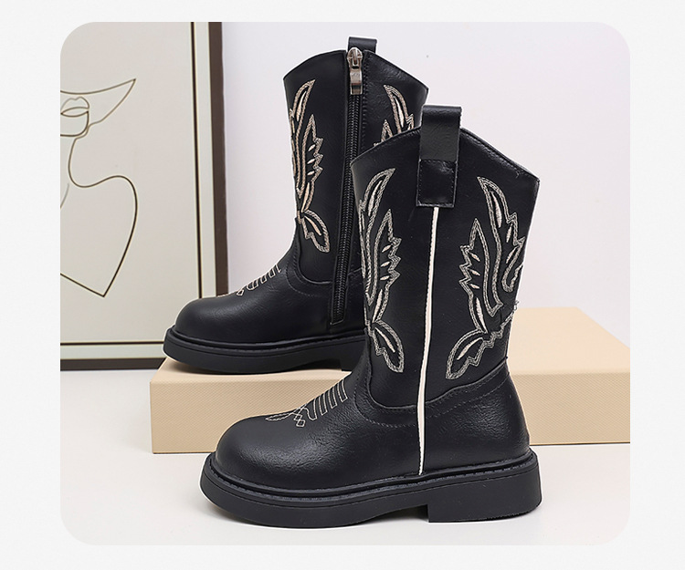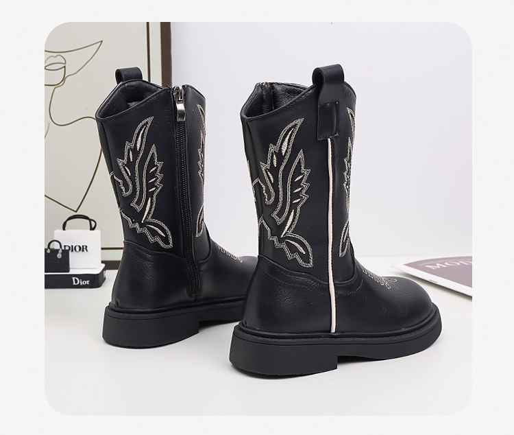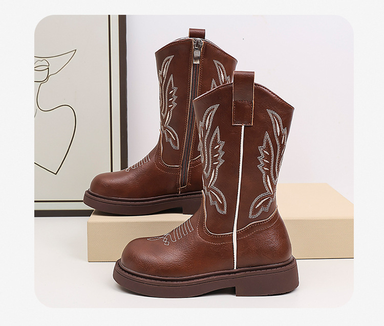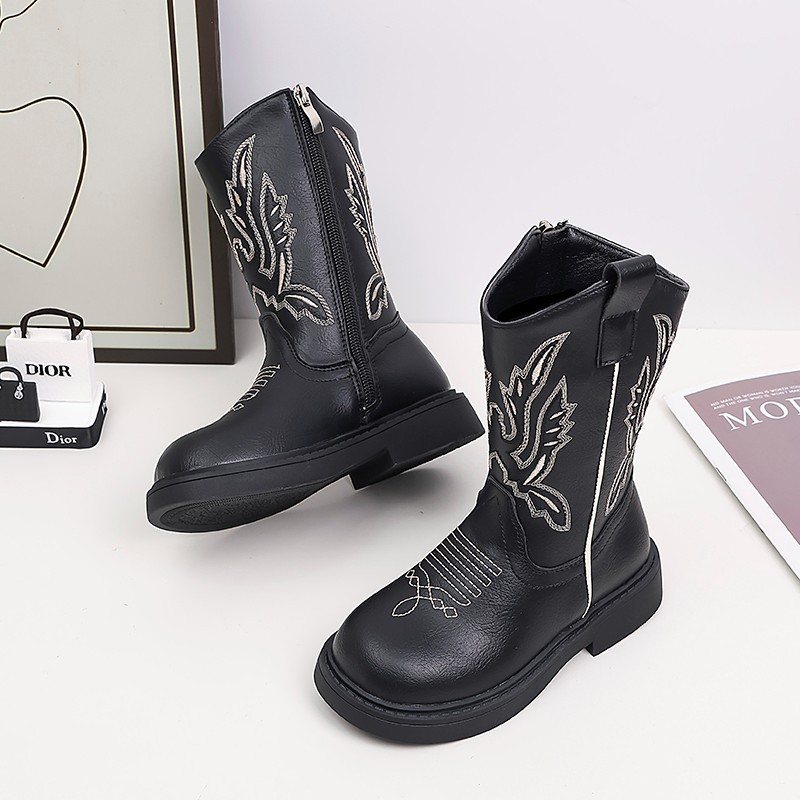 어린이 자수 가죽 부츠 2025 가을 겨울 신상 트렌디 브랜드 레트로 자수 웨스턴 카우보이 부츠 여아용 하이탑 마틴 부츠스토어 가기