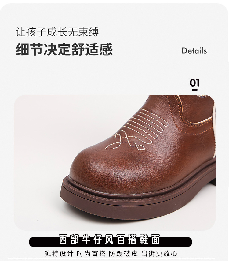 어린이 자수 가죽 부츠 2025 가을 겨울 신상 트렌디 브랜드 레트로 자수 웨스턴 카우보이 부츠 여아용 하이탑 마틴 부츠