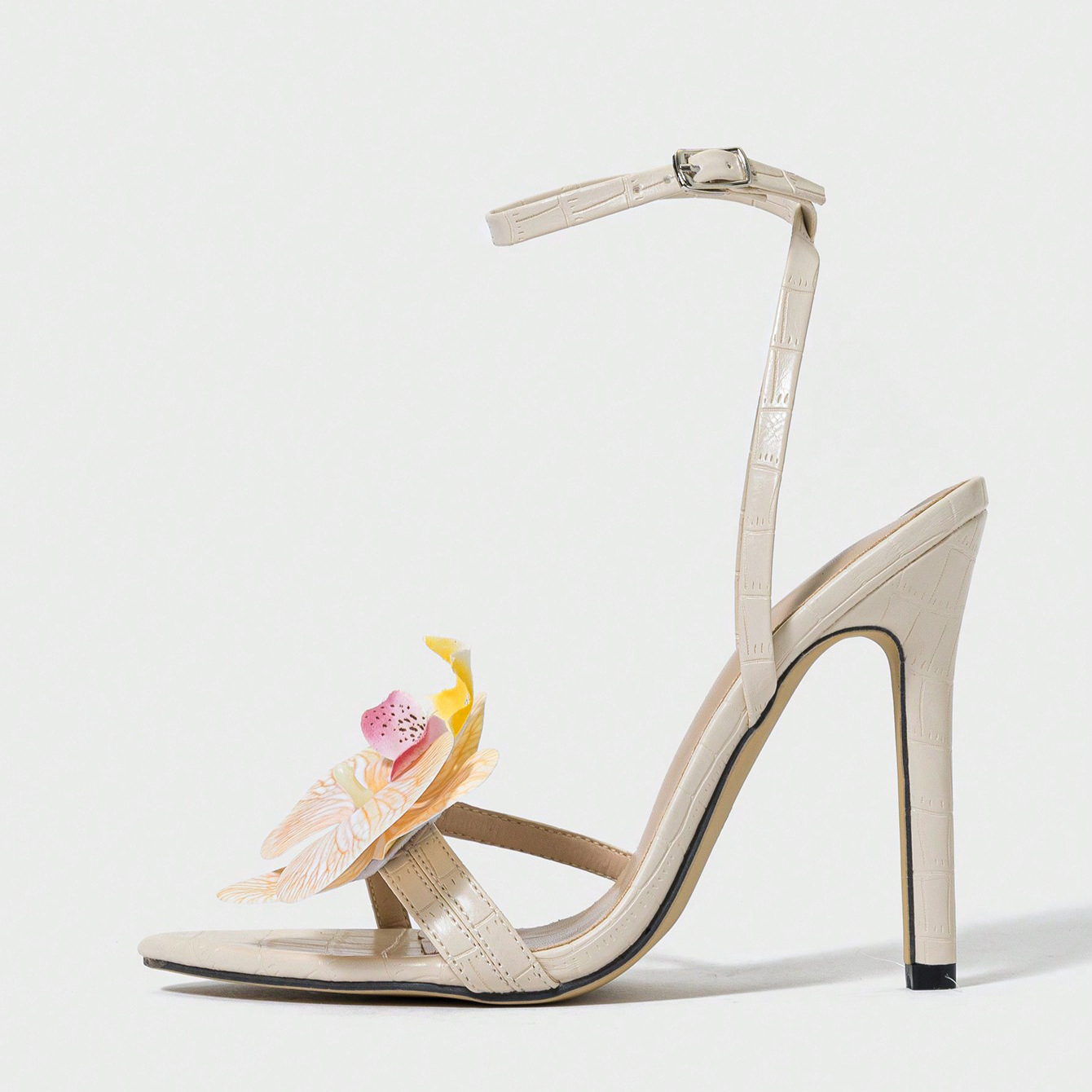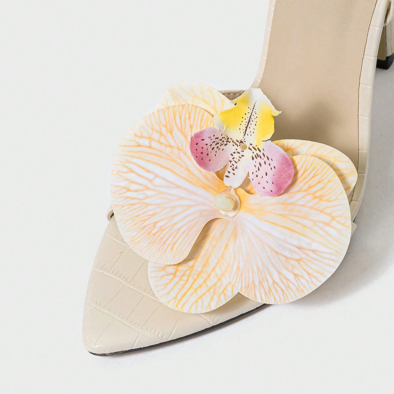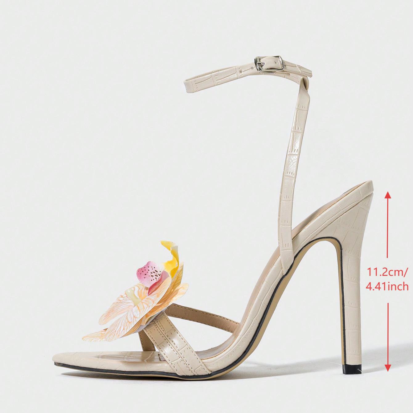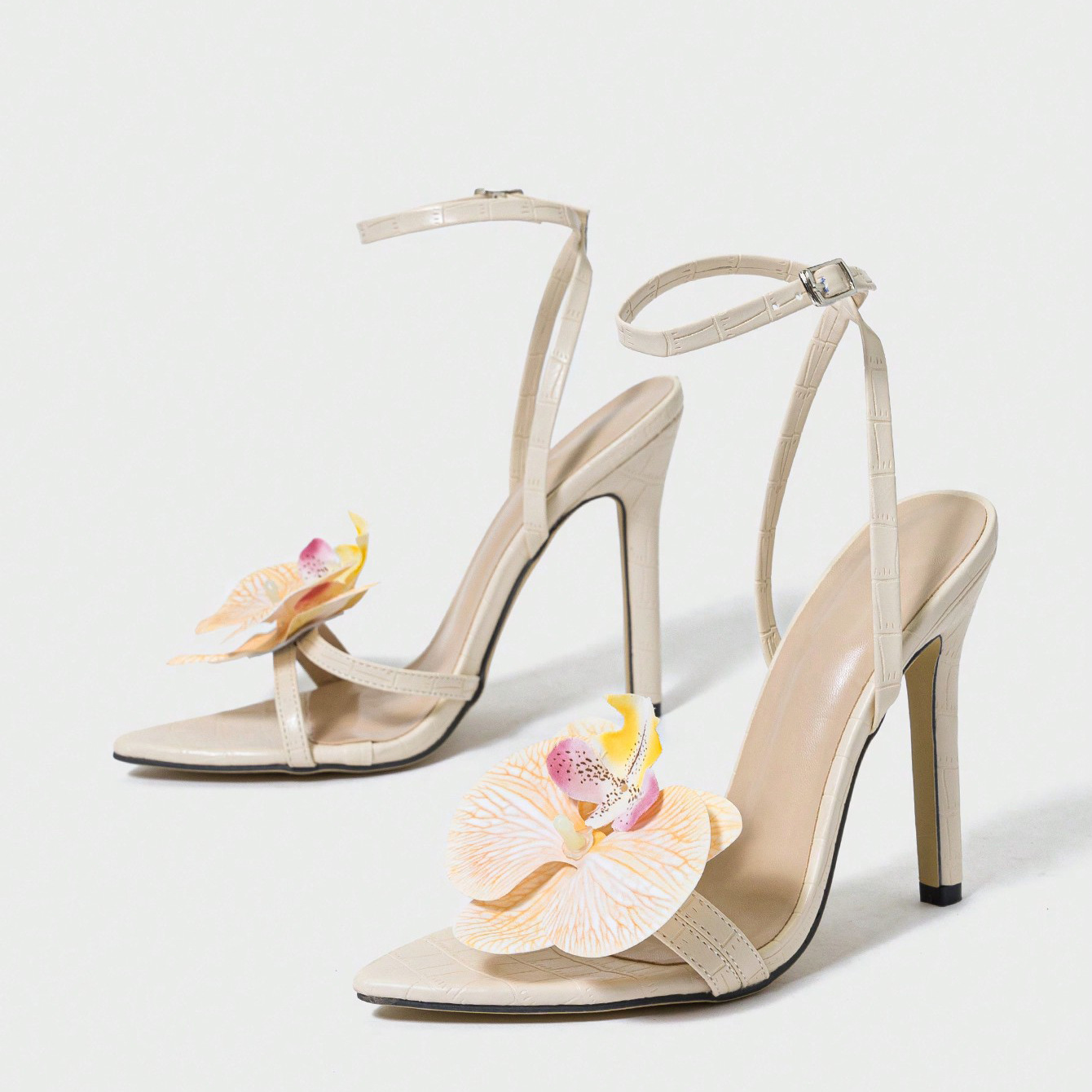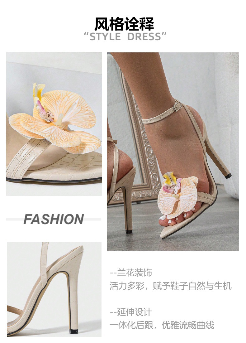 국경 간 대외 무역 여성 하이힐 샌들, 따뜻한 살구색 난초 장식, 수제 여성 신발, 대학 스타일, 우아하고 고귀한스토어 가기