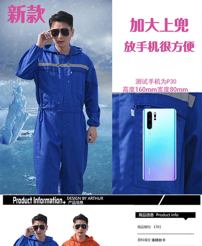 2025 새로운 반사 및 방오 작업복 남성용 긴팔 후드 봄, 가을 범용 올인원스토어 가기