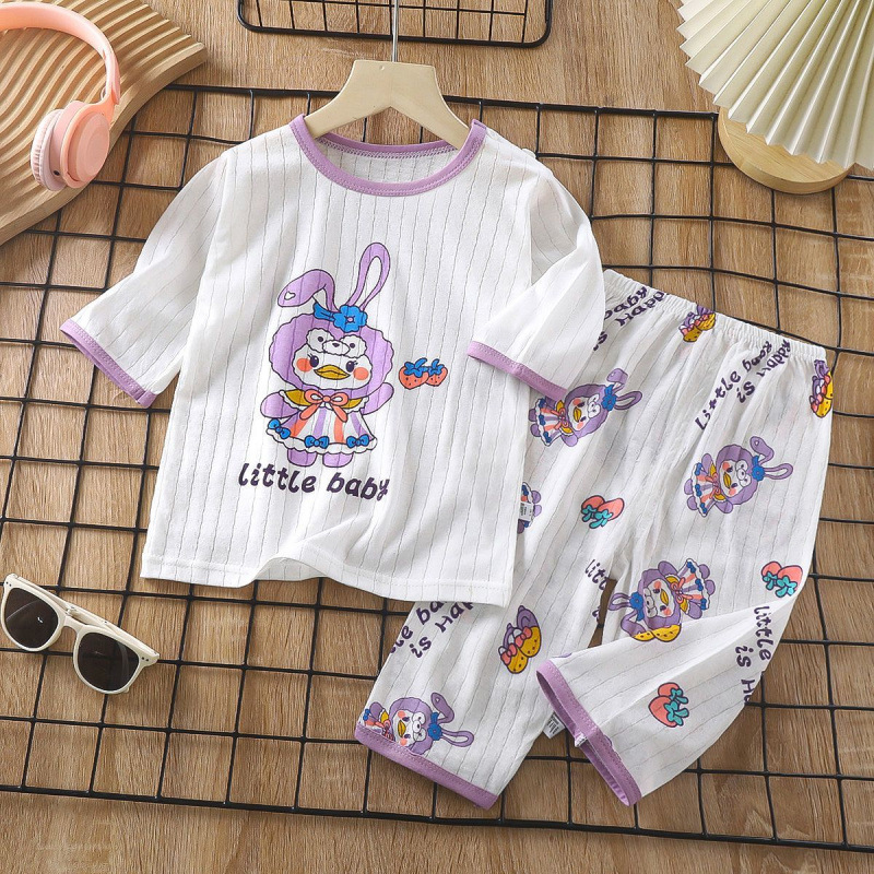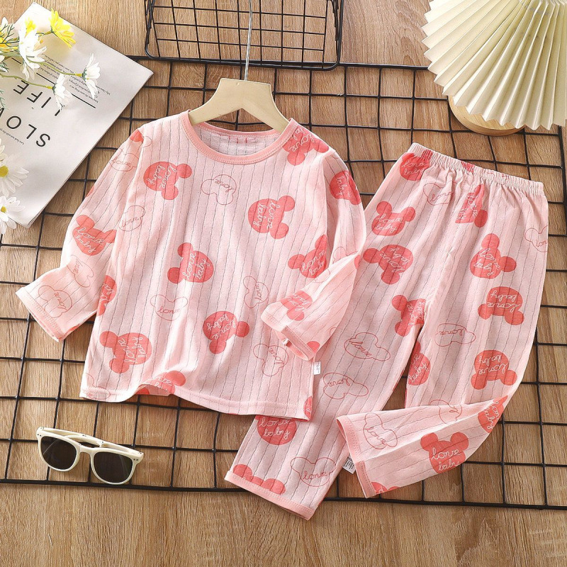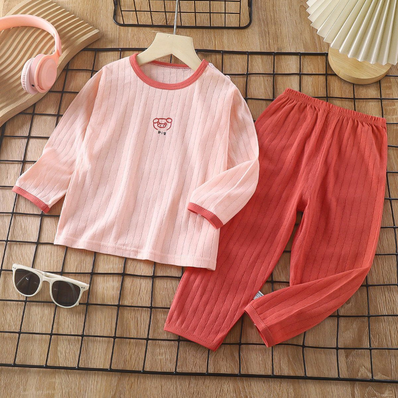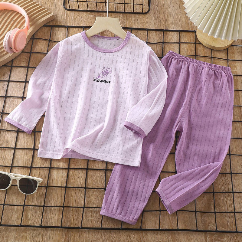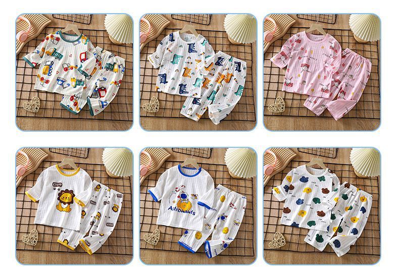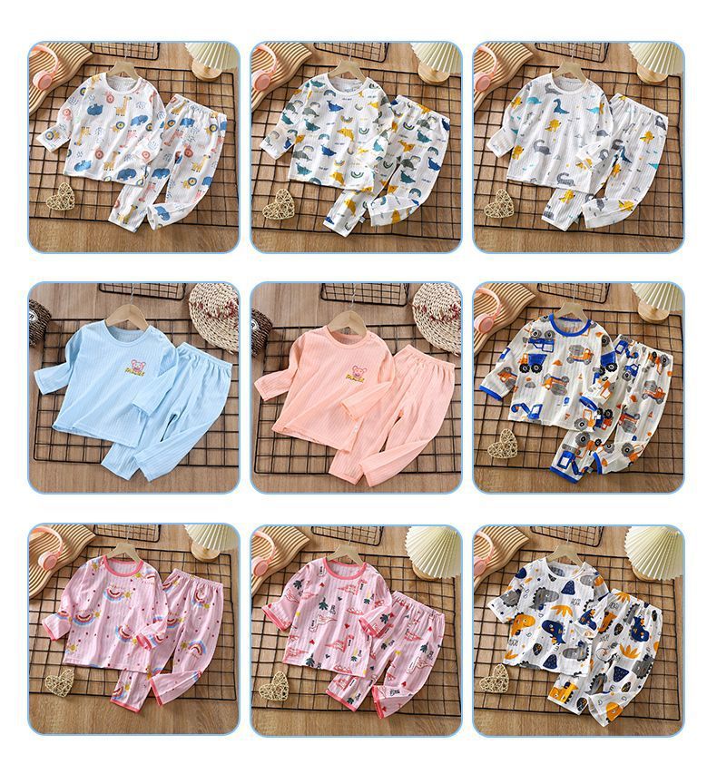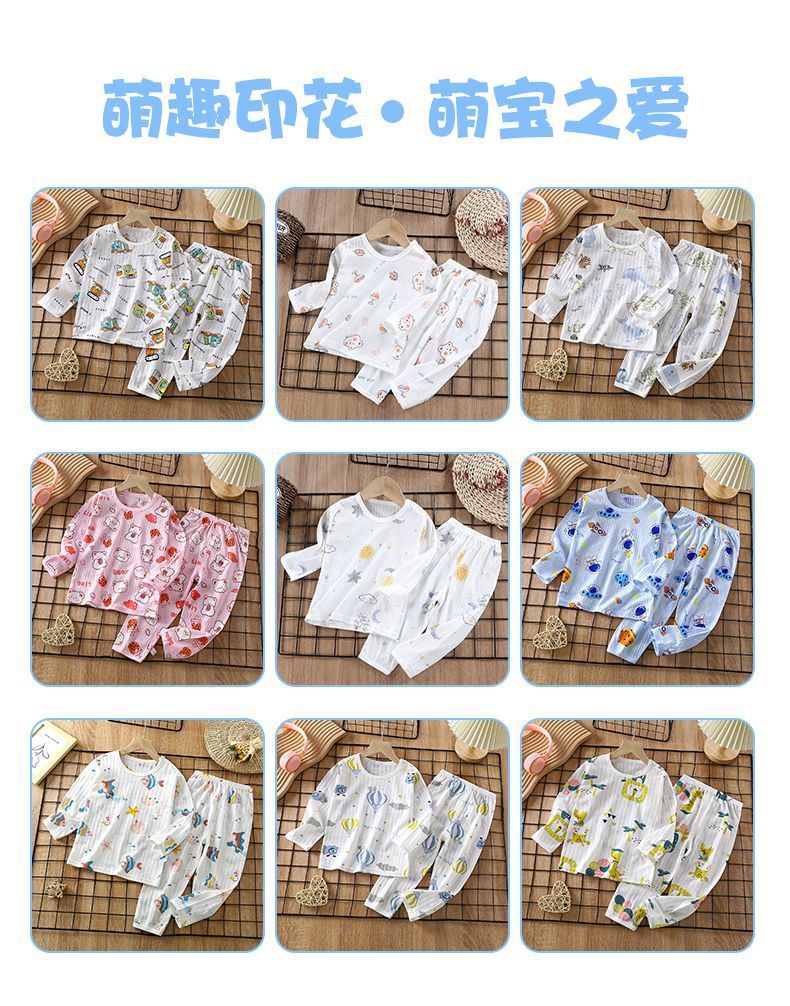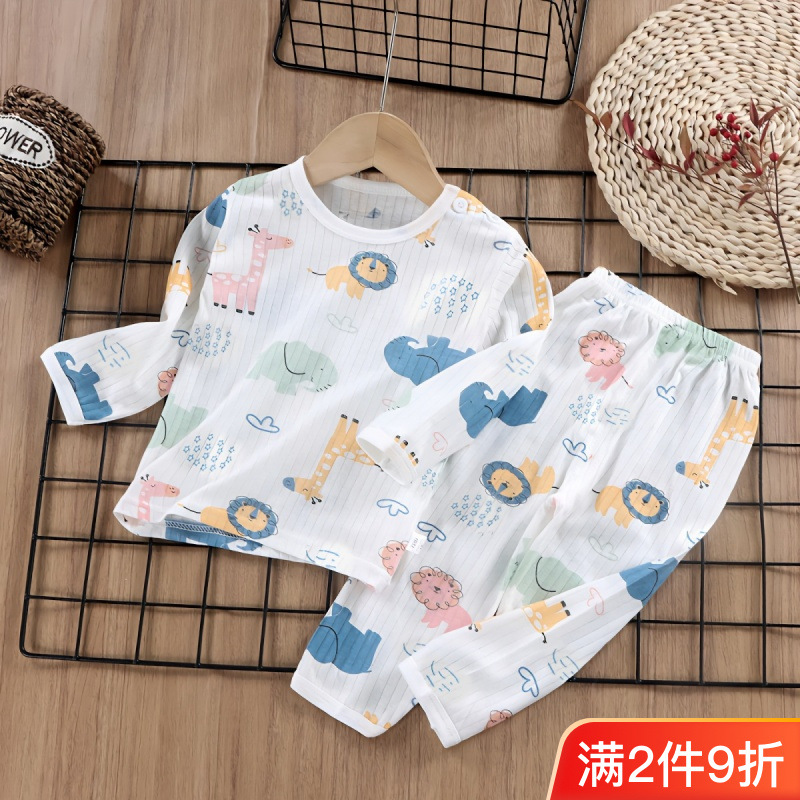 어린이 잠옷 순면 소년과 소녀 긴팔 가정 의류 세트 여름 얇은 아기 에어컨 옷 어린 소년 봄과 가을