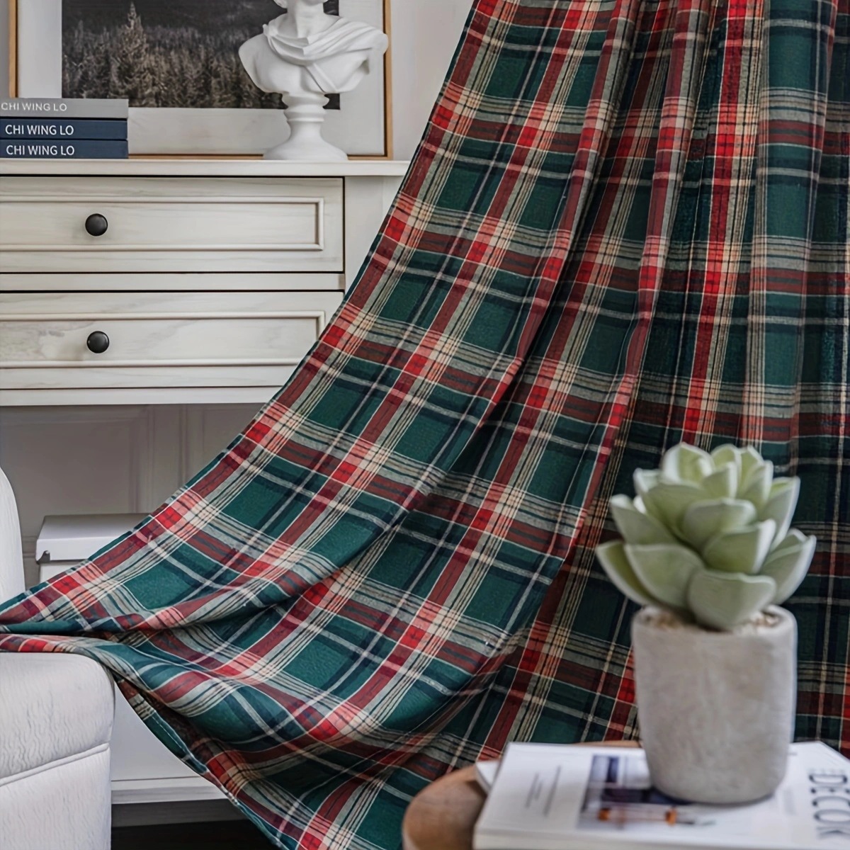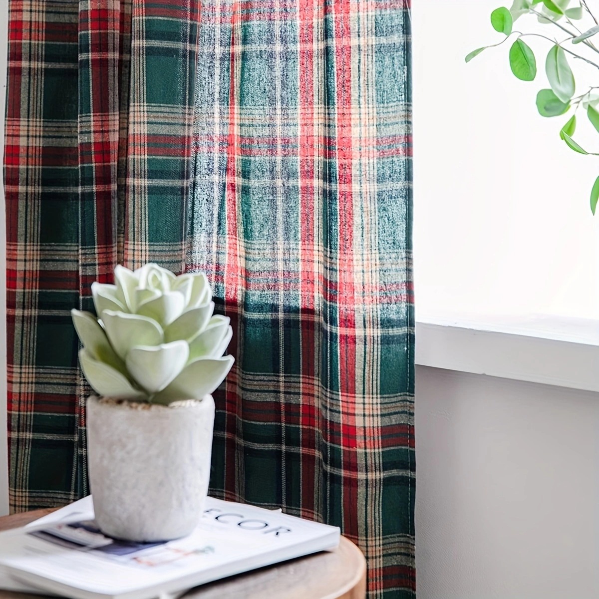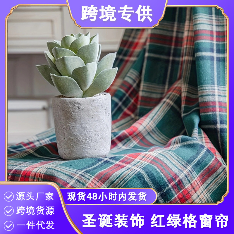 Dropshipping 국경 간 격자 무늬 장식 원사 염색 커튼 영국 스타일 크리스마스 장식 배경 커튼 Amazon 대외 무역스토어 가기