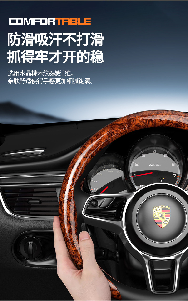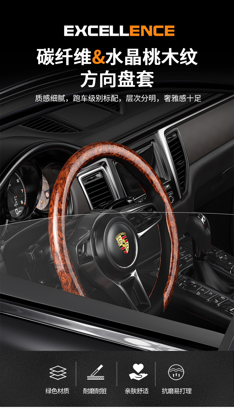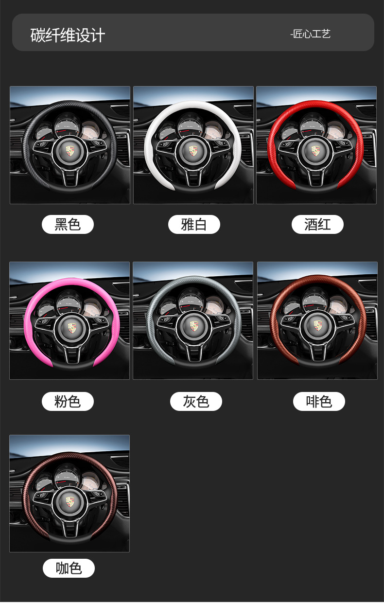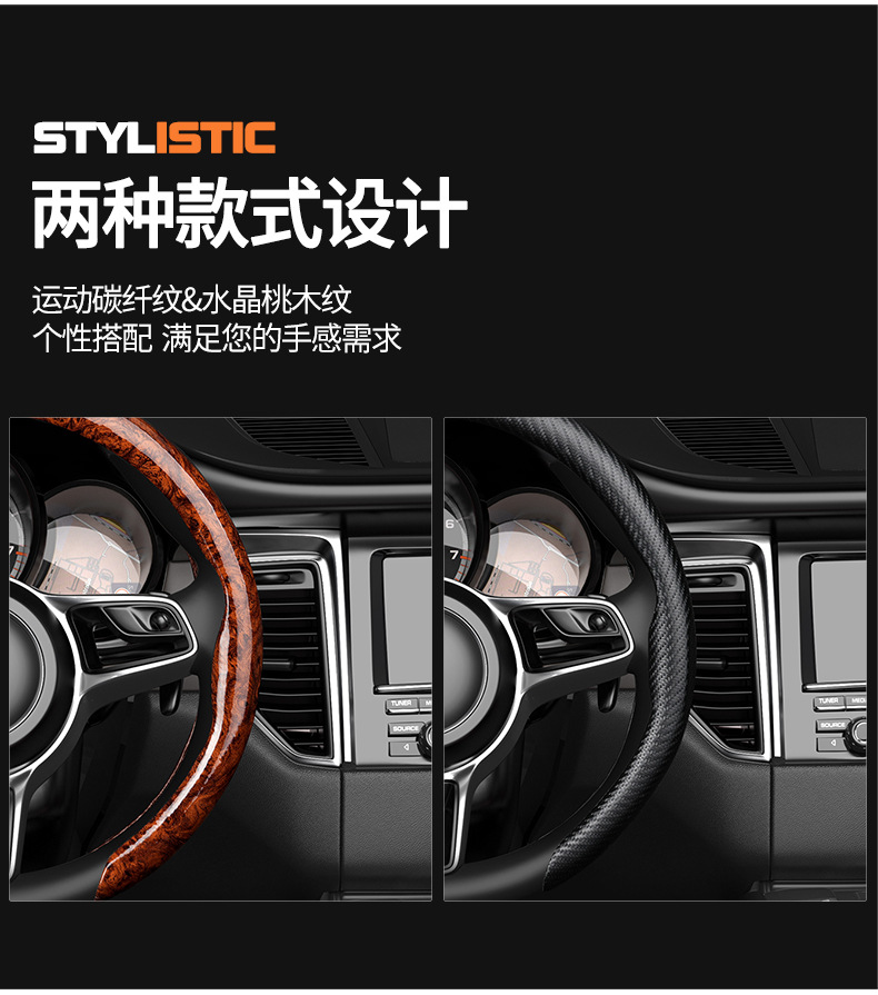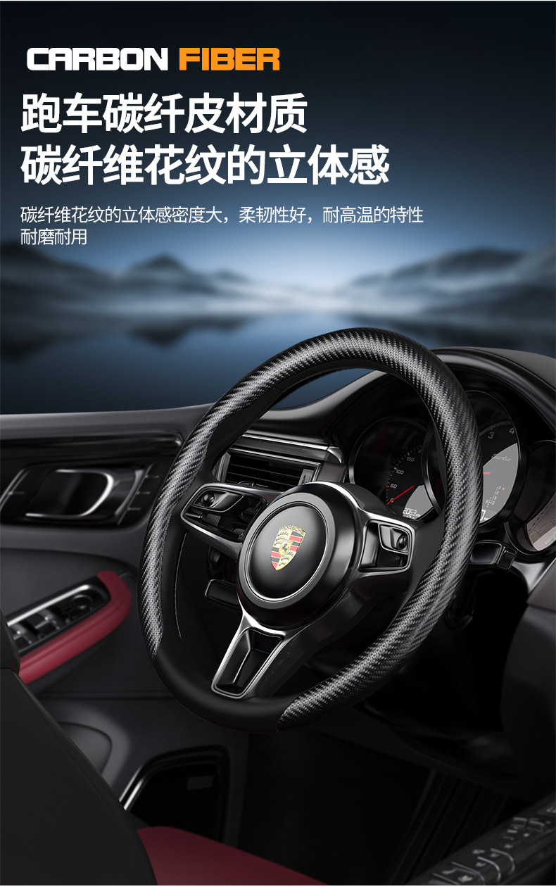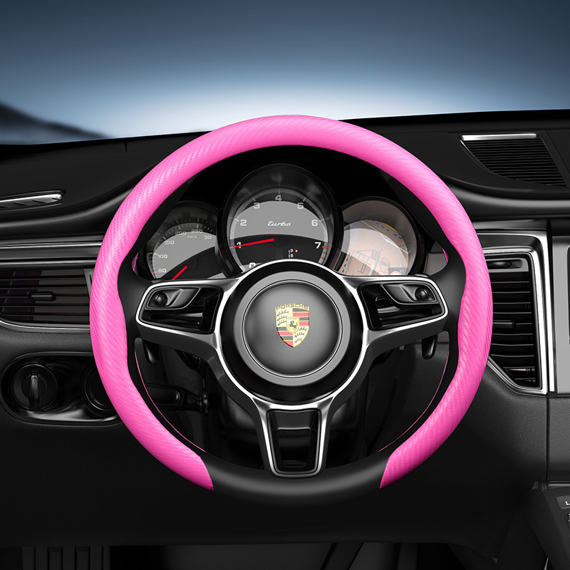 자동차용 탄소섬유 복숭아나무 무늬 스티어링 휠 커버 남녀공용 사계절 사용 가능 땀 흡수 및 내마모성 클립형 해외판매
