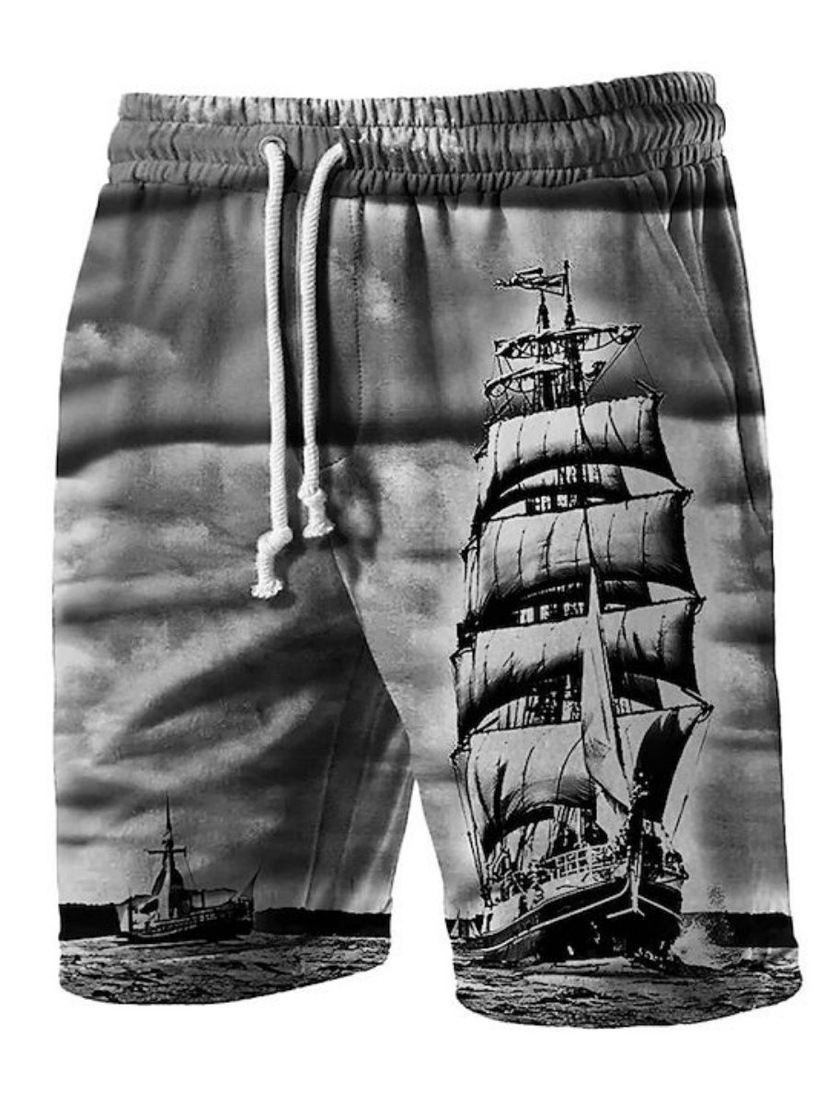 2024 크로스 보더 여름 남성 해변 캐주얼 반바지 3D 디지털 인쇄 느슨한 스트레이트 비치 바지 통기성