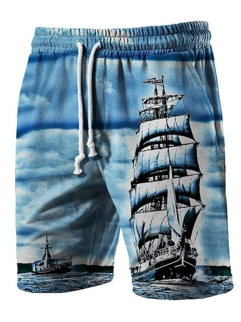 2024 크로스 보더 여름 남성 해변 캐주얼 반바지 3D 디지털 인쇄 느슨한 스트레이트 비치 바지 통기성스토어 가기