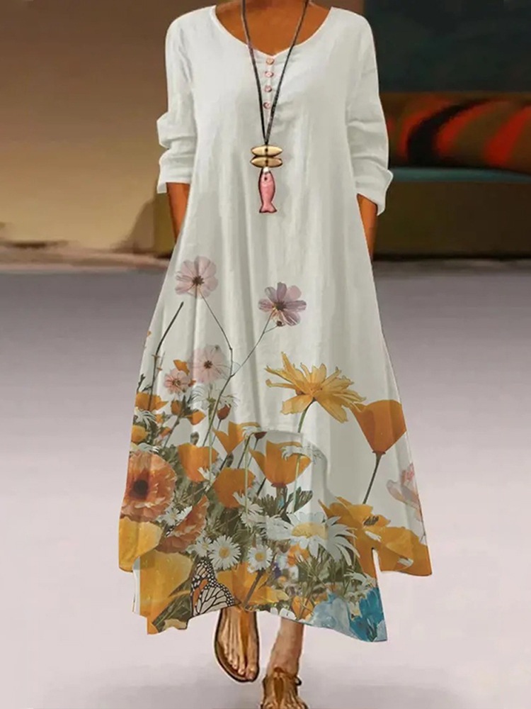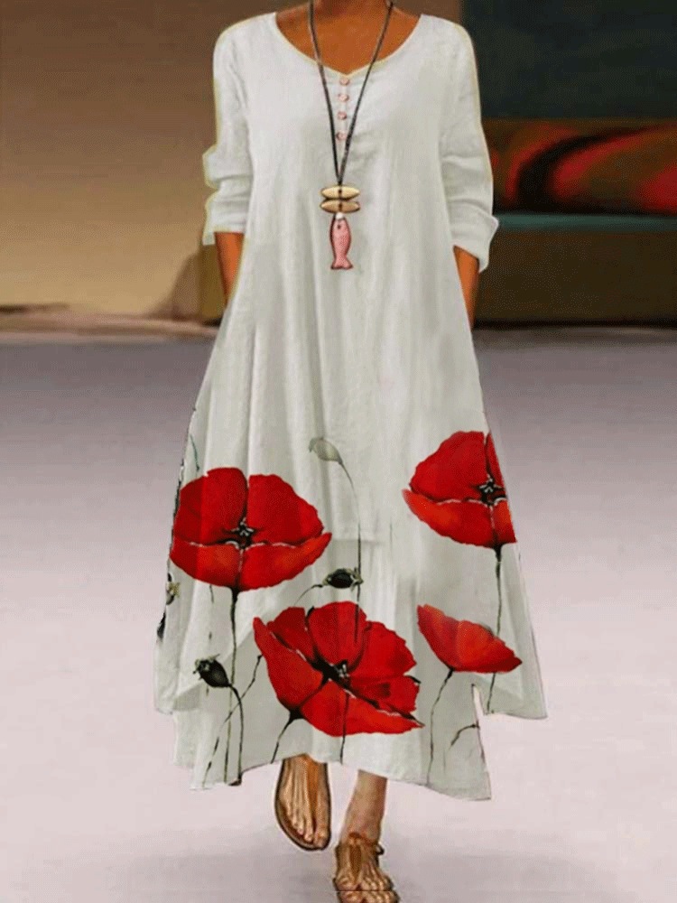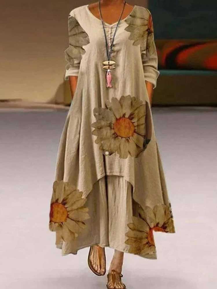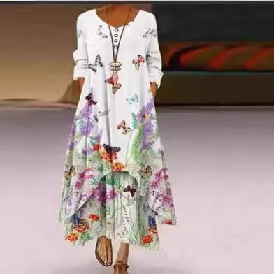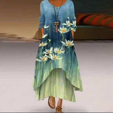 신제품 인쇄 밑단 Amazon 독립 스탠드 롱 스커트 여성용 불규칙 긴팔 인기 소원