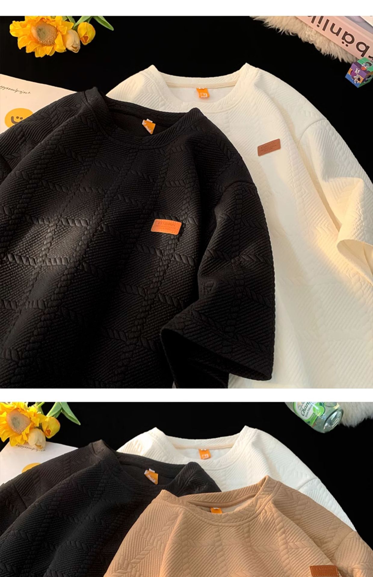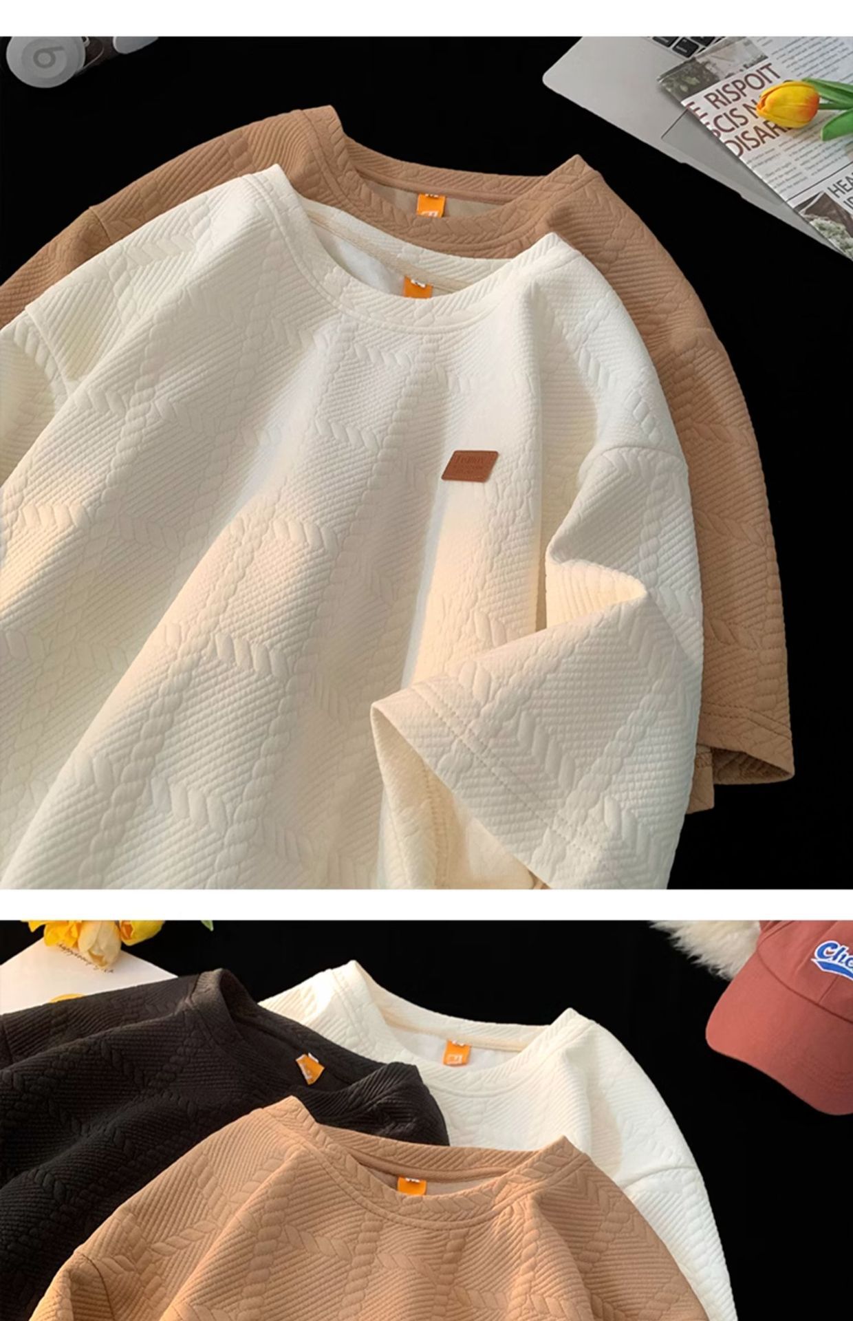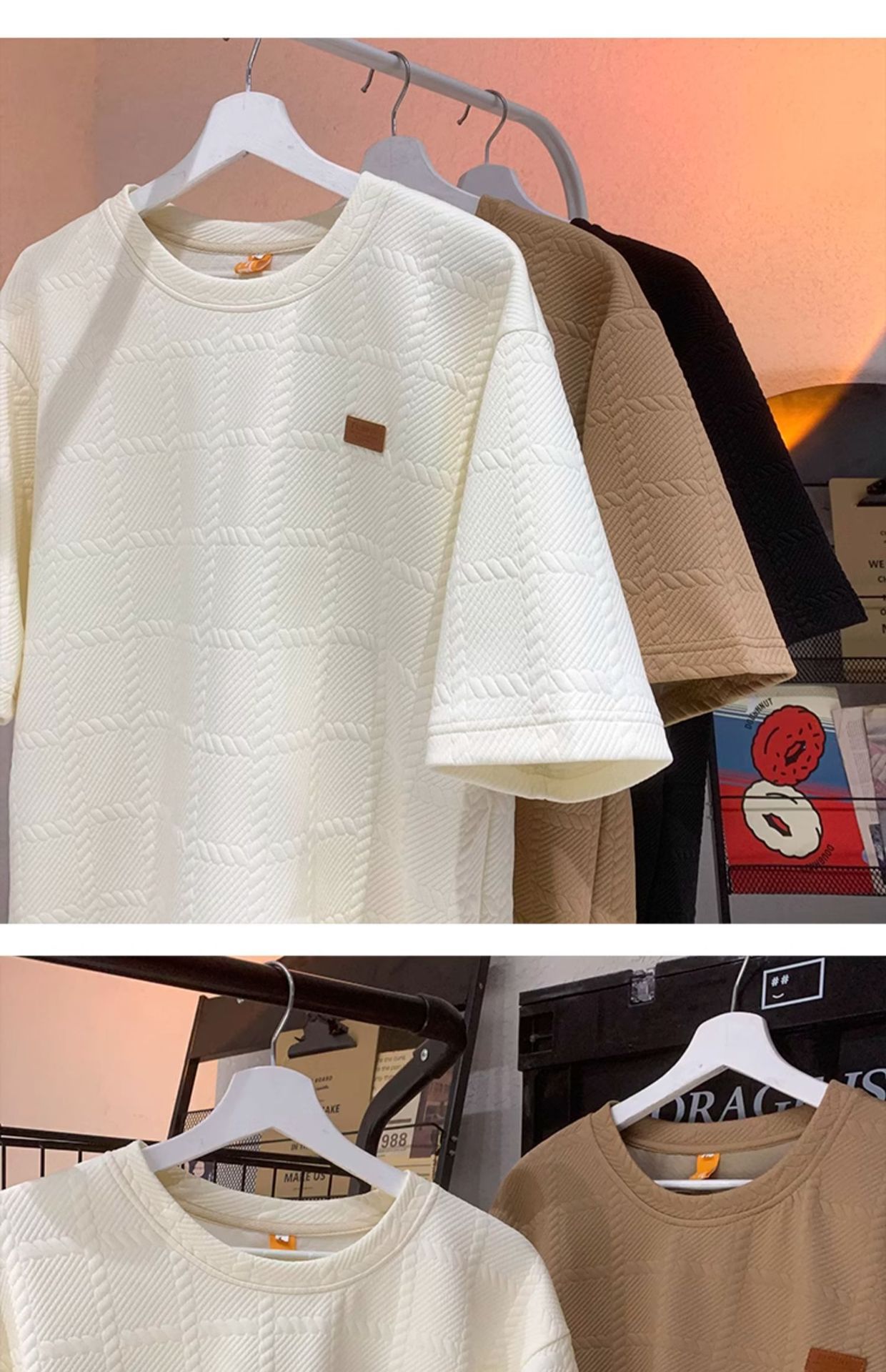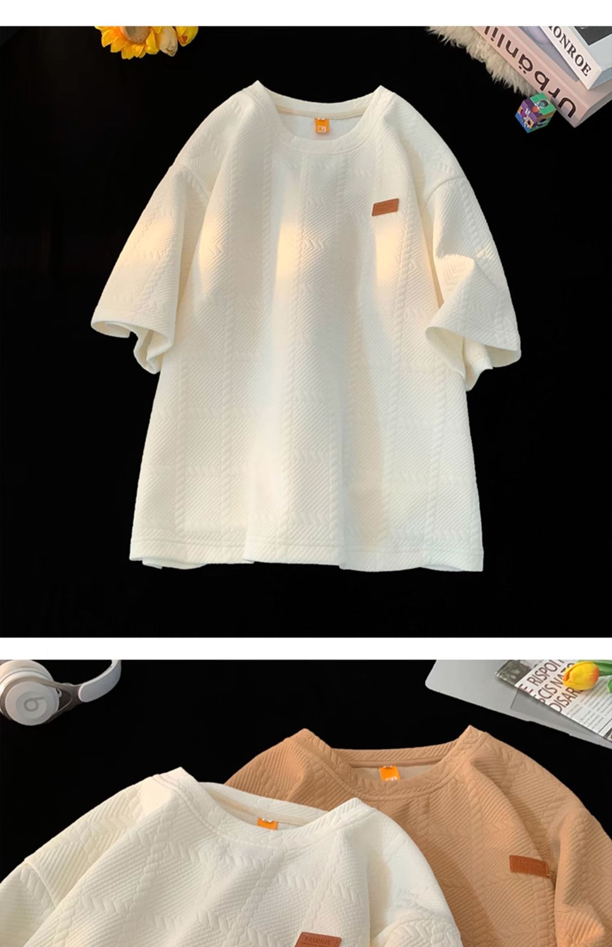 트렌디 브랜드 디자인 자카드 헤비 반팔 티셔츠 남성 트렌디 루즈 탑 여름 2025 새로운 스타일 5부 소매스토어 가기