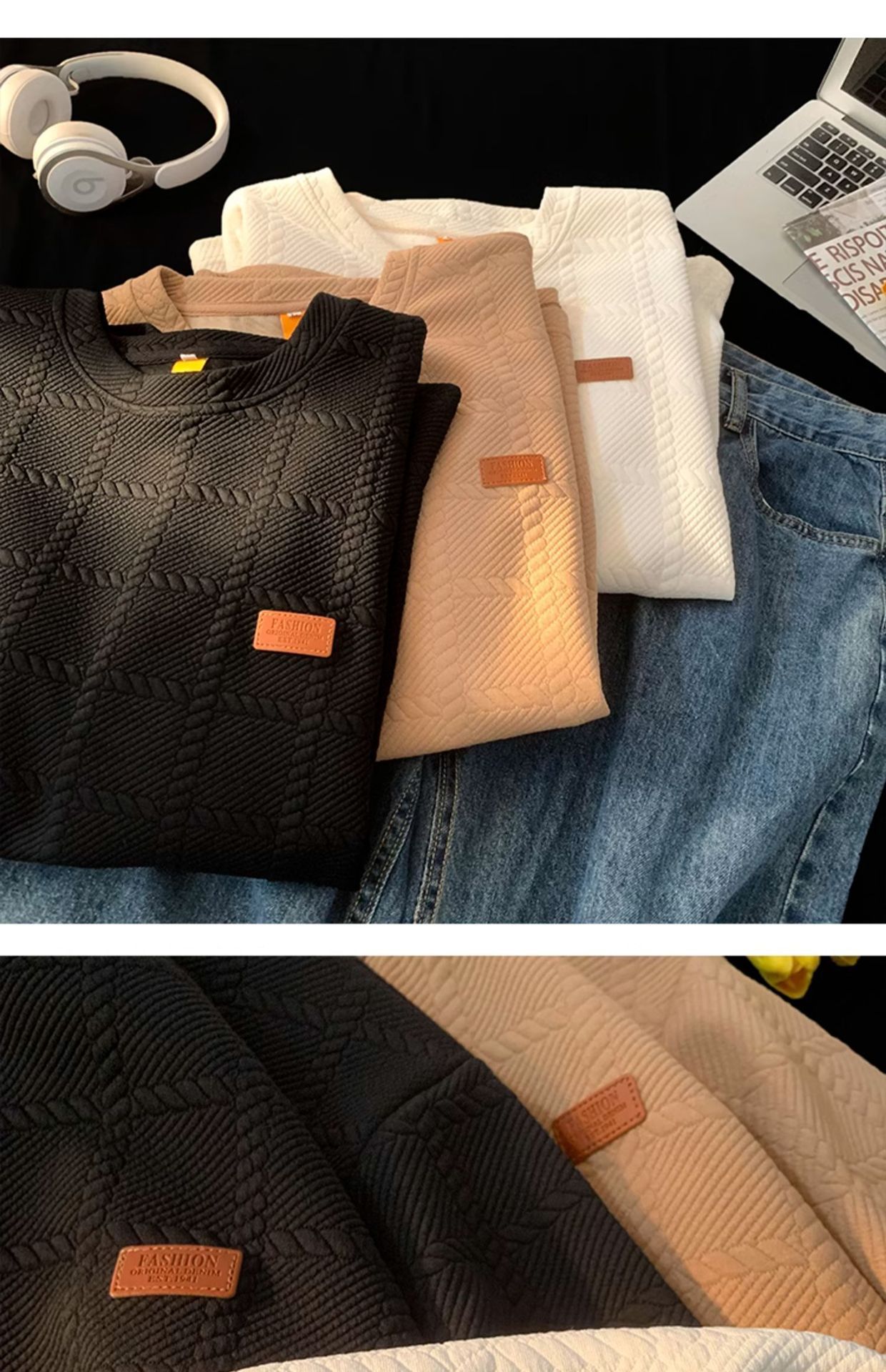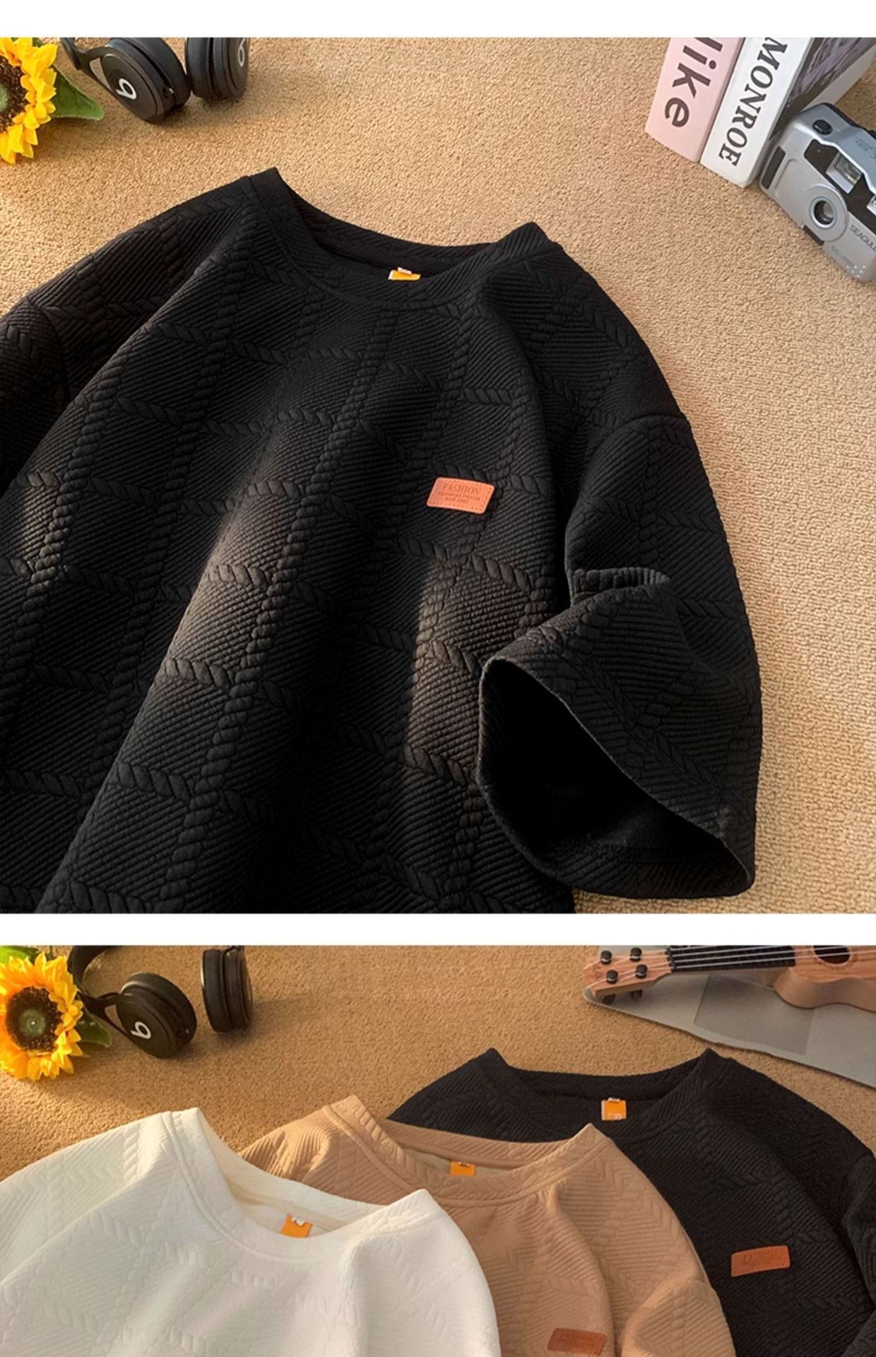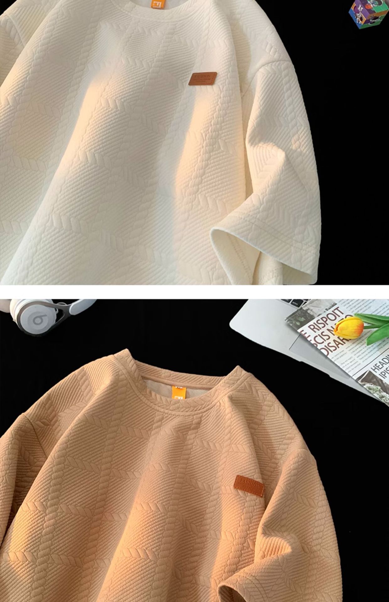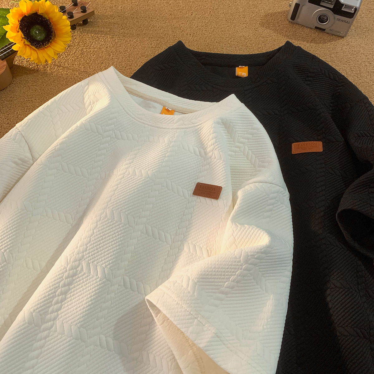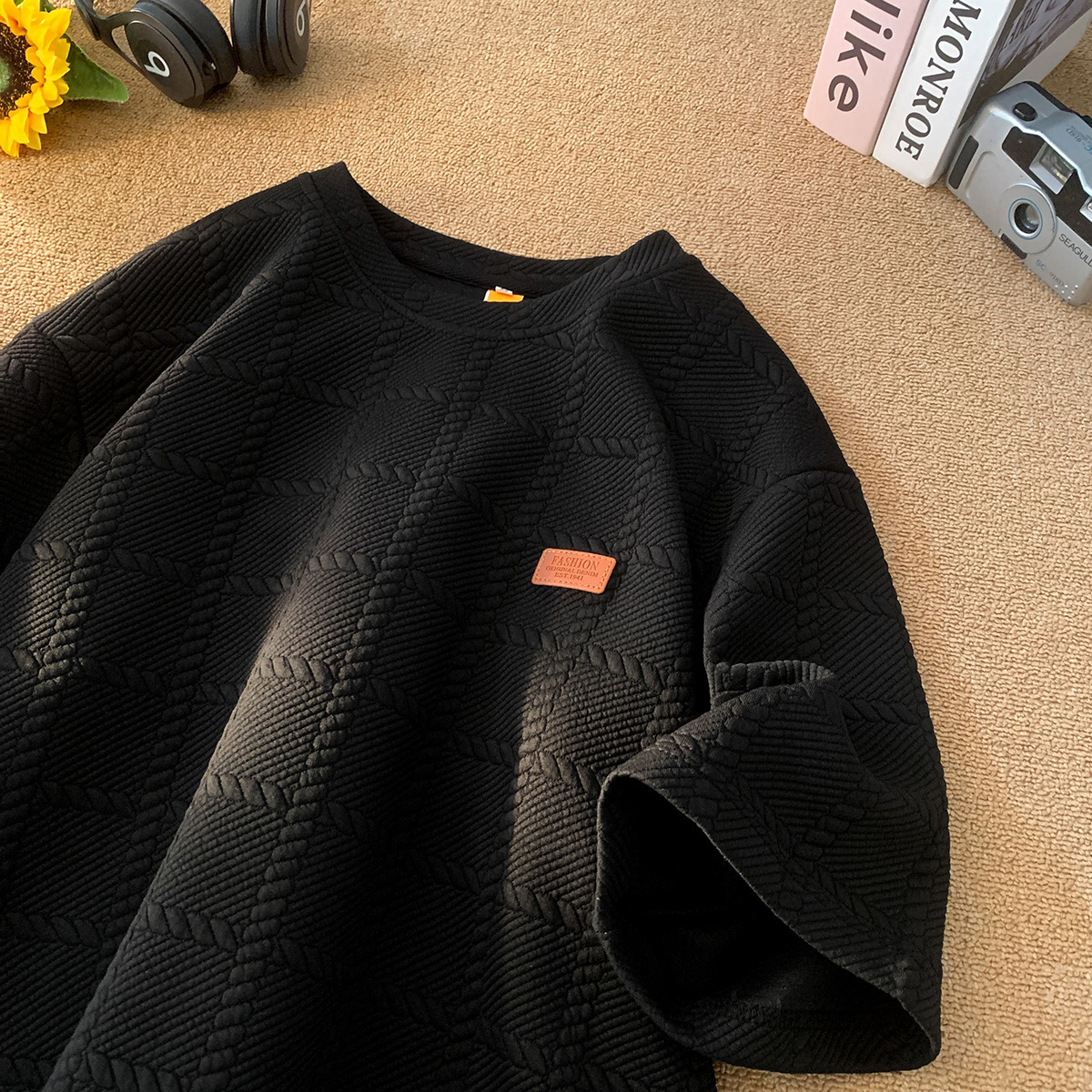 트렌디 브랜드 디자인 자카드 헤비 반팔 티셔츠 남성 트렌디 루즈 탑 여름 2025 새로운 스타일 5부 소매스토어 가기