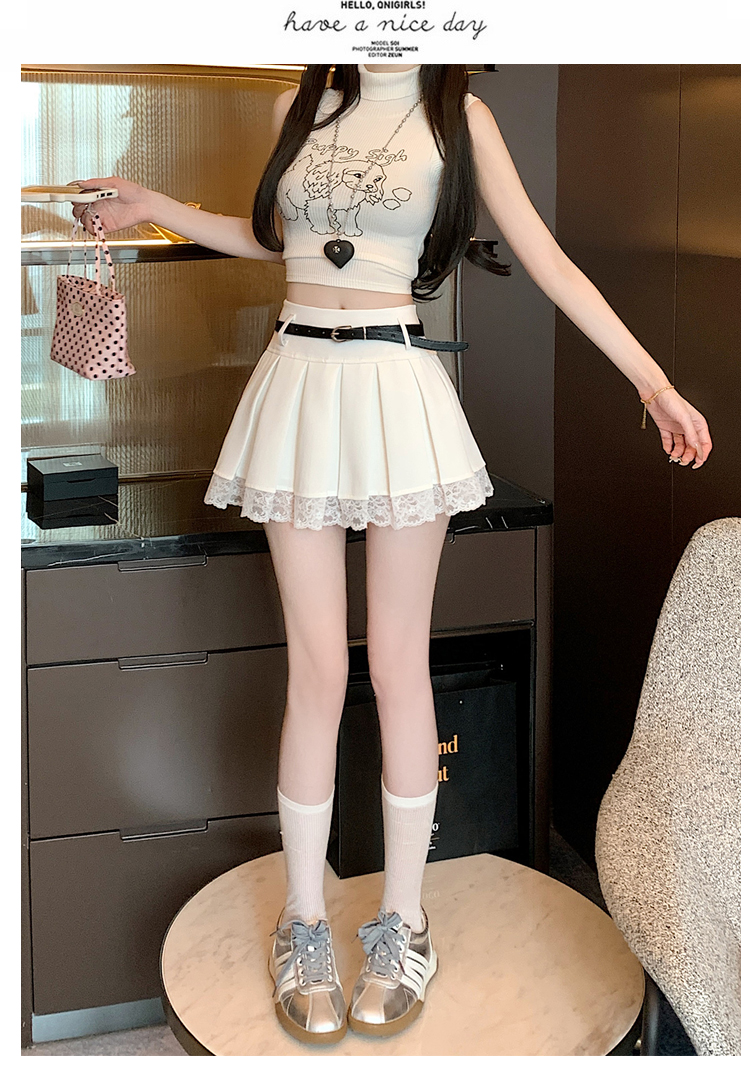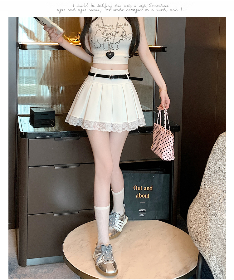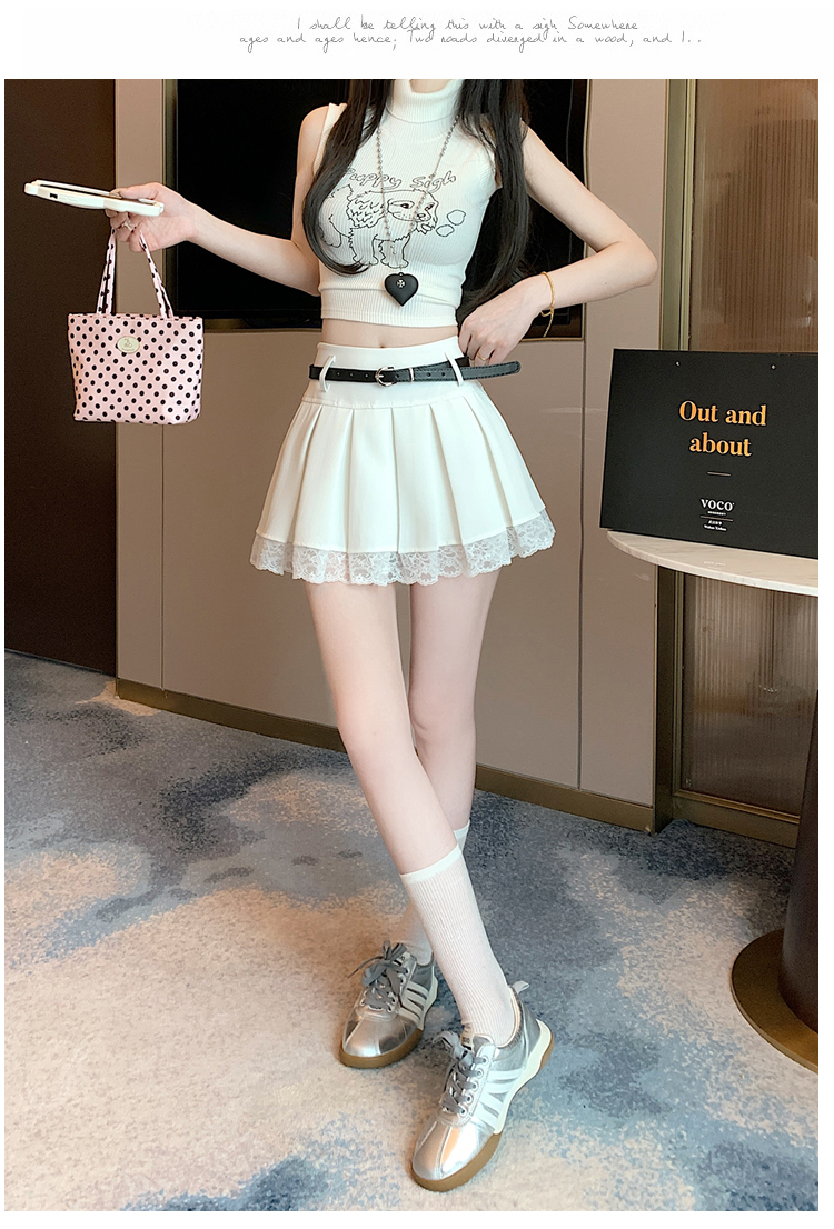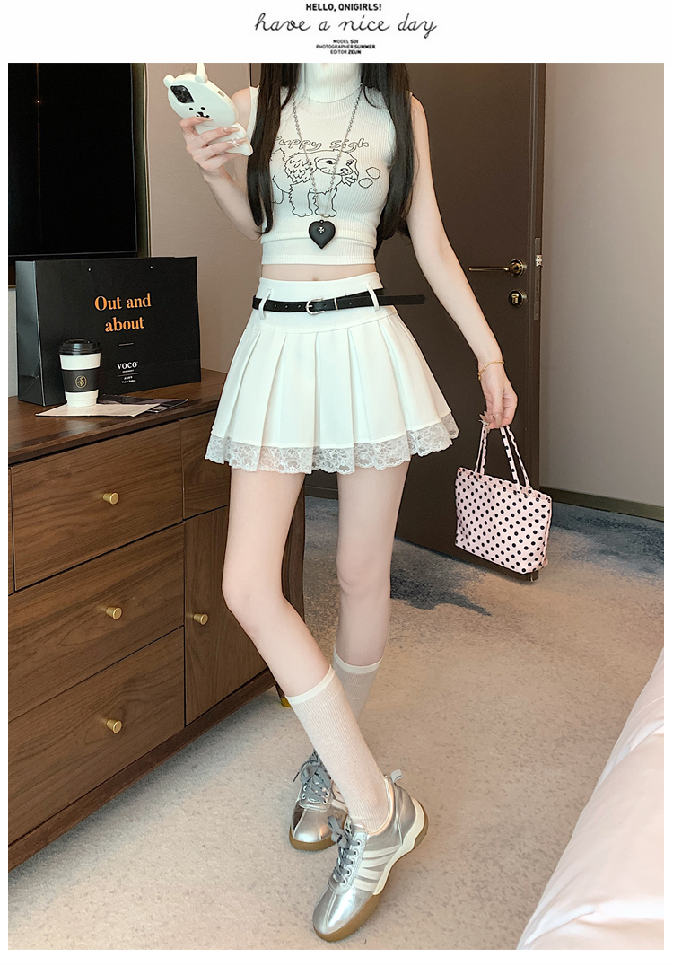 화이트 플리츠 스커트 여성 여름 레이스 하프 스커트 하이 웨이스트 여성 그룹 jk 스커트 a 라인 스커트 우산 스커트 짧은 스커트스토어 가기