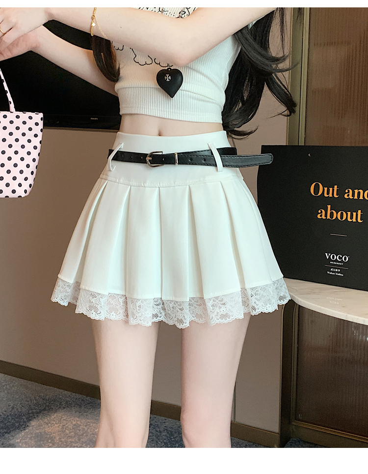 화이트 플리츠 스커트 여성 여름 레이스 하프 스커트 하이 웨이스트 여성 그룹 jk 스커트 a 라인 스커트 우산 스커트 짧은 스커트