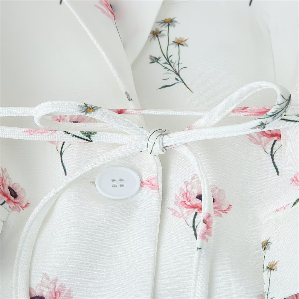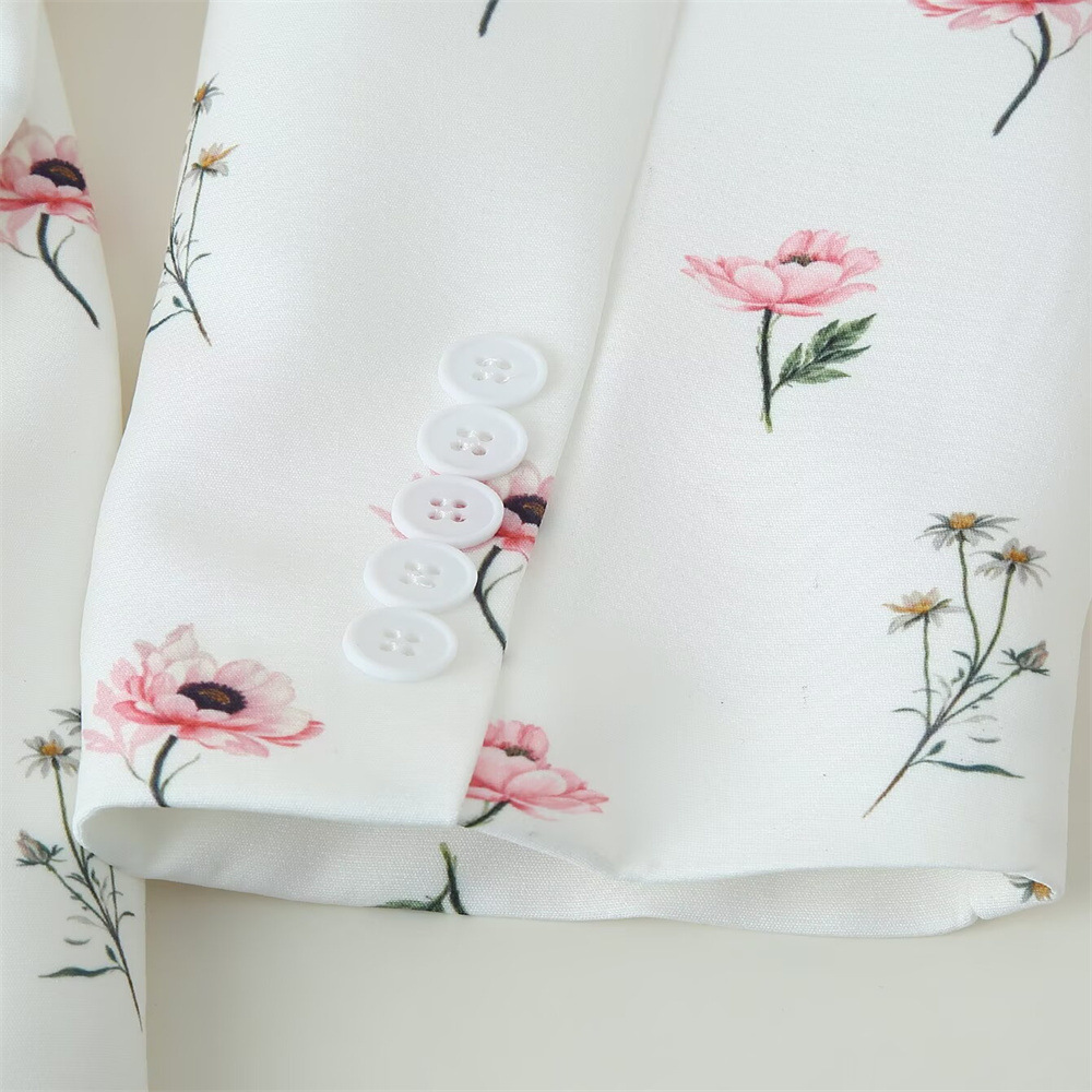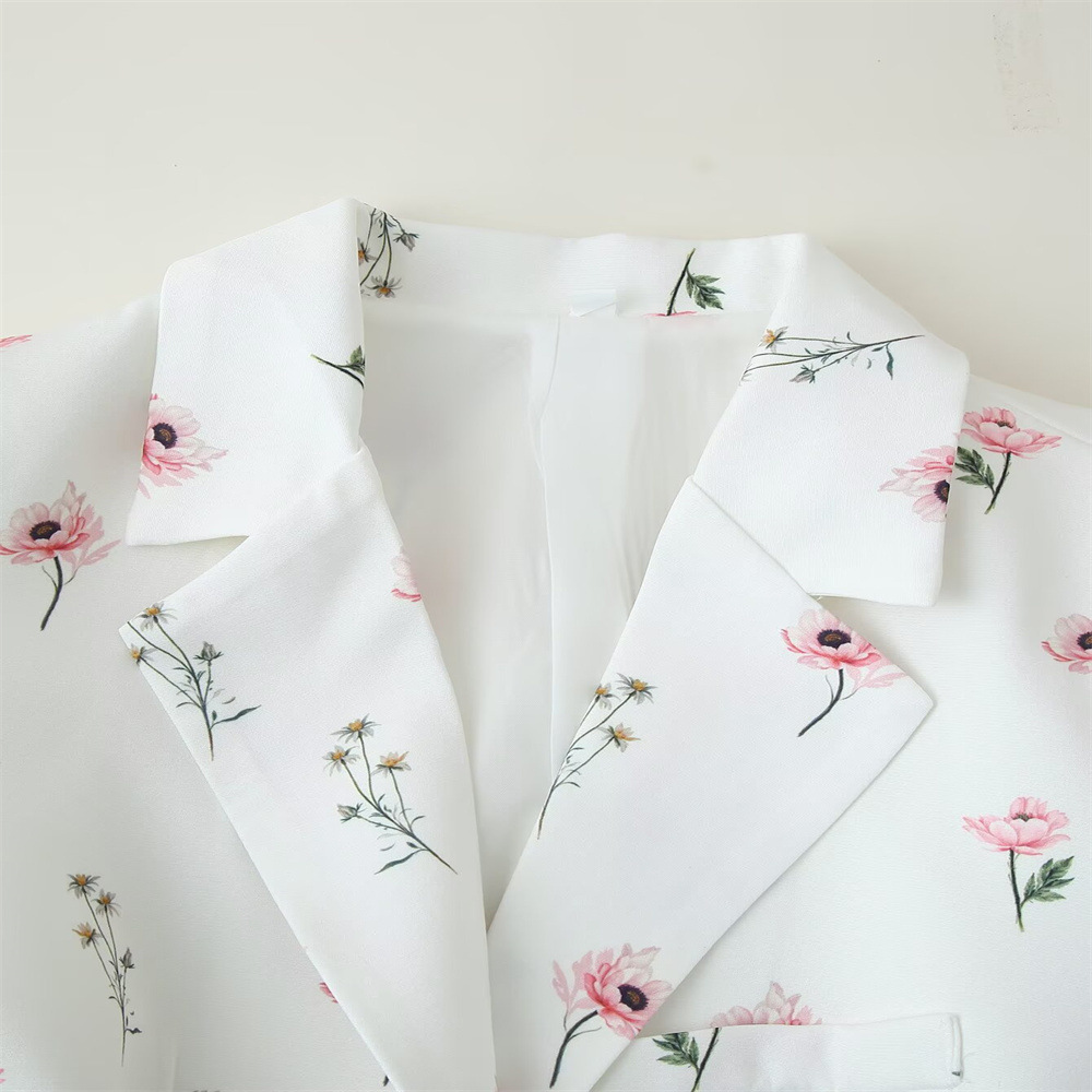 유럽과 미국의 국경 간 2025 봄, 가을 여성 패션 달콤한 꽃 무늬 정장 칼라 레이스 업 긴팔 정장 재킷스토어 가기