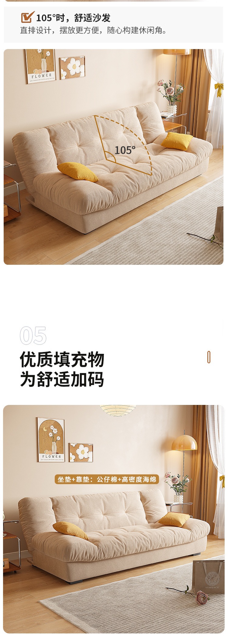 Yunduo 이중 목적 접이식 소파 다기능 소파 침대 거실 작은 아파트 현대 간단한 크림 스타일 인터넷 연예인 모델스토어 가기