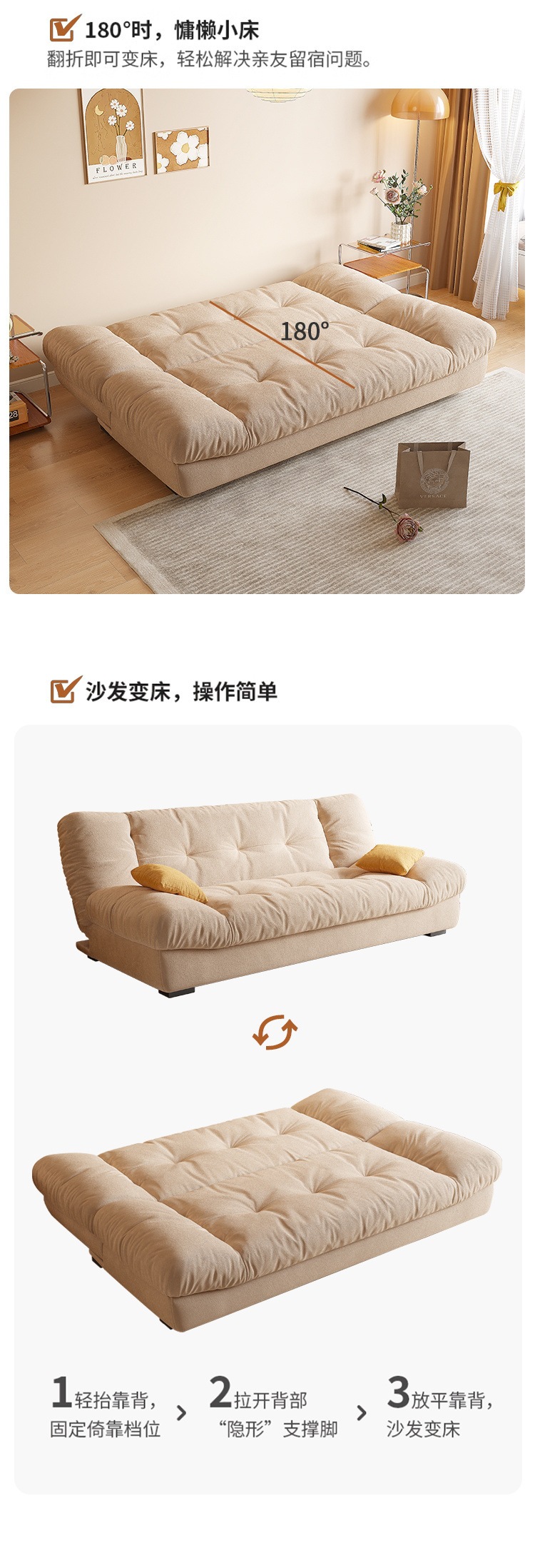 Yunduo 이중 목적 접이식 소파 다기능 소파 침대 거실 작은 아파트 현대 간단한 크림 스타일 인터넷 연예인 모델