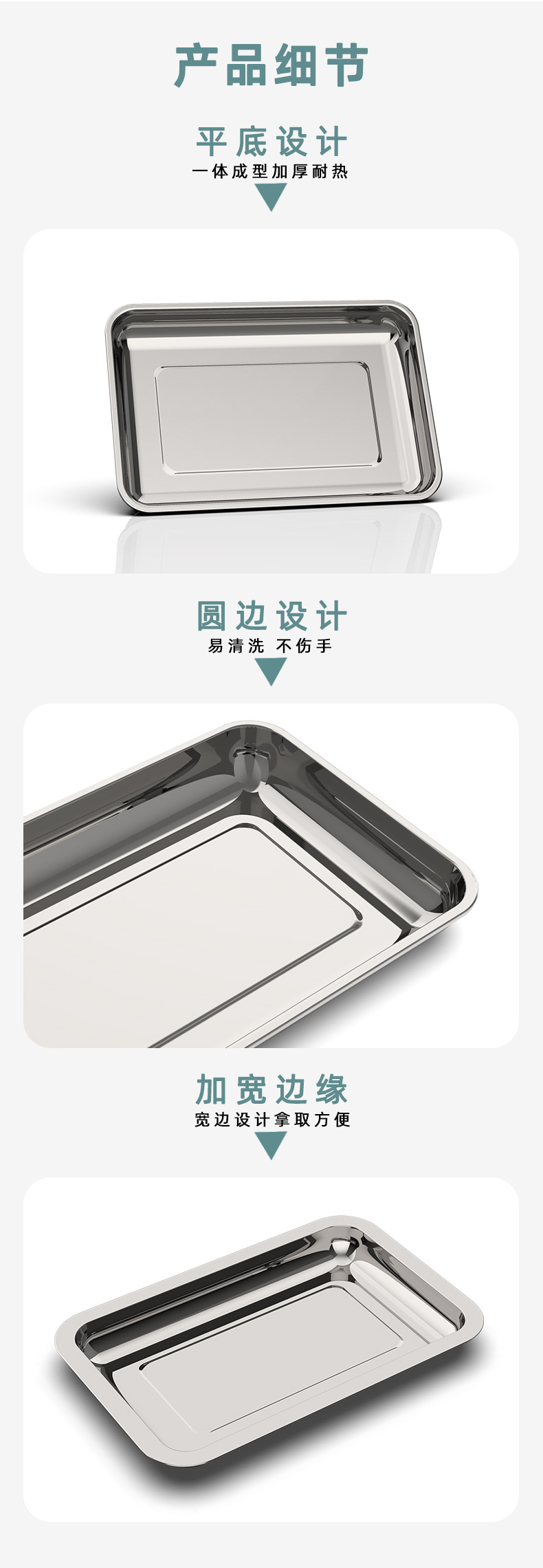 두꺼운 304 스테인레스 스틸 비자성 트레이 소독 트레이 직사각형 트레이 기구 트레이 소독제 용기 사각형 트레이