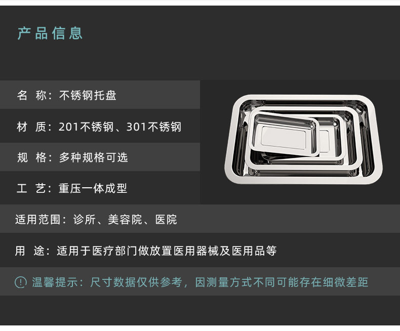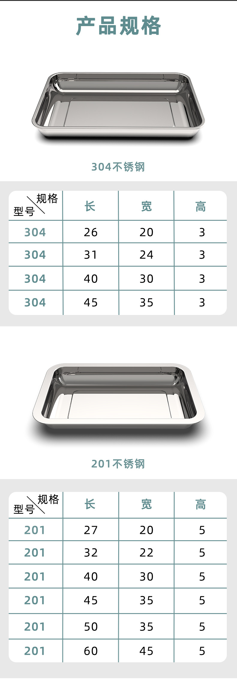 두꺼운 304 스테인레스 스틸 비자성 트레이 소독 트레이 직사각형 트레이 기구 트레이 소독제 용기 사각형 트레이스토어 가기