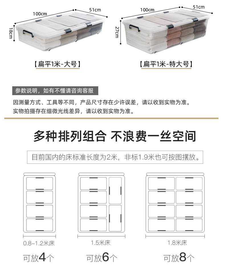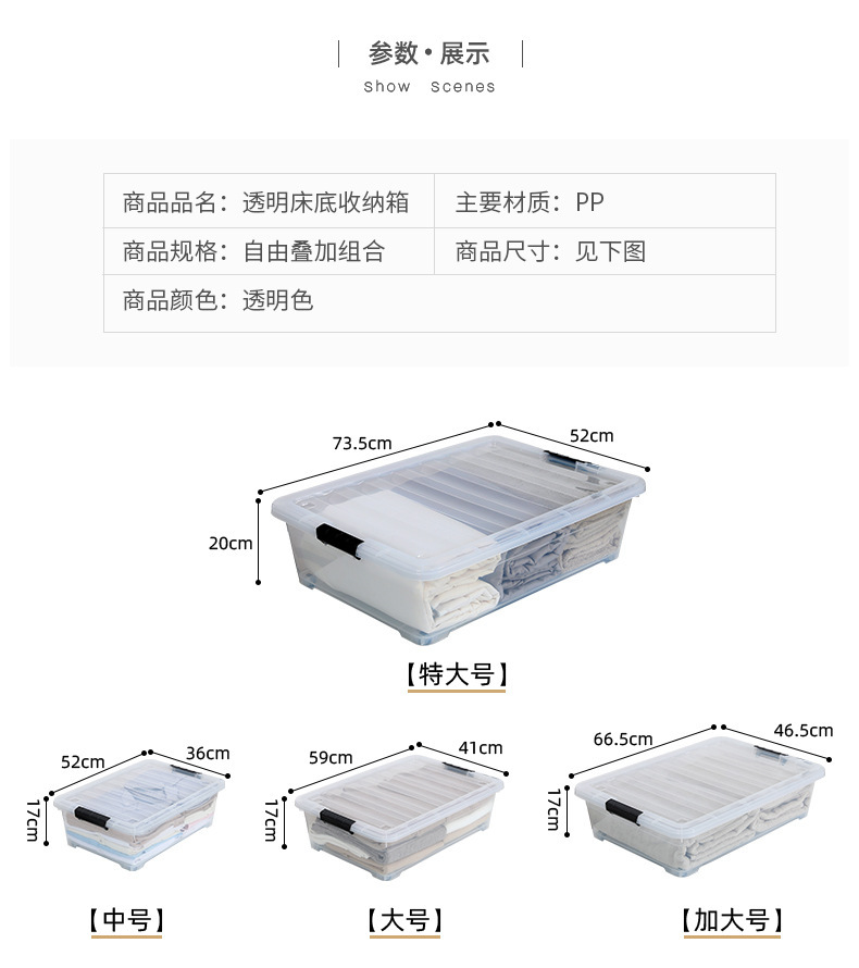 완전히 투명한 커버형 책장, 침대 하단 서랍형 수납함, 옷 정리함, 두꺼운 평면 투명 수납함스토어 가기