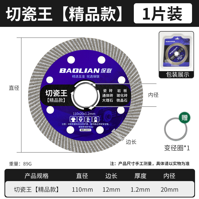 Bao Lian 타일 절단 블레이드, 빠르고 깨지지 않는 유리화 타일 대리석 다이아몬드 세라믹 앵글 그라인더 특수 톱날