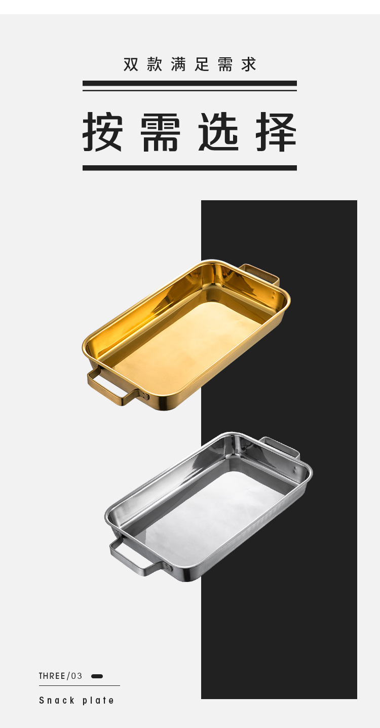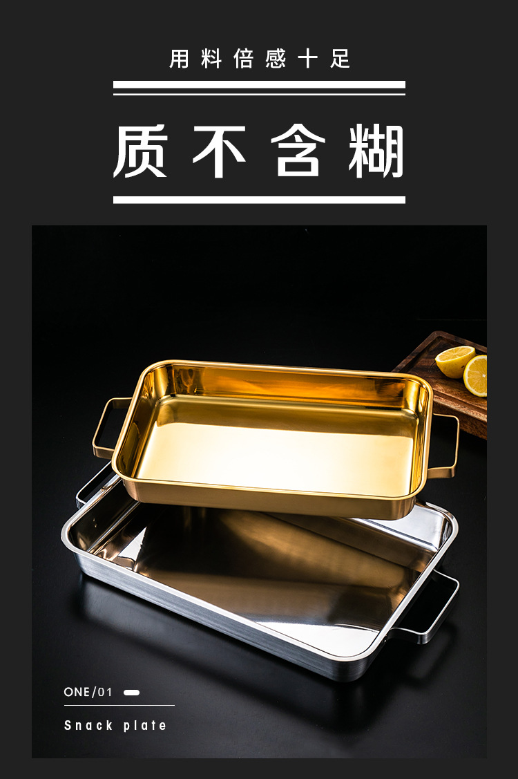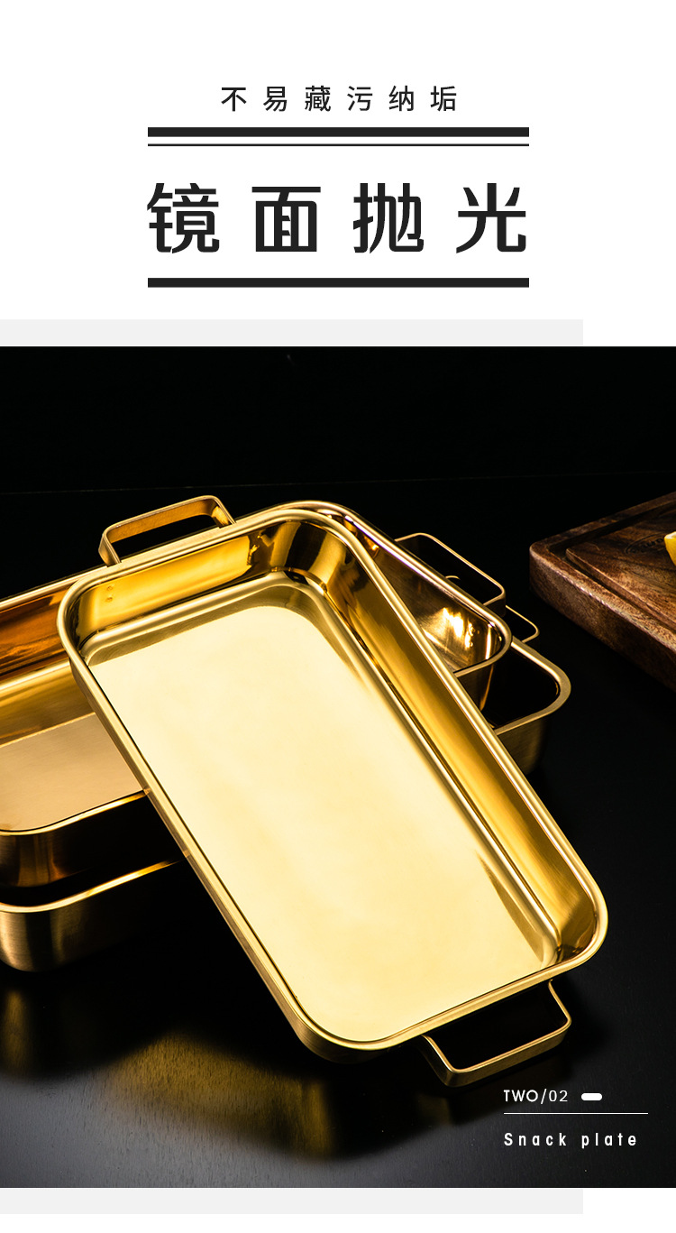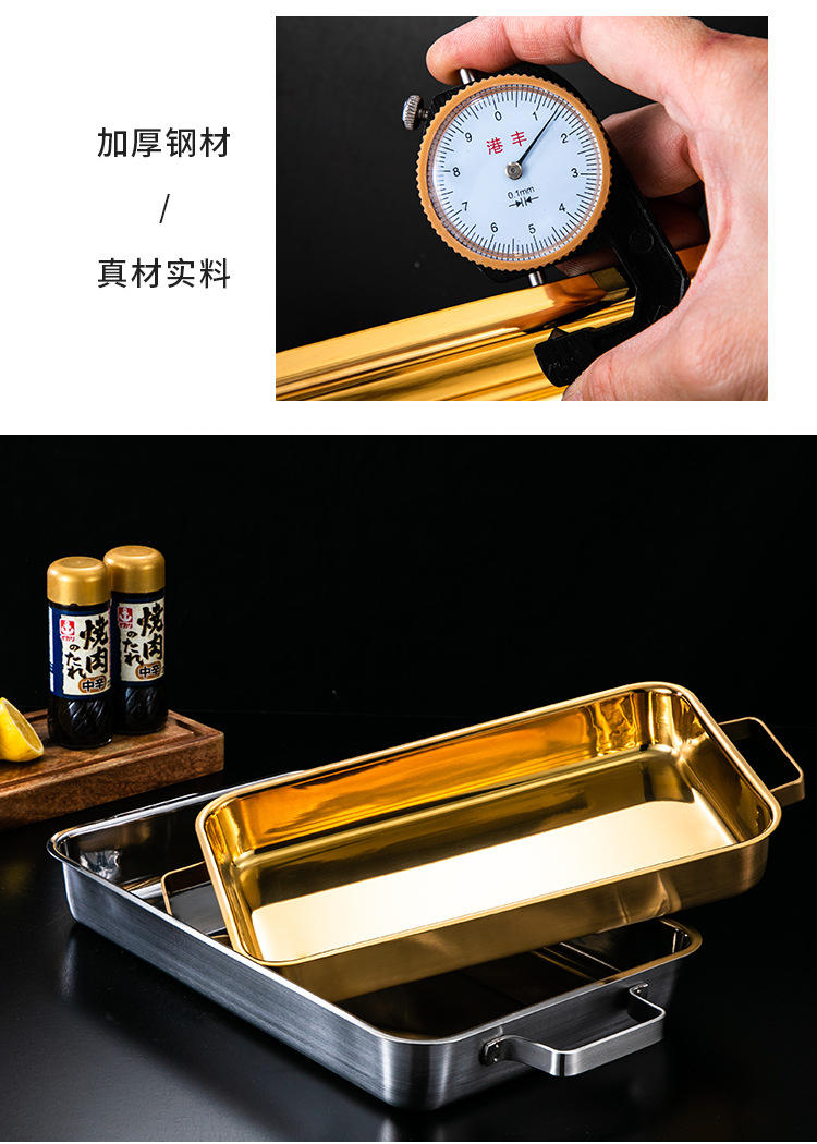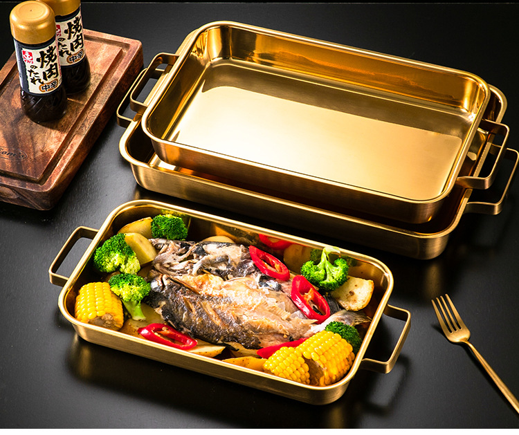 한국 스테인레스 스틸 생선 구이 접시 직사각형 양이 베이킹 팬 트레이 인덕션 오븐용 골드 플랫 플레이트