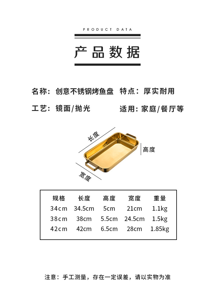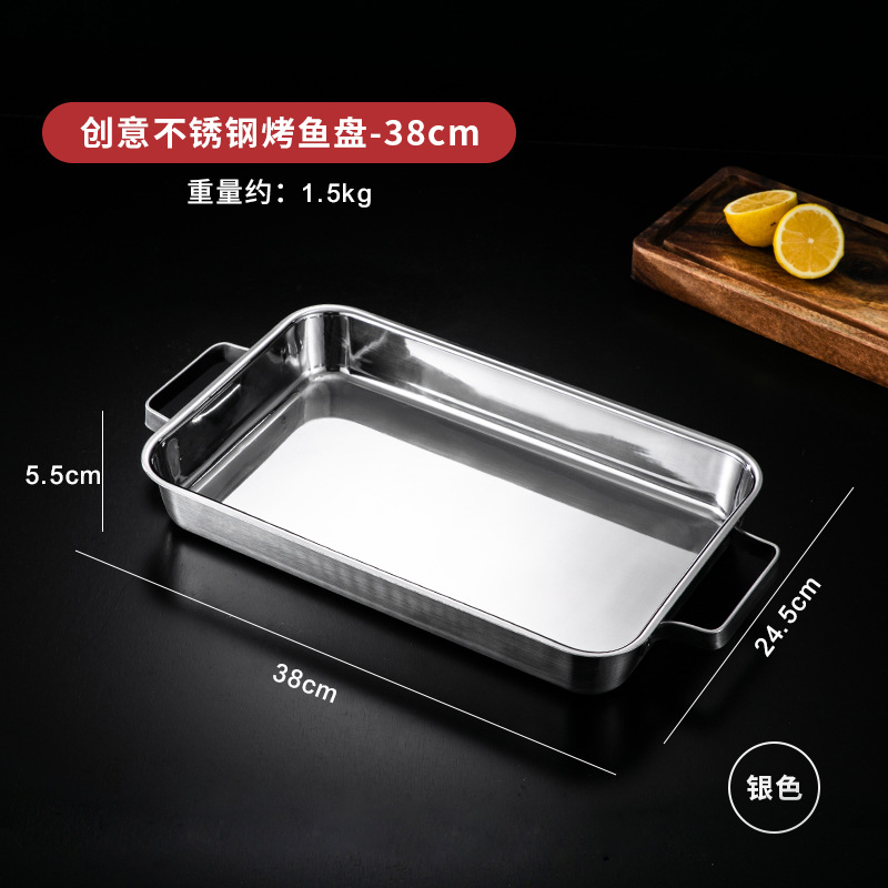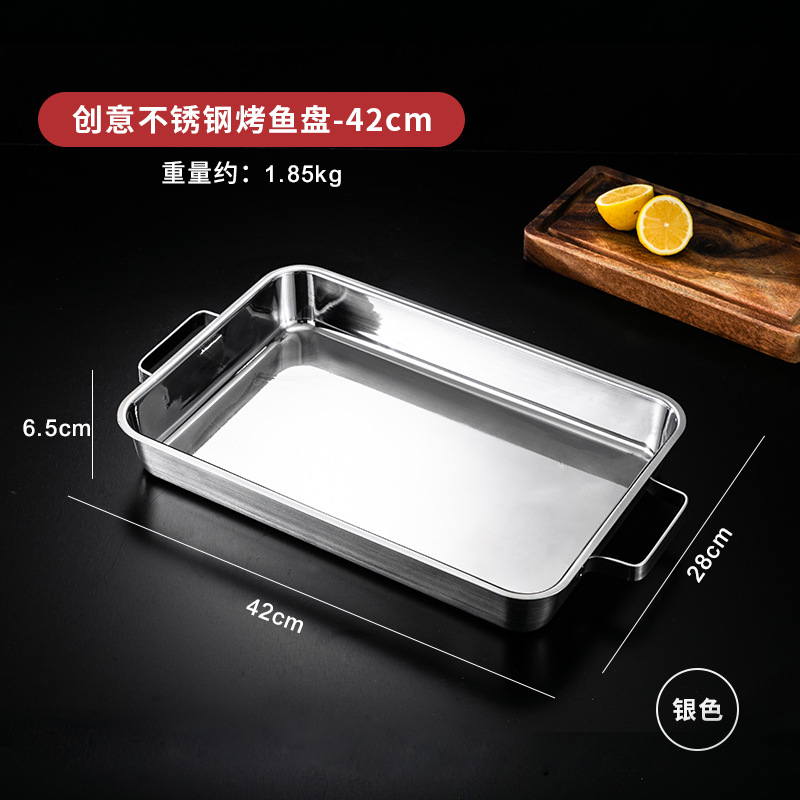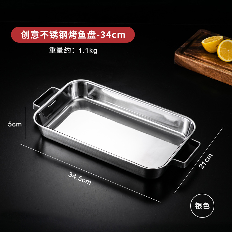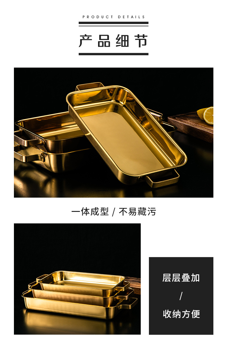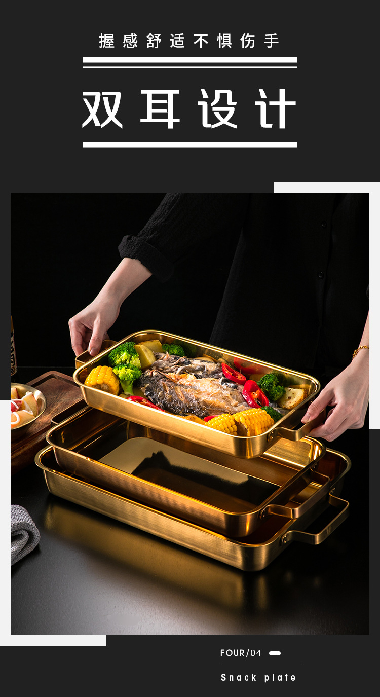 한국 스테인레스 스틸 생선 구이 접시 직사각형 양이 베이킹 팬 트레이 인덕션 오븐용 골드 플랫 플레이트스토어 가기