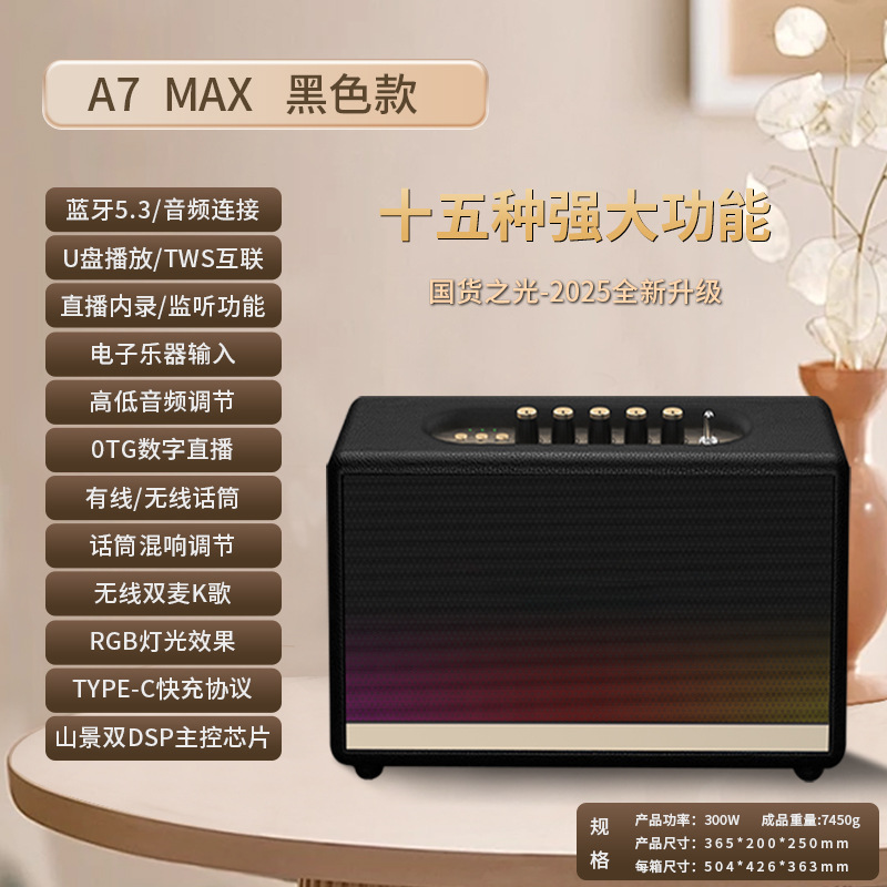 • A7 MAX 블랙 모델 [마셰르 파노라마 서라운드 음향 효과]★300W 고출력★24000mAh의 긴 배터리 수명]
