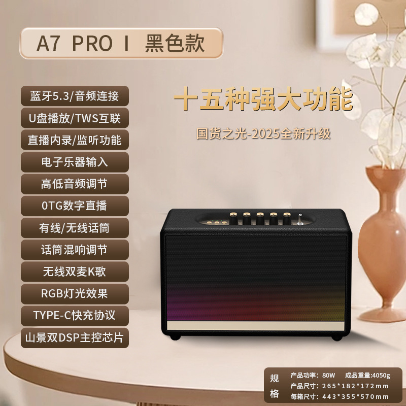 • A7 PRO I 블랙 모델 [마셰르 파노라마 서라운드 음향 효과]★80W 고출력★9000mAh의 긴 배터리 수명]