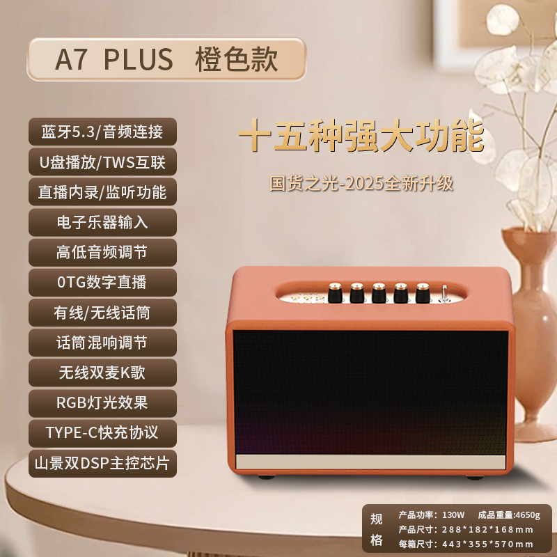 • A7 PLUS 오렌지색 모델 [마셰르 파노라마 서라운드 음향 효과]★130W 고출력★9000mAh의 긴 배터리 수명]