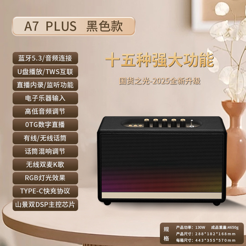 • A7 PLUS 블랙 모델 [마셰르 파노라마 서라운드 음향 효과] ★ 130W 고출력 ★ 9000mAh의 긴 배터리 수명]