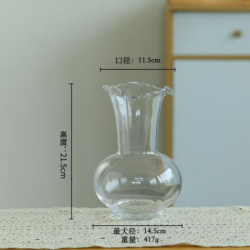 프랑스의 가벼운 고급 유리 꽃병, 고급 창의적인 물에 심은 꽃, 말린 꽃꽂이, 거실 장식스토어 가기