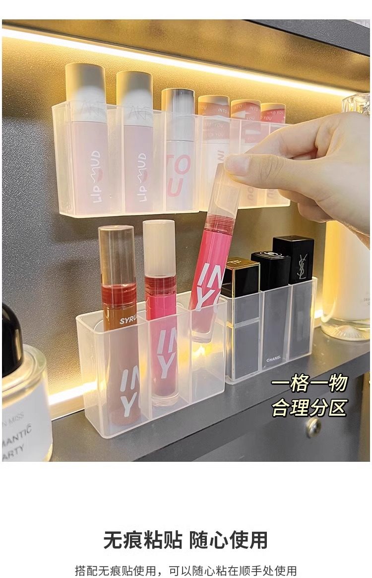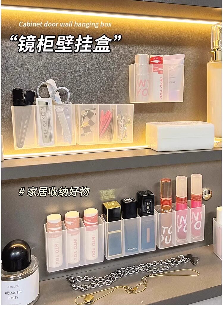 립스틱 벽걸이형 수납함 3칸 펀치프리 거울 캐비닛 수납함 욕실 잡화 화장품 수납함