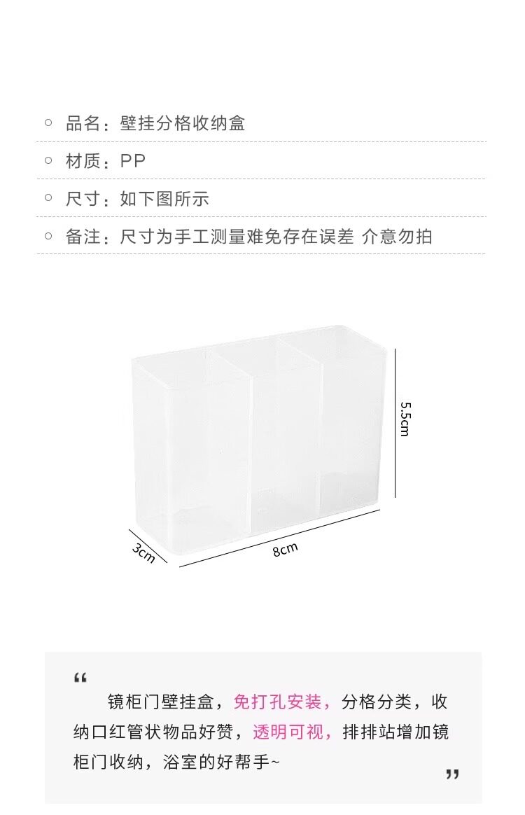 립스틱 벽걸이형 수납함 3칸 펀치프리 거울 캐비닛 수납함 욕실 잡화 화장품 수납함스토어 가기