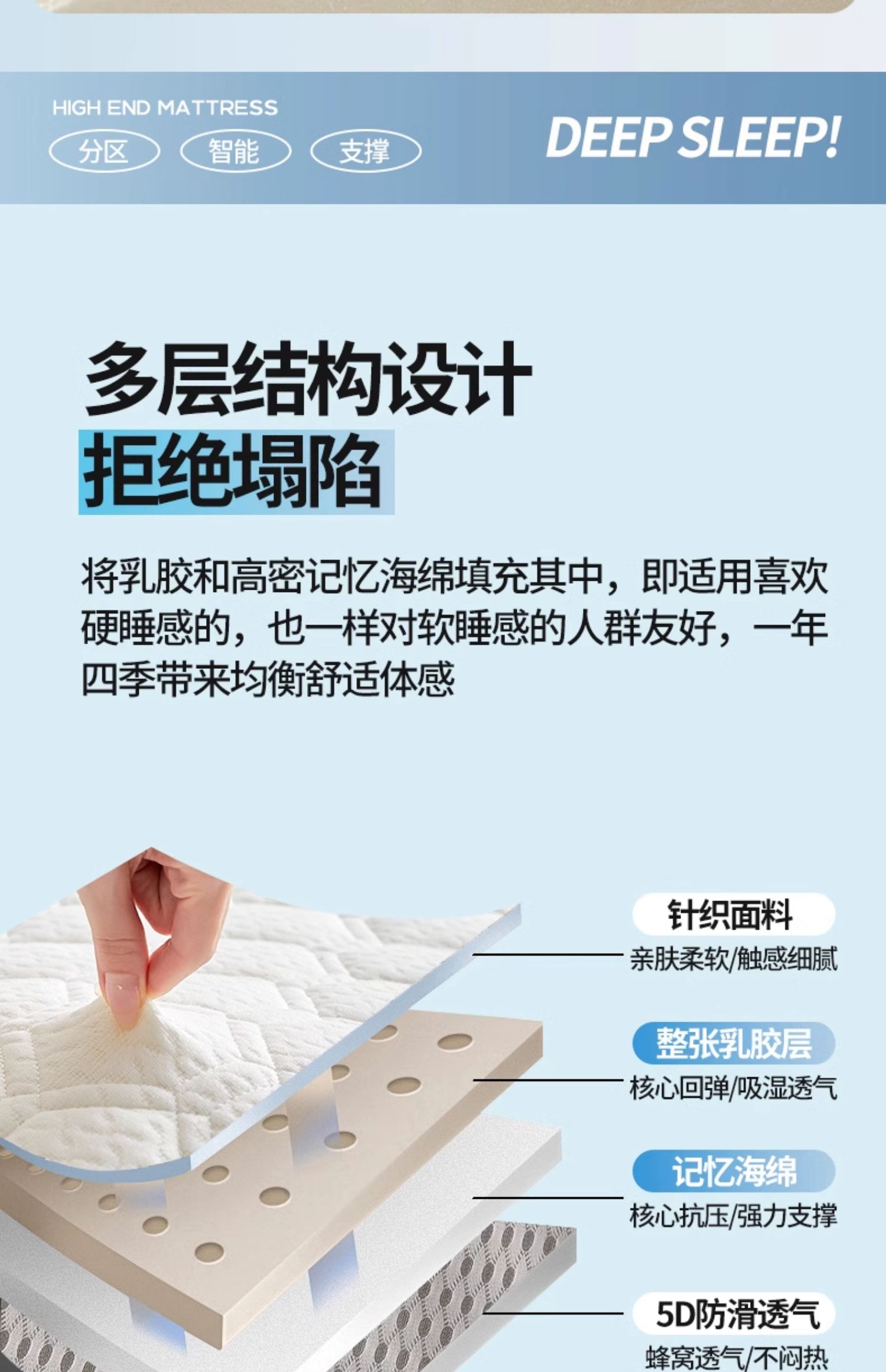 • 고급 밀크 실크 입체 블루(두께 약 6cm) 라텍스 + 메모리폼丨 고탄성 척추 보호대